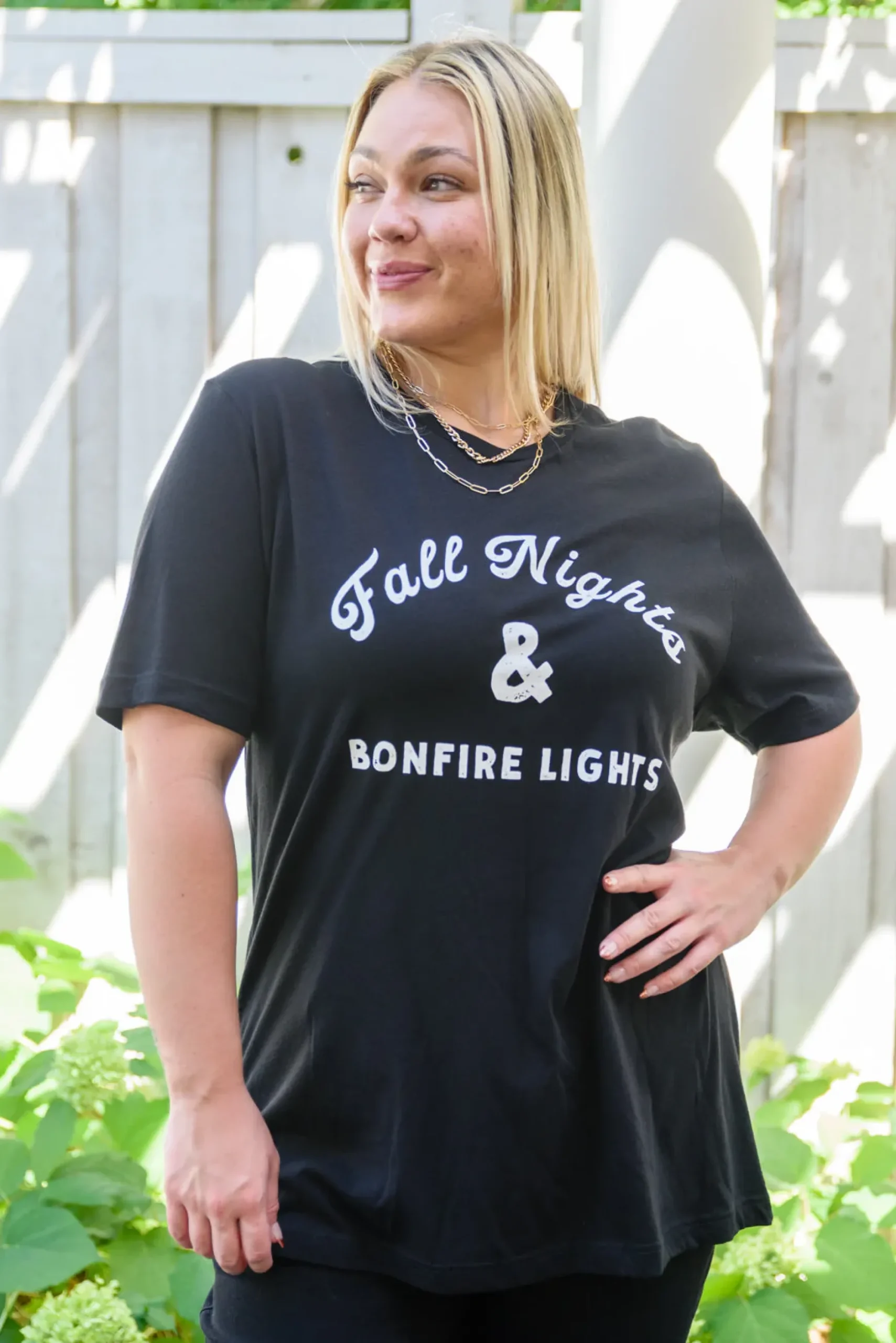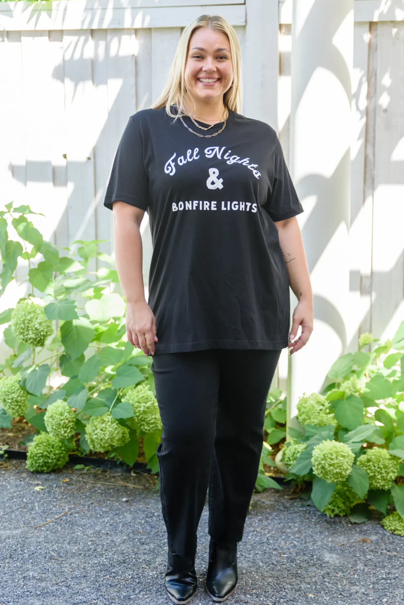 The Fall Nights Graphic T-Shirt is perfect for cozy days spent at the cabin! Whether you’re pairing it with sweatpants and slippers, or a shacket and jeans it’s the perfect Fall staple! Featuring a classic crew neckline, with short sleeves, and a boxy bodice with a graphic that states “Fall nights & bonfire lights”. We know you’ll get lots of use out of this adorable tee!