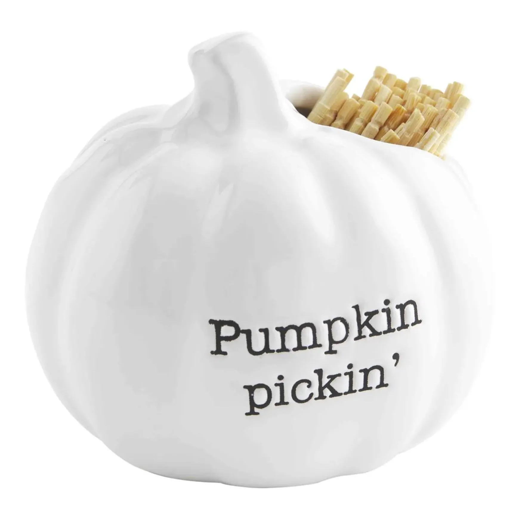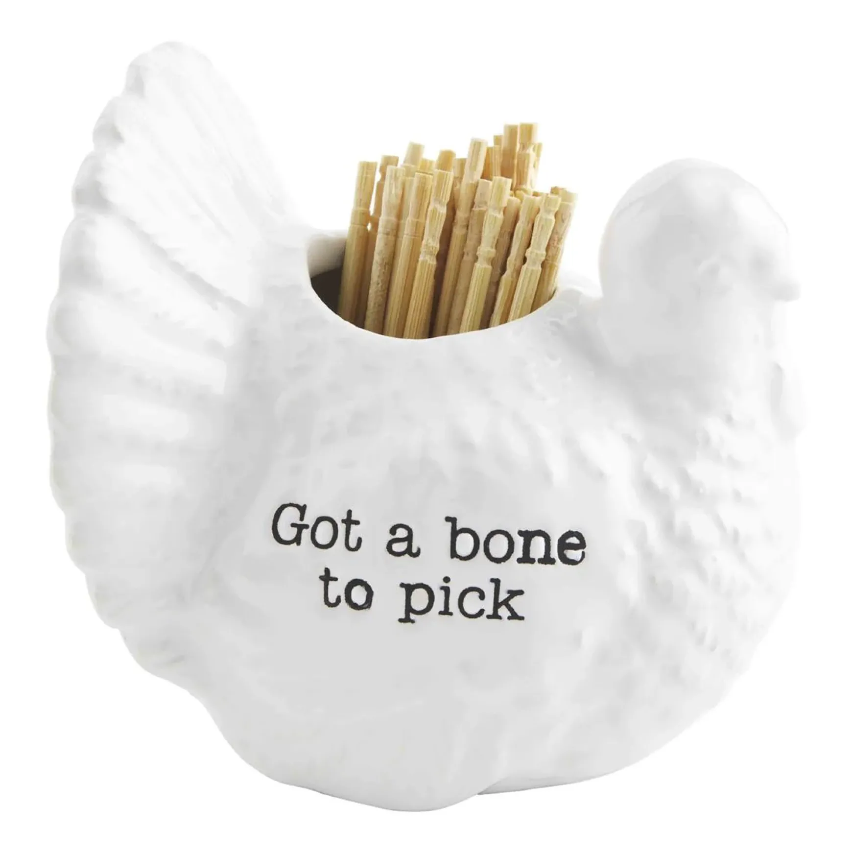 2-piece set. Figural ceramic toothpick caddy comes with pack of toothpicks.