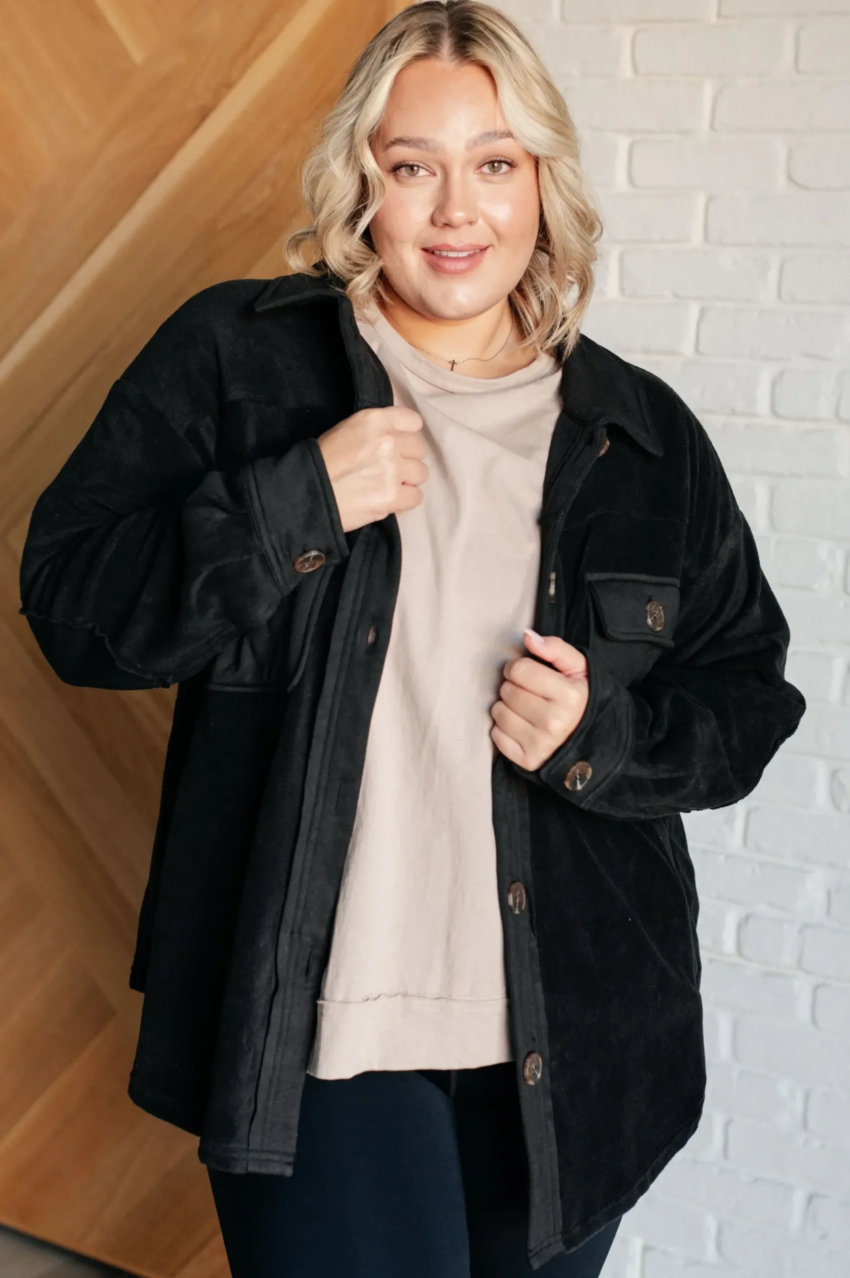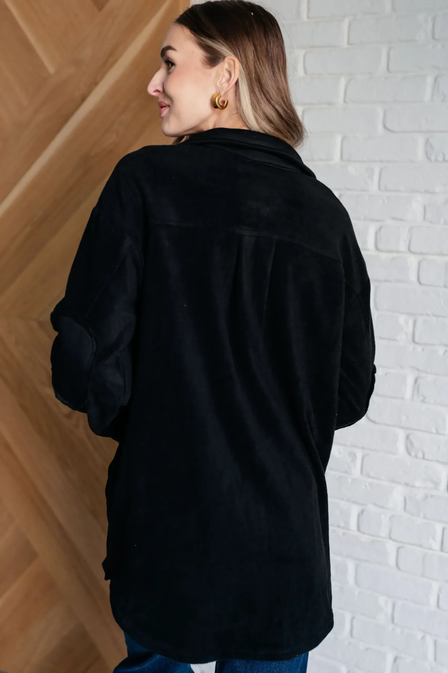 Step up your outerwear game with the Fantastic in Fleece Jacket in Black. Featuring a classic collared neckline, it’s designed with functional button closures for a tailored fit. Contrast panels add a modern twist, while elbow patches lend a touch of rugged charm. Practicality meets style with functional chest patch and side welt pockets, providing ample storage for your essentials. Perfect for layering over any casual outfit, this jacket is a versatile and chic addition to your wardrobe.
