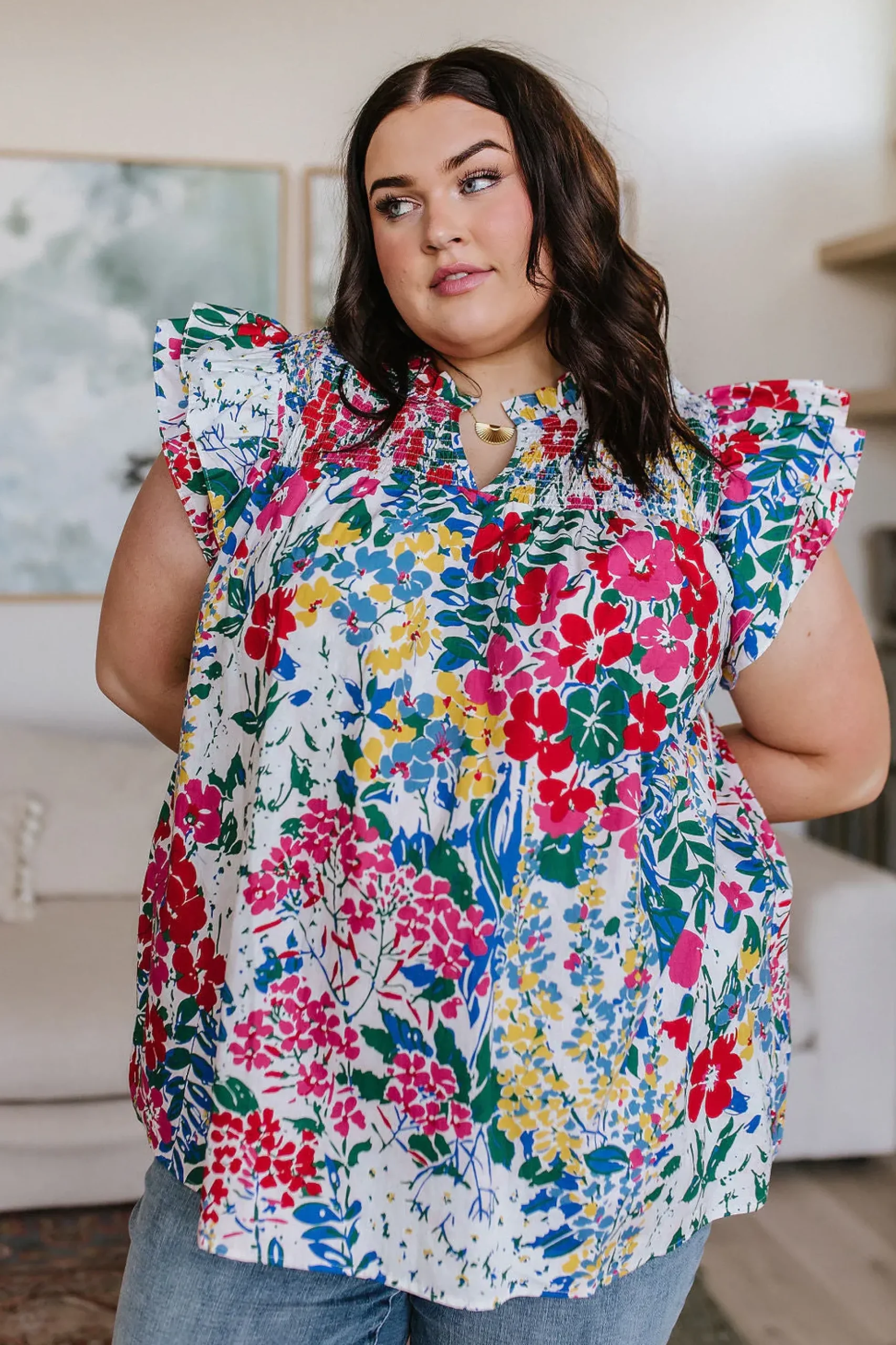 The Floral Impressions Blouse is a must-have wardrobe essential. Its captivating floral design, statement flutter sleeve and ruffle neckline make this a piece that’s sure to turn heads. Crafted from breathable woven cotton, you’ll never have to compromise on comfort or style.