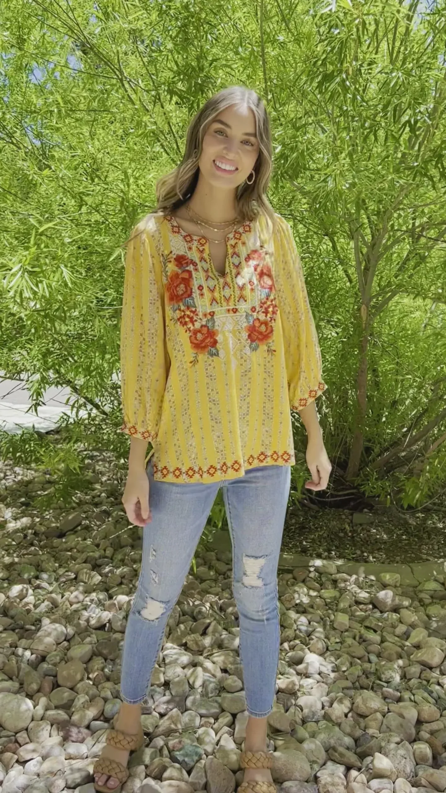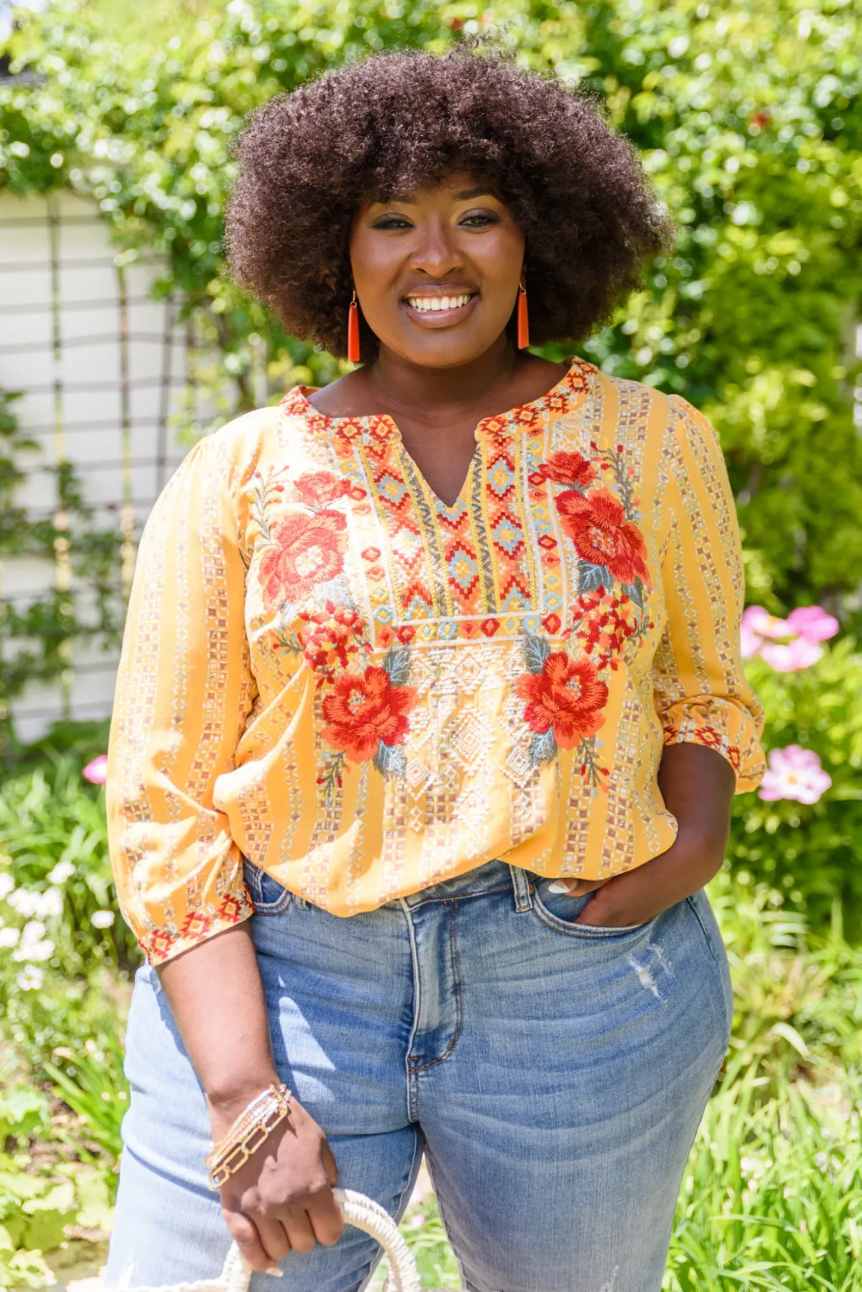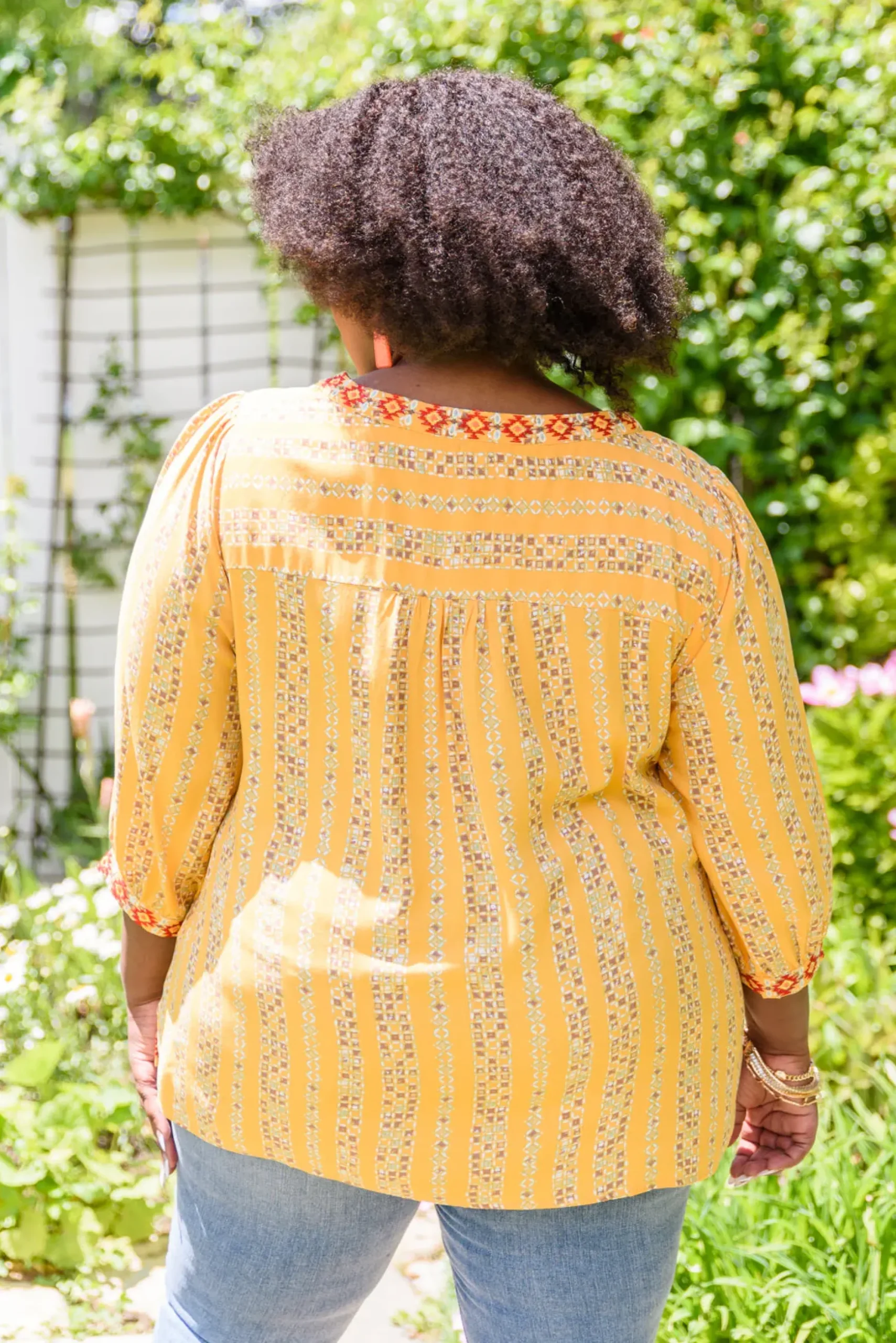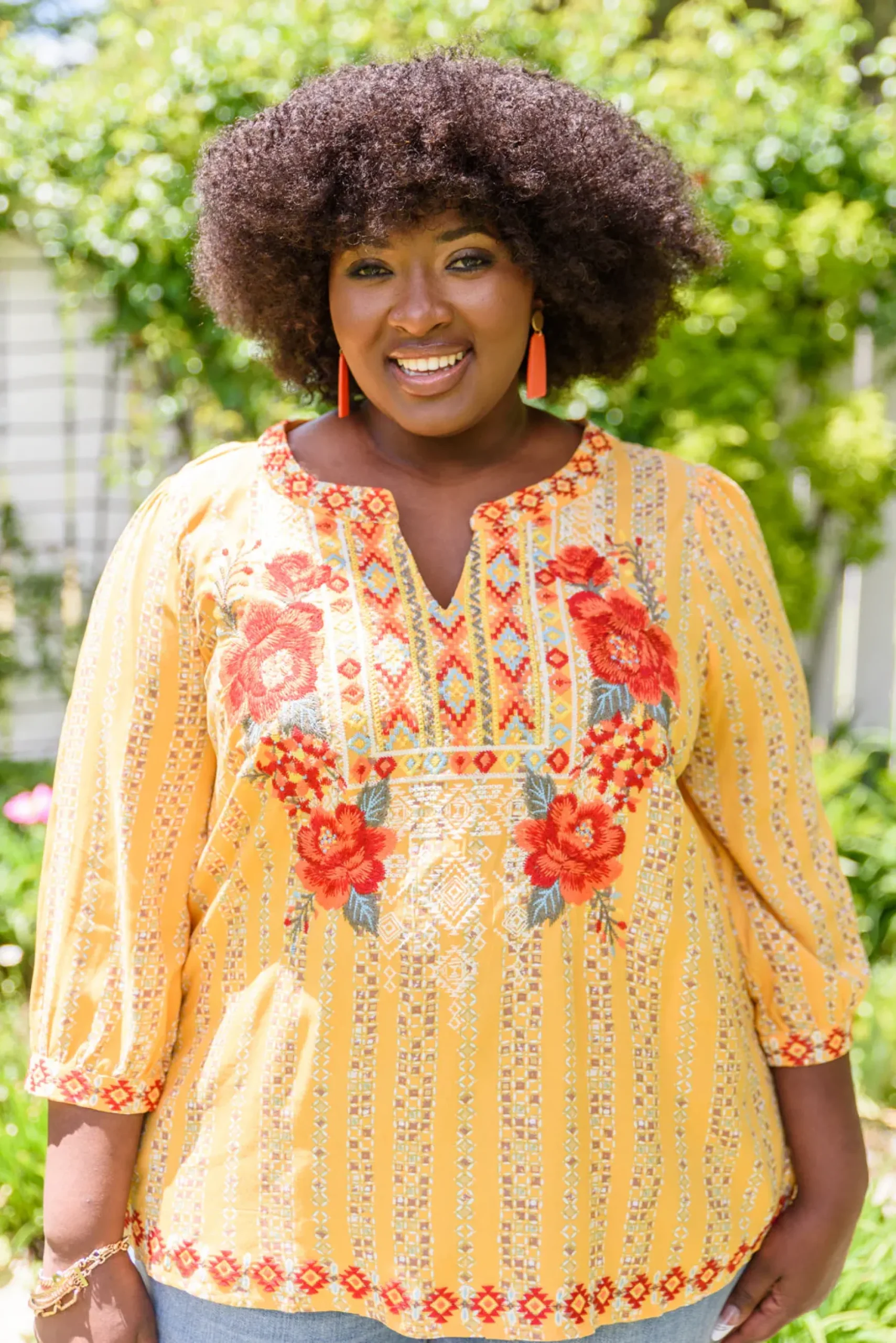 - Little to no stretch + Embroidered neckline & cuffs