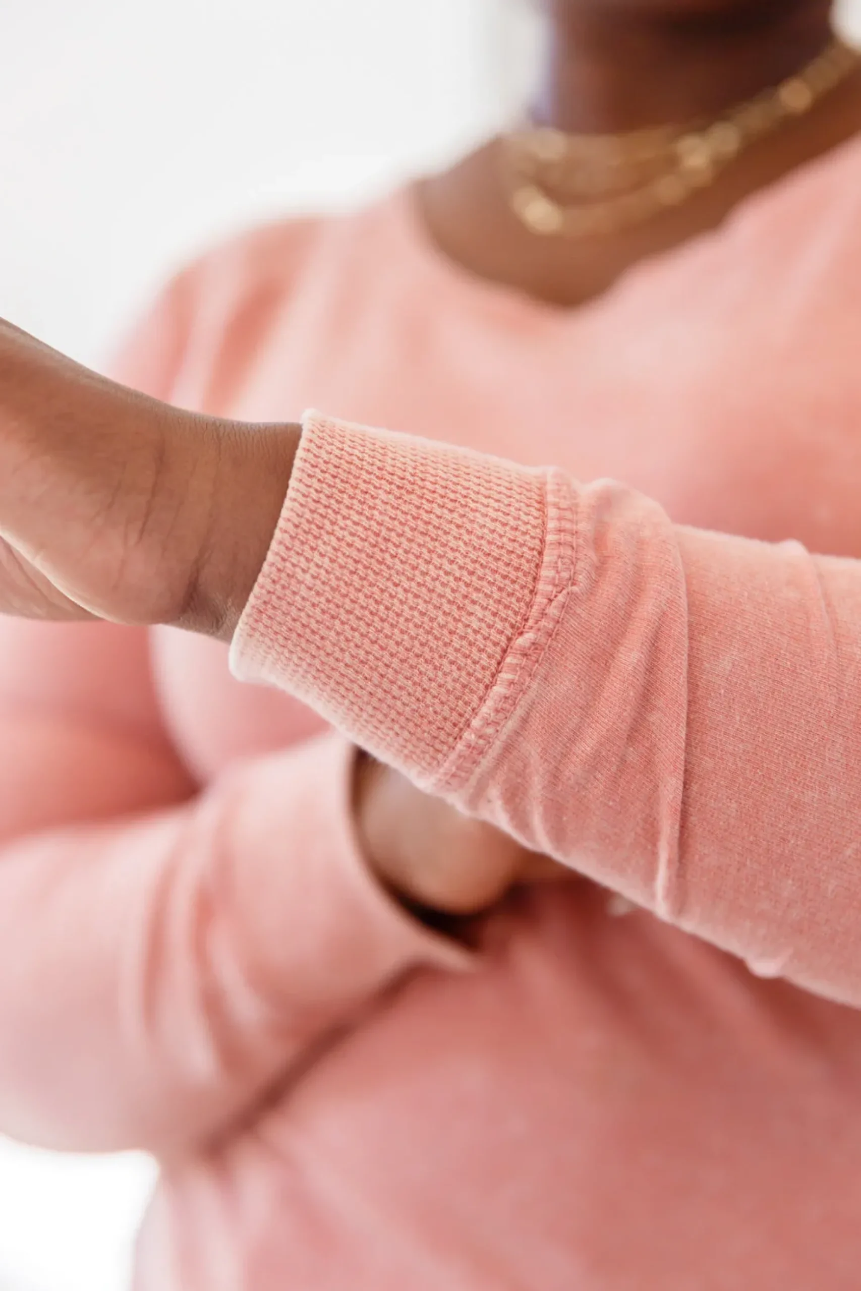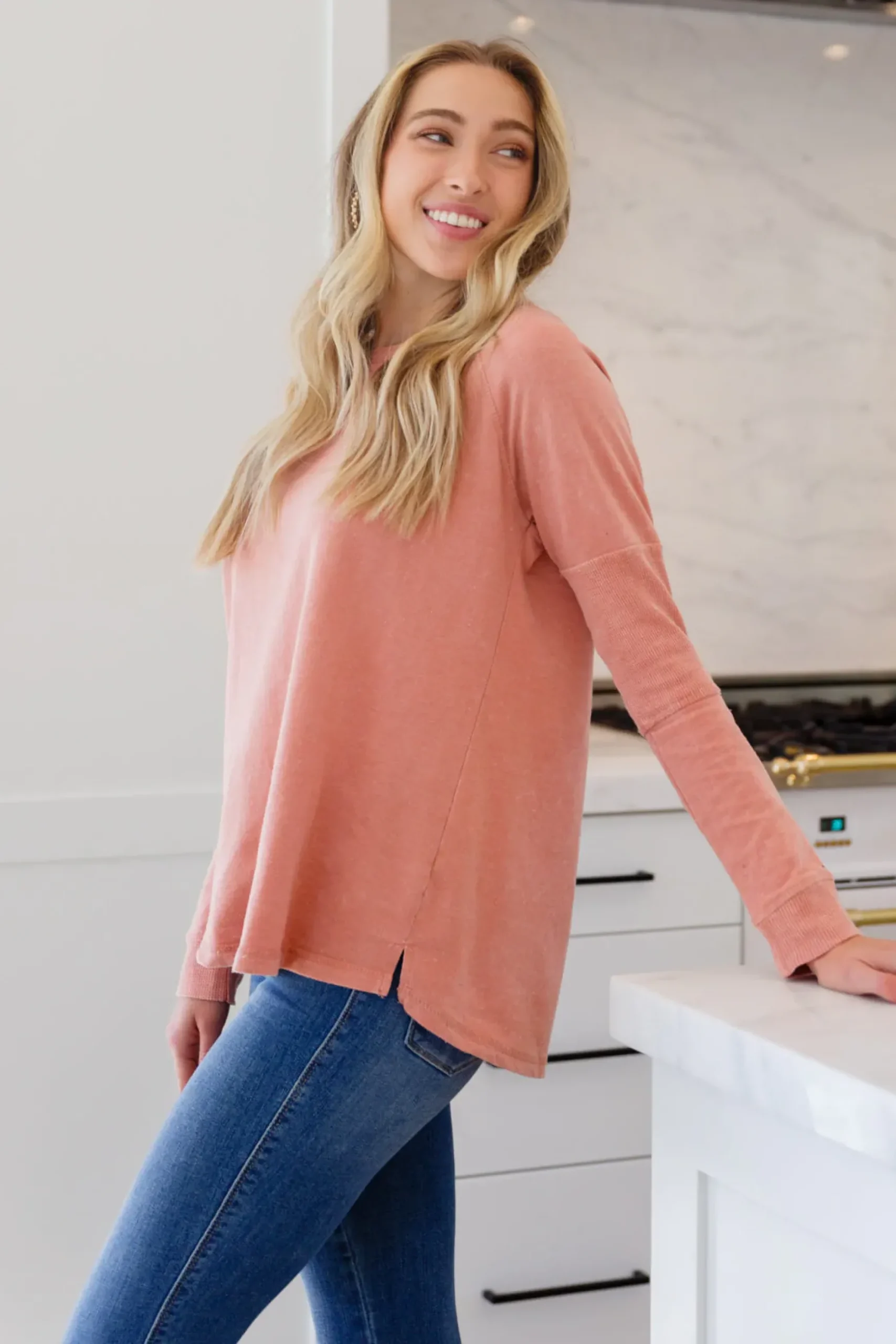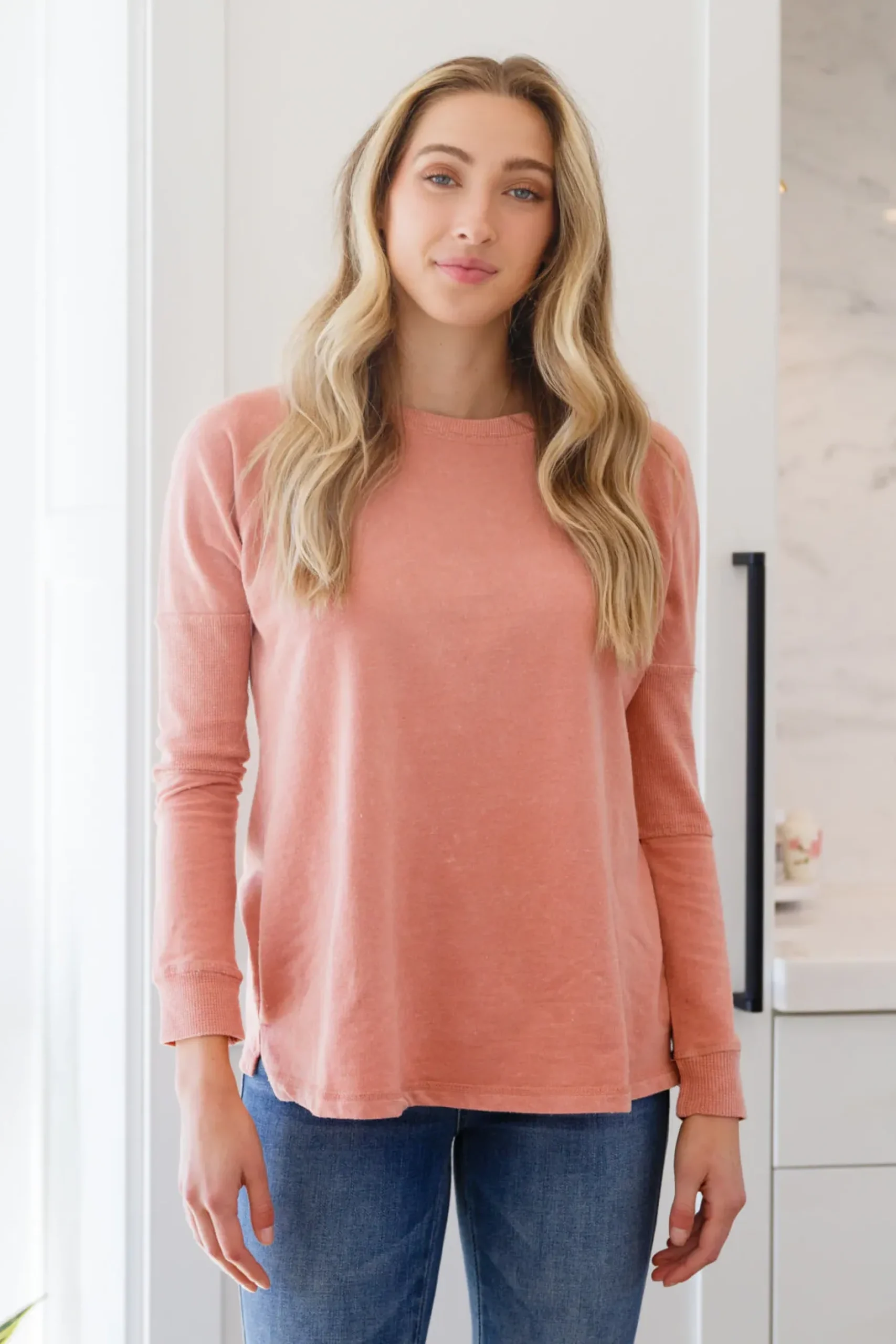 You’ll find yourself always reaching for the Fun Beginnings Raglan Top in Dusty Mauve! It’s cute, it’s functional and it’s on trend. An oversized bodice boasts a round neckline with decorative exposed seam detail and mini side slits. The long sleeves feature a drop shoulder detail with the cutest contrasting waffle fabric at the cuff and elbow. The washed effect creates a vintage inspired look you’ll love!
