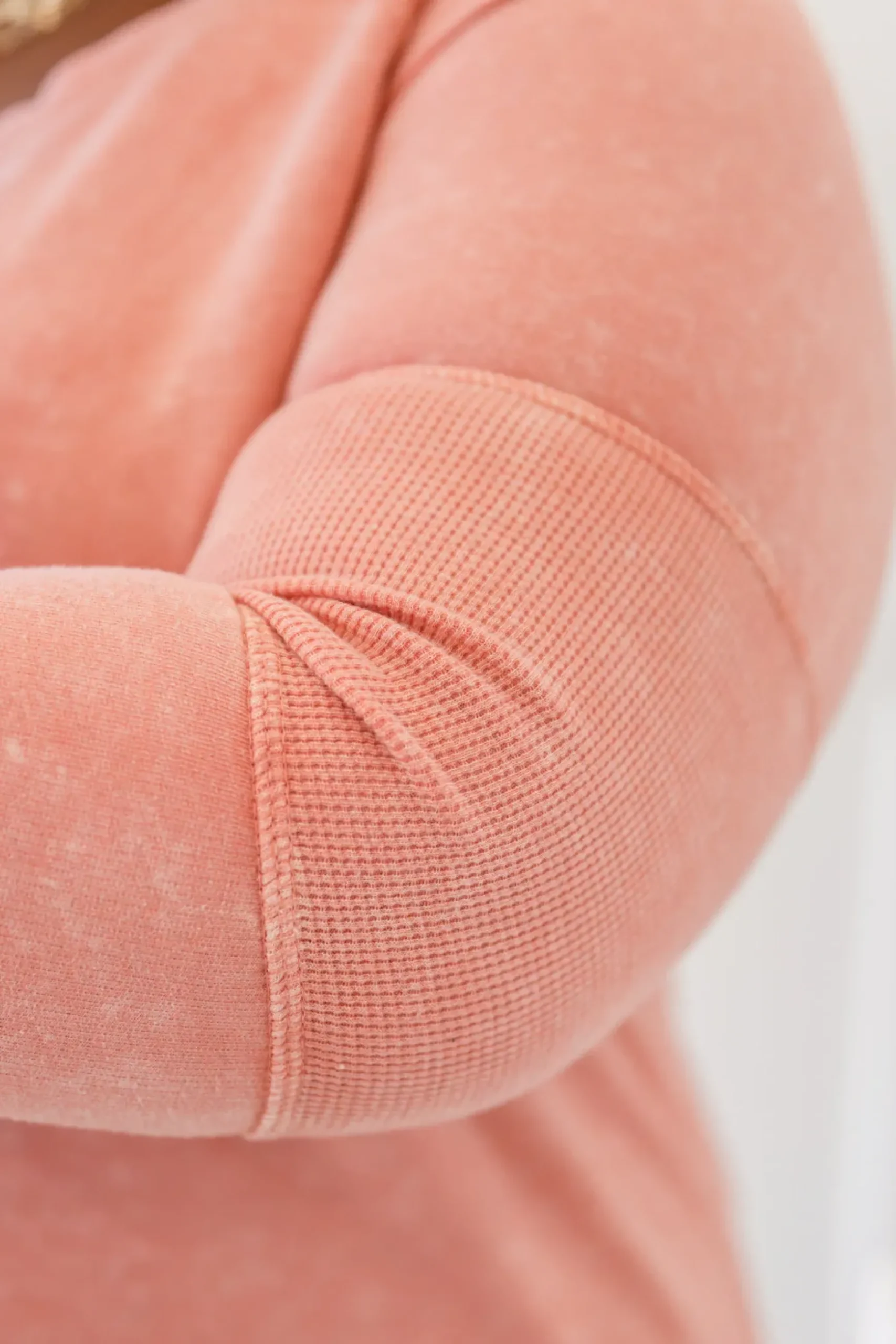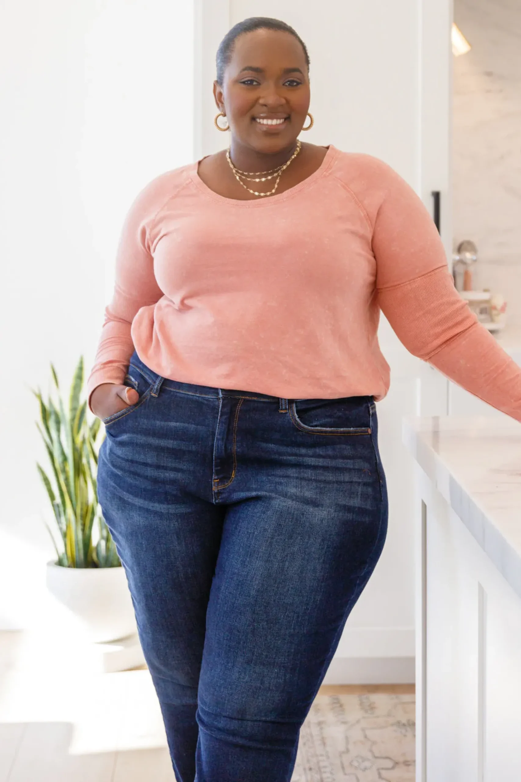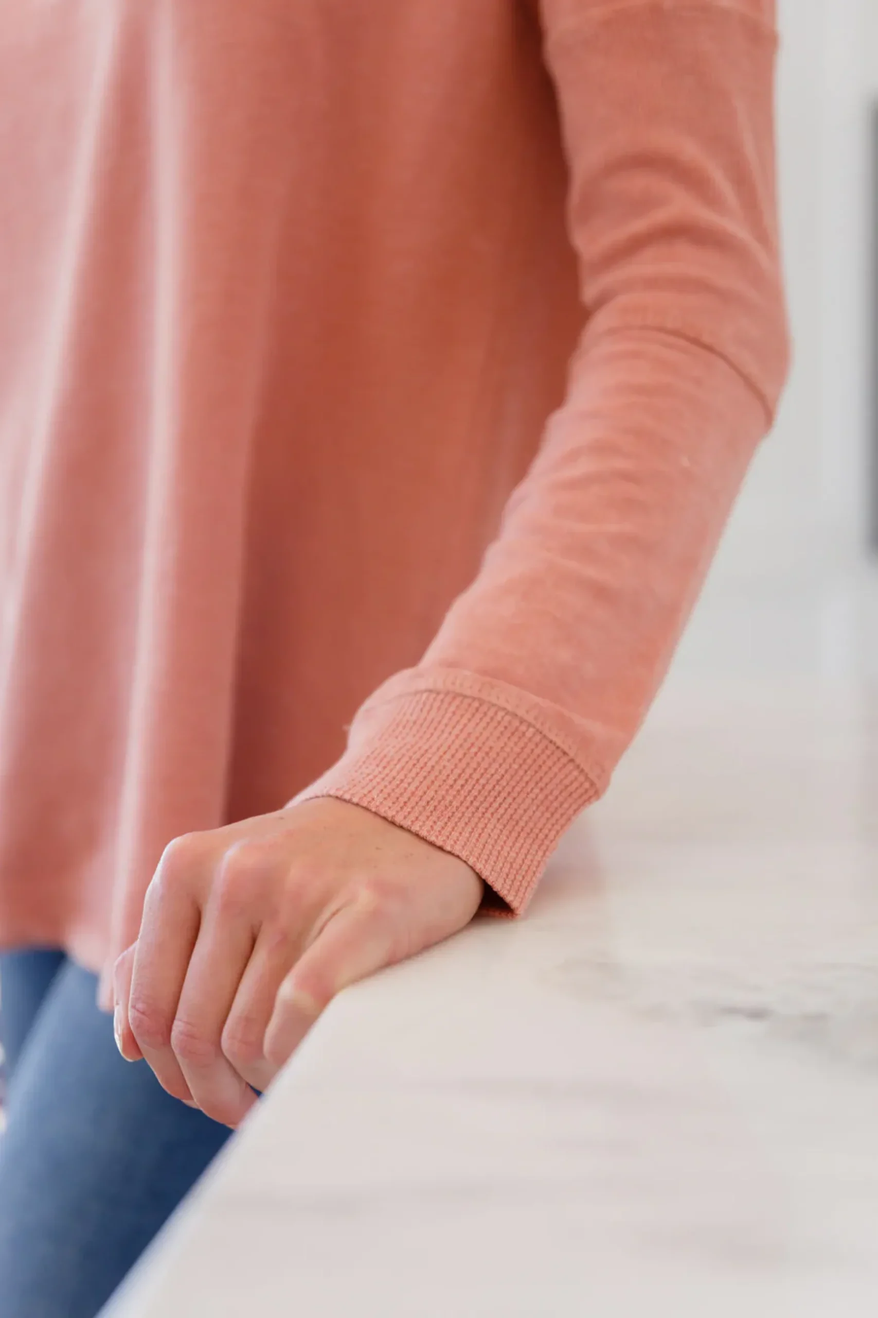 You’ll find yourself always reaching for the Fun Beginnings Raglan Top in Dusty Mauve! It’s cute, it’s functional and it’s on trend. An oversized bodice boasts a round neckline with decorative exposed seam detail and mini side slits. The long sleeves feature a drop shoulder detail with the cutest contrasting waffle fabric at the cuff and elbow. The washed effect creates a vintage inspired look you’ll love!