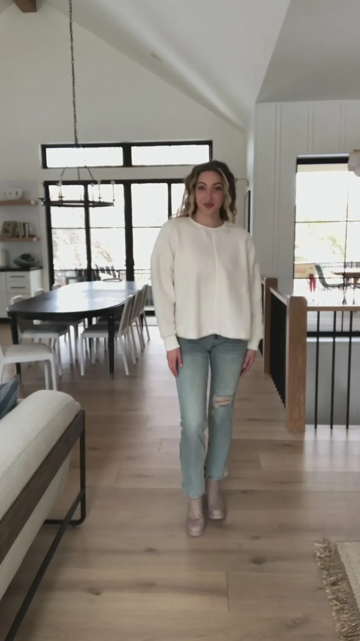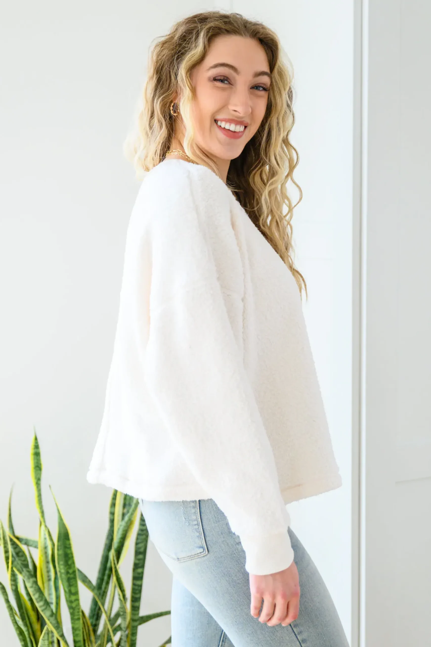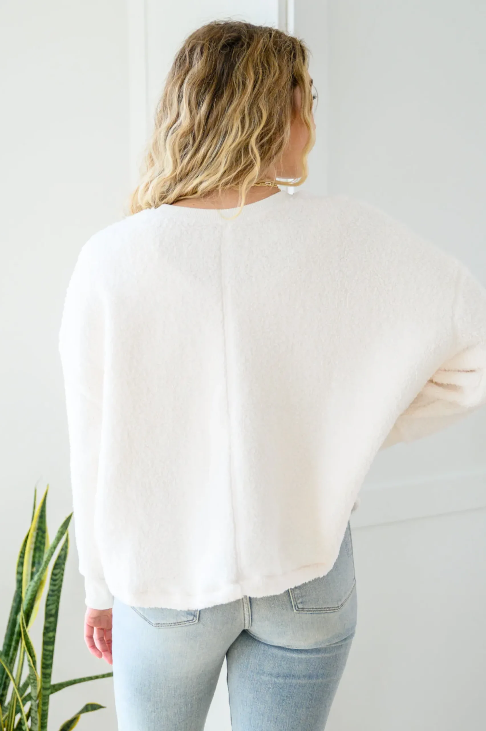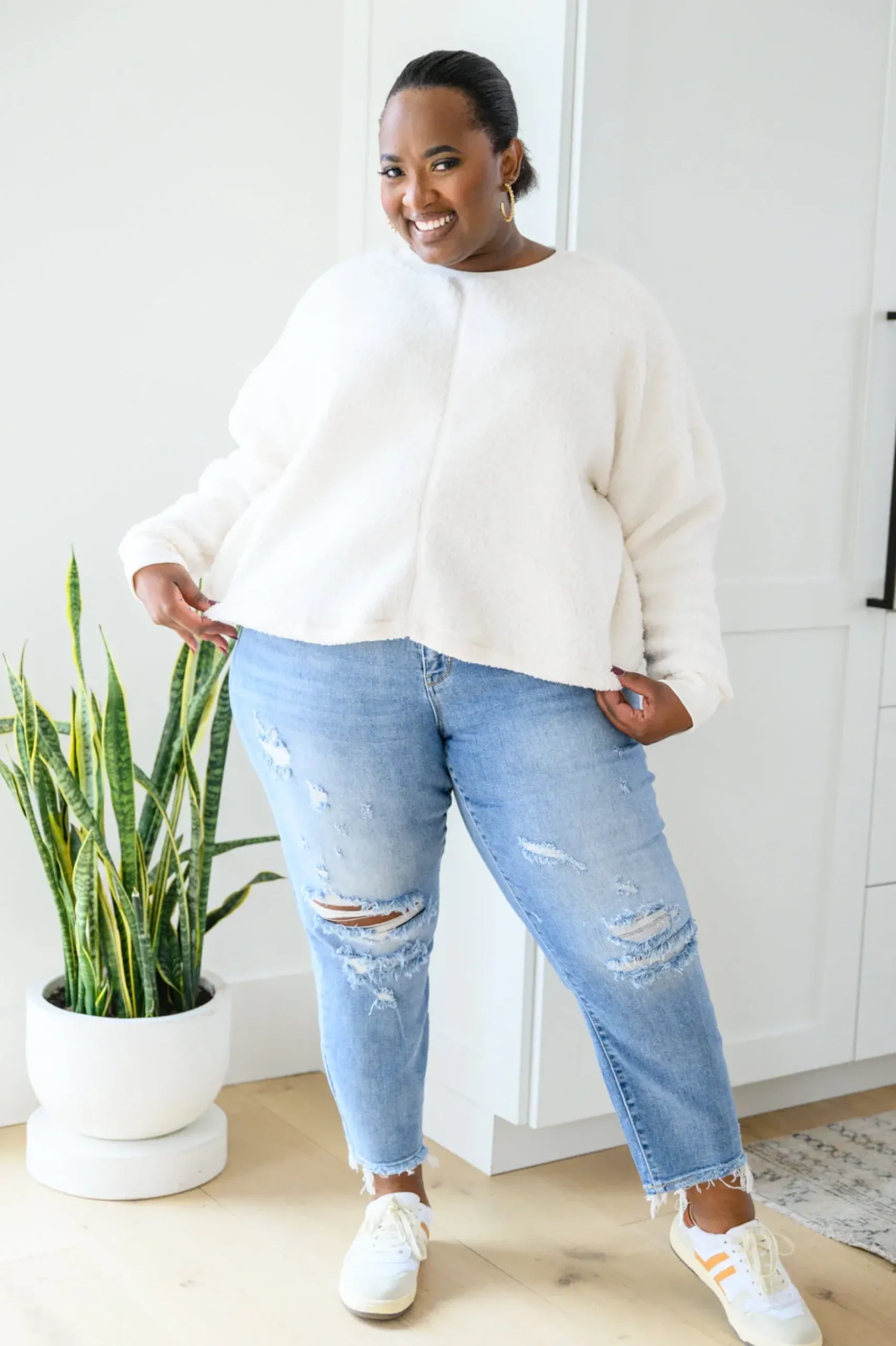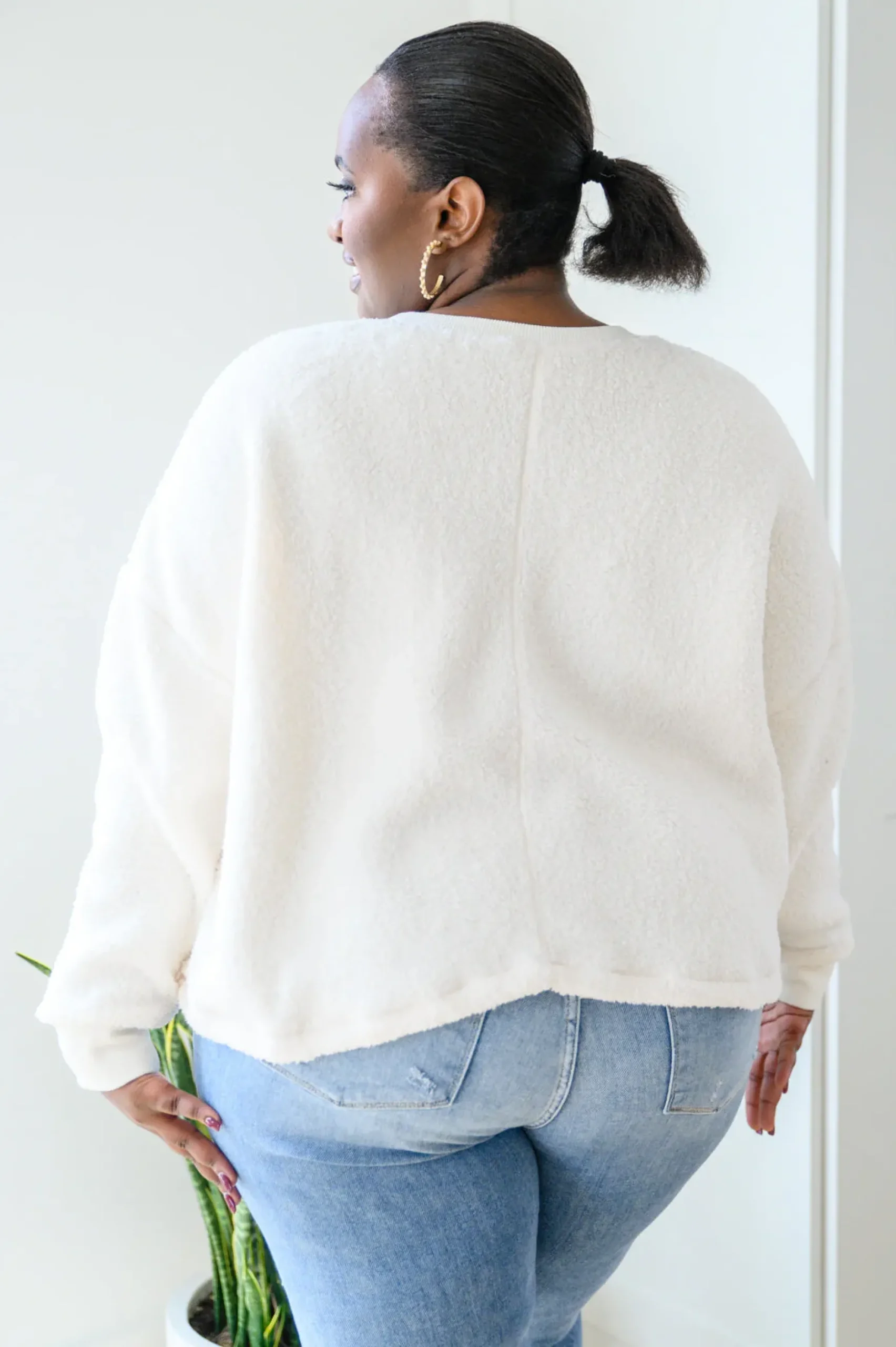 Those chilly days aren’t going anywhere anytime soon so make sure to stay cozy in the Fuzzy Cuddles Sweater in Off White! This extra cuddly sweater is shaped from a fuzzy knit, making up a round neckline with drop shoulder long sleeves and a slightly cropped, boxy bodice.