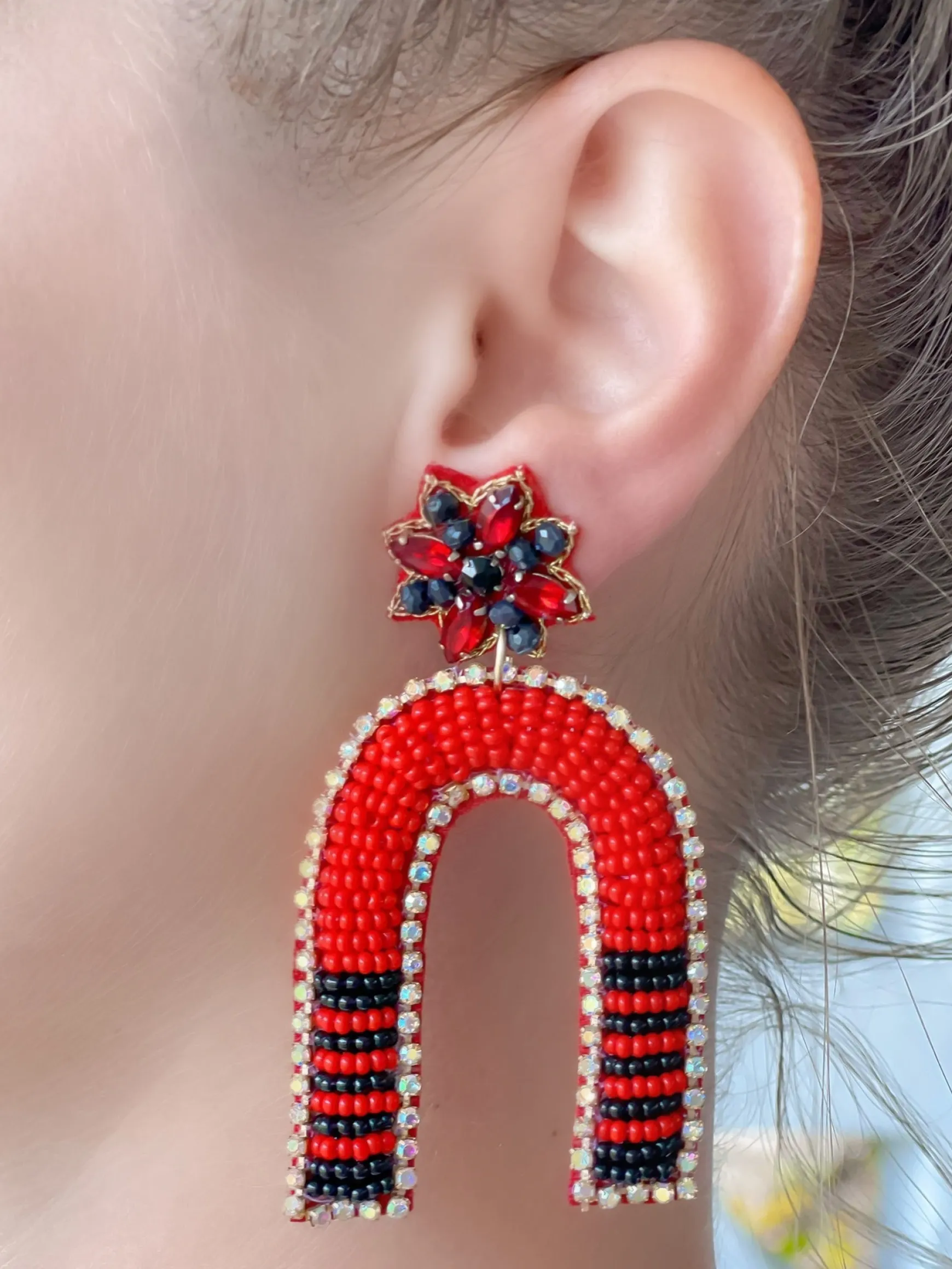 Game Day Beaded Arch Dangle Earrings – Red & Black