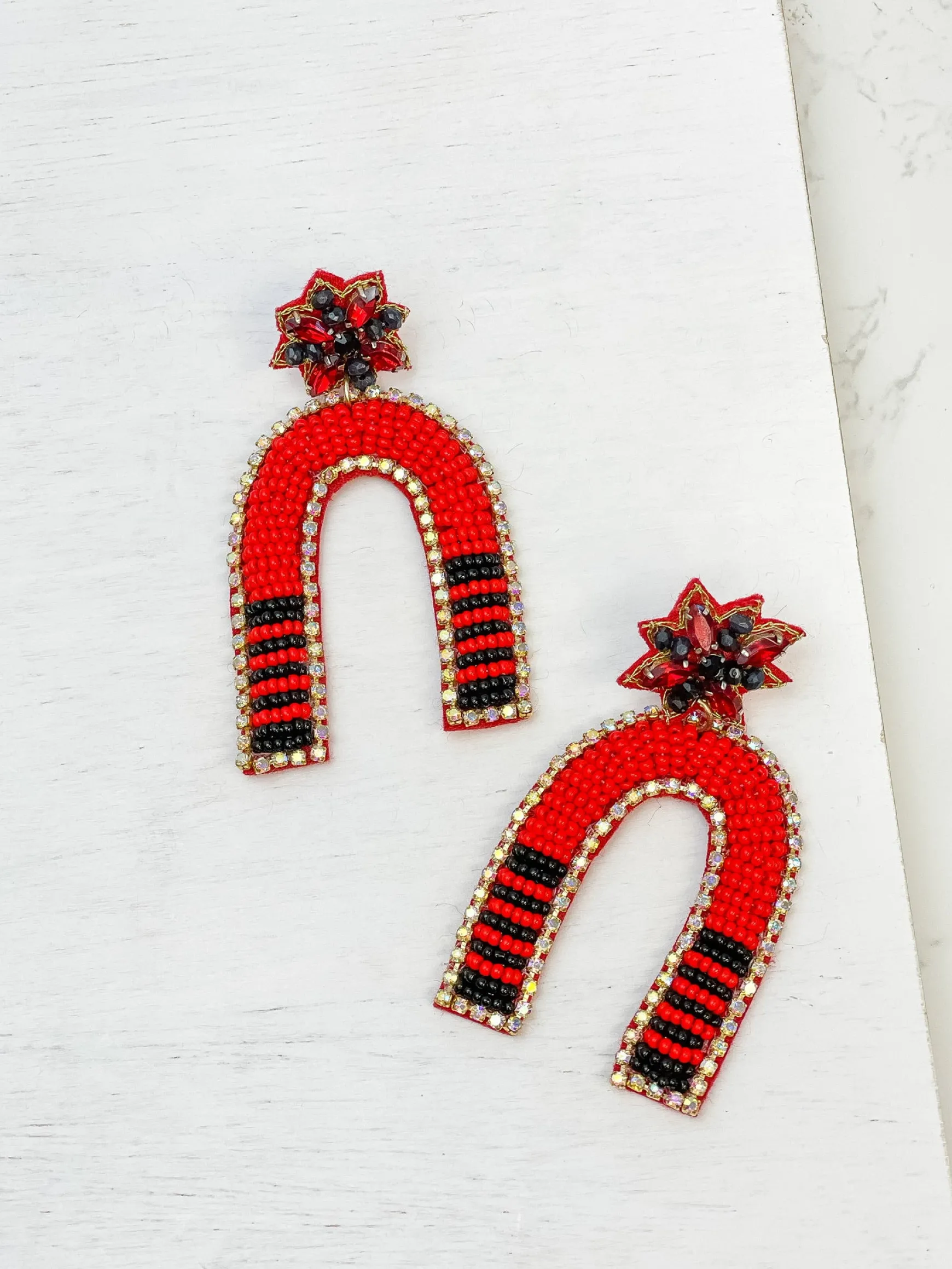 Game Day Beaded Arch Dangle Earrings - Red & Black