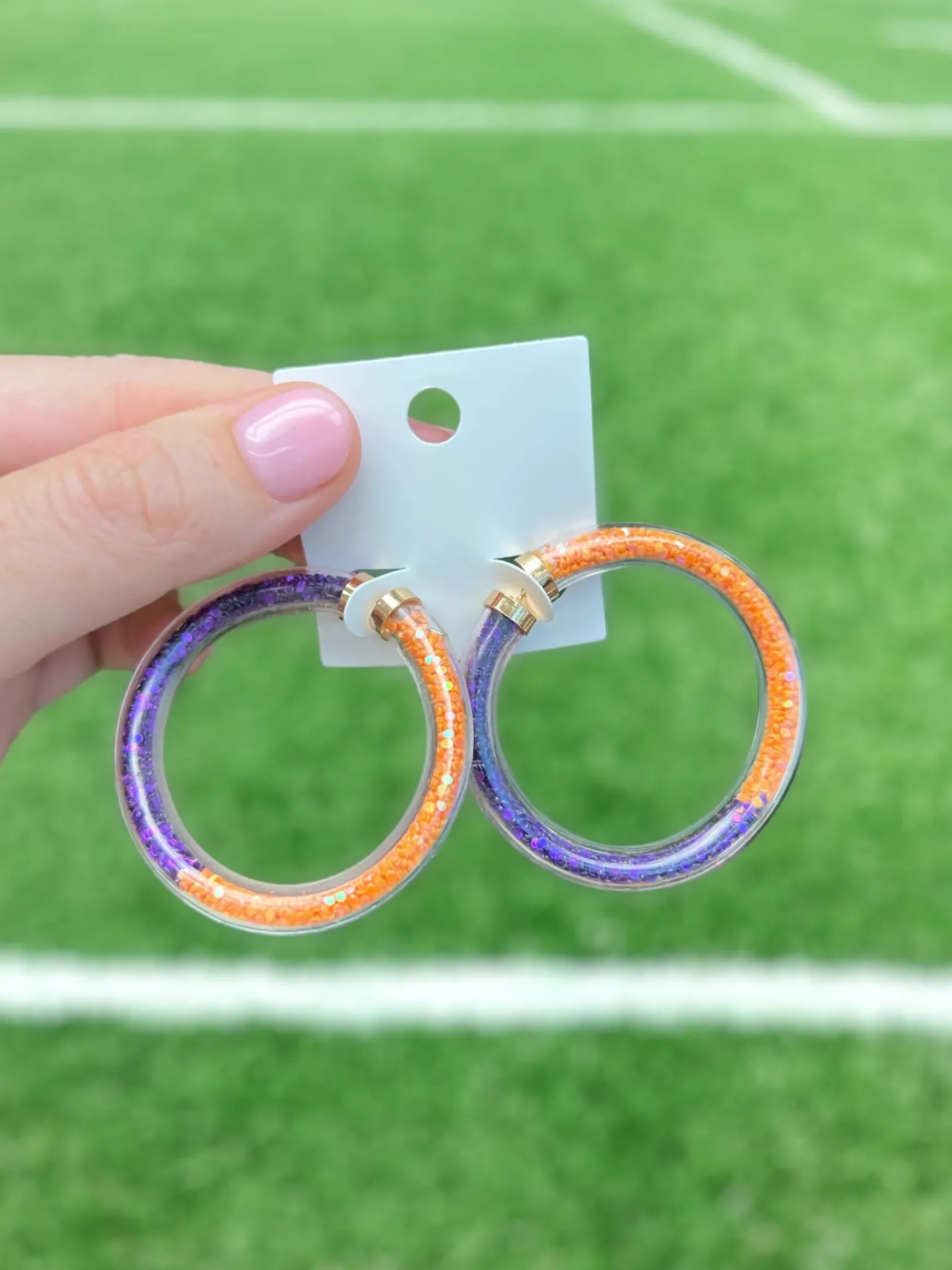 These Game Day Jelly Tube Hoop Earrings are the perfect accessory to show your team spirit.