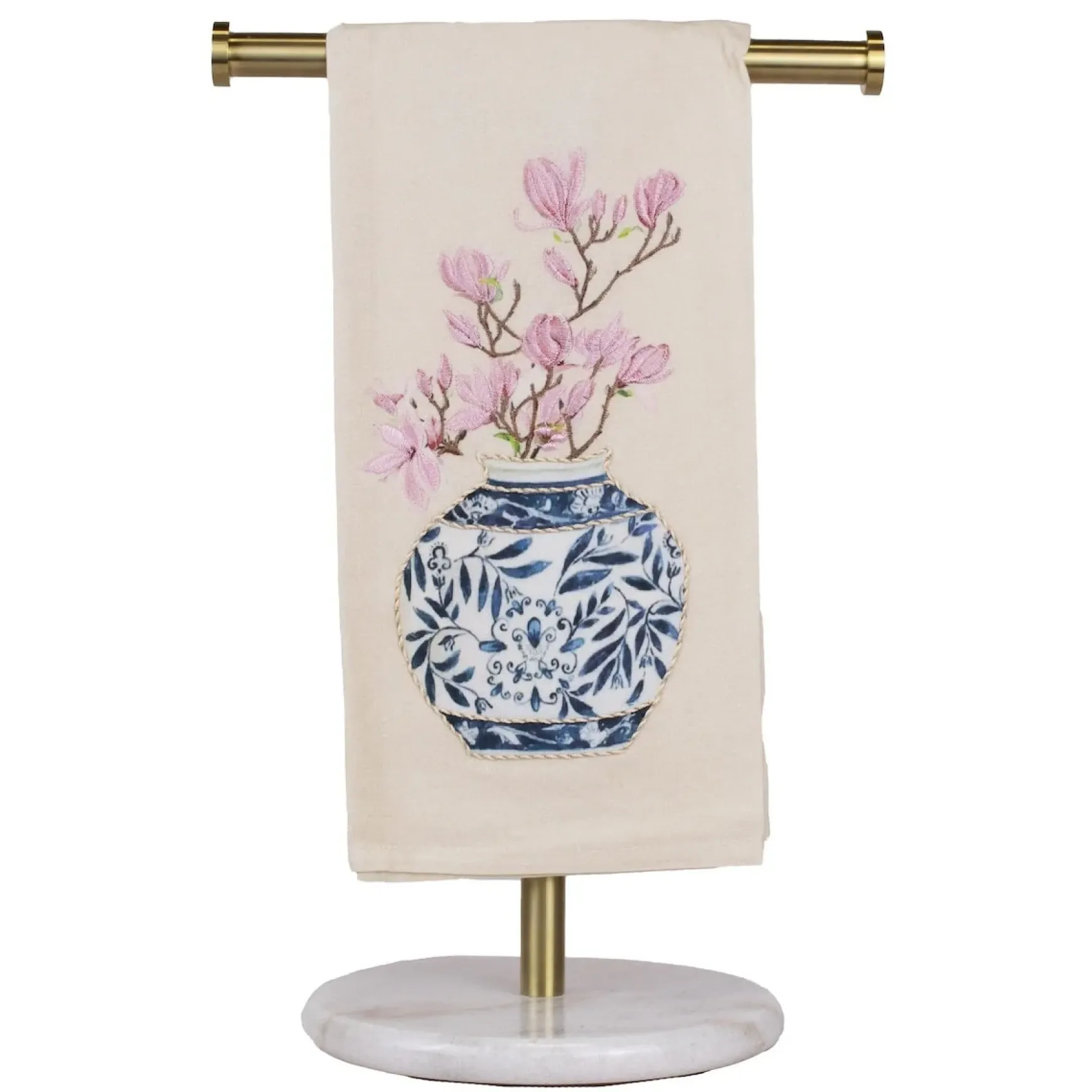 Add a touch of elegance to your decor with this beautiful Ginger Jar Hand Towel in Oat/Blue. Measuring 20×28 inches, this hand towel is made of high-quality materials, making it both soft and durable.
