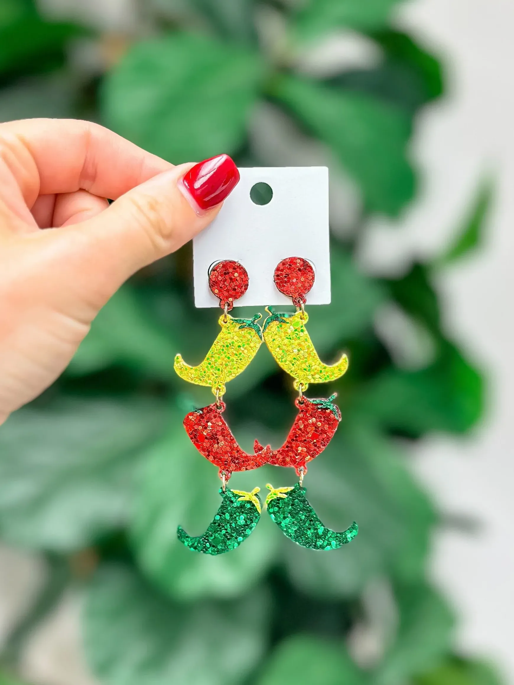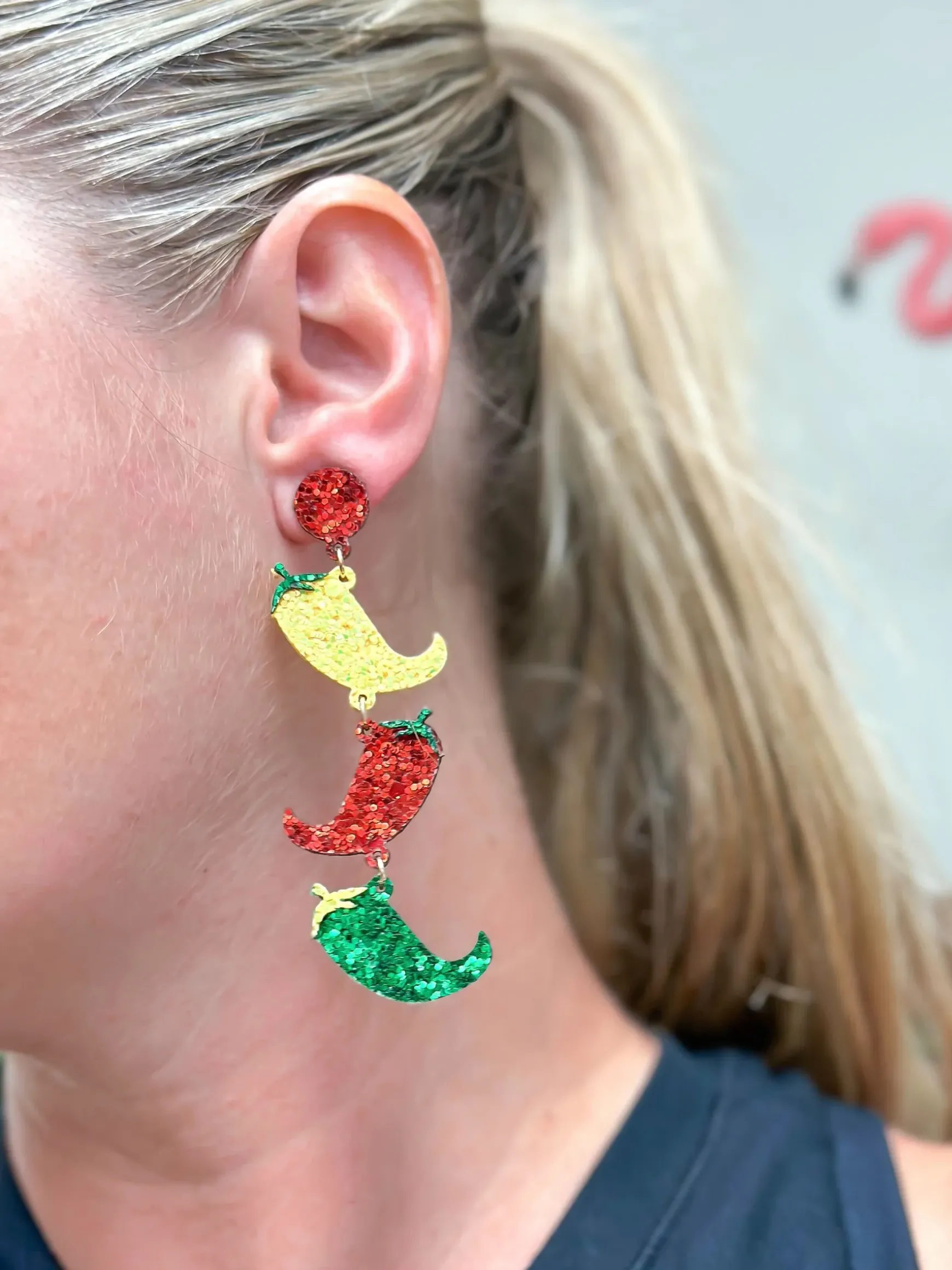 Add a little spice to your wardrobe with our Glitter Chili Pepper Dangle Earrings. These fun and lightweight earrings are dripping with glitter and are sure to make a statement. Perfect for adding a playful touch to any outfit.