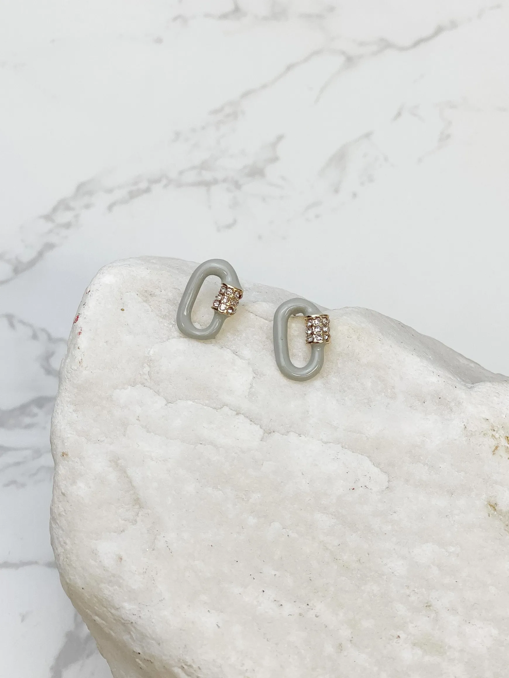 Enhance your style with our Glitzy Locked Link Earrings. These unique earrings feature a fun stud design that adds a touch of playfulness to any outfit.