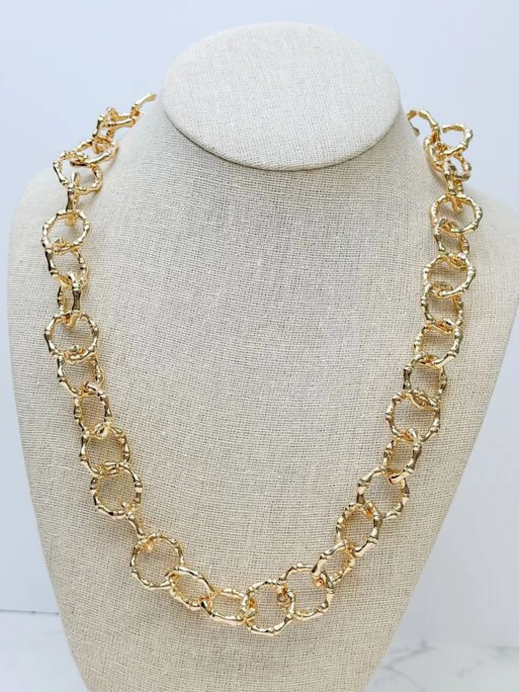Crafted with a beautiful gold hue, this bamboo link chain necklace adds a touch of shine to your style.