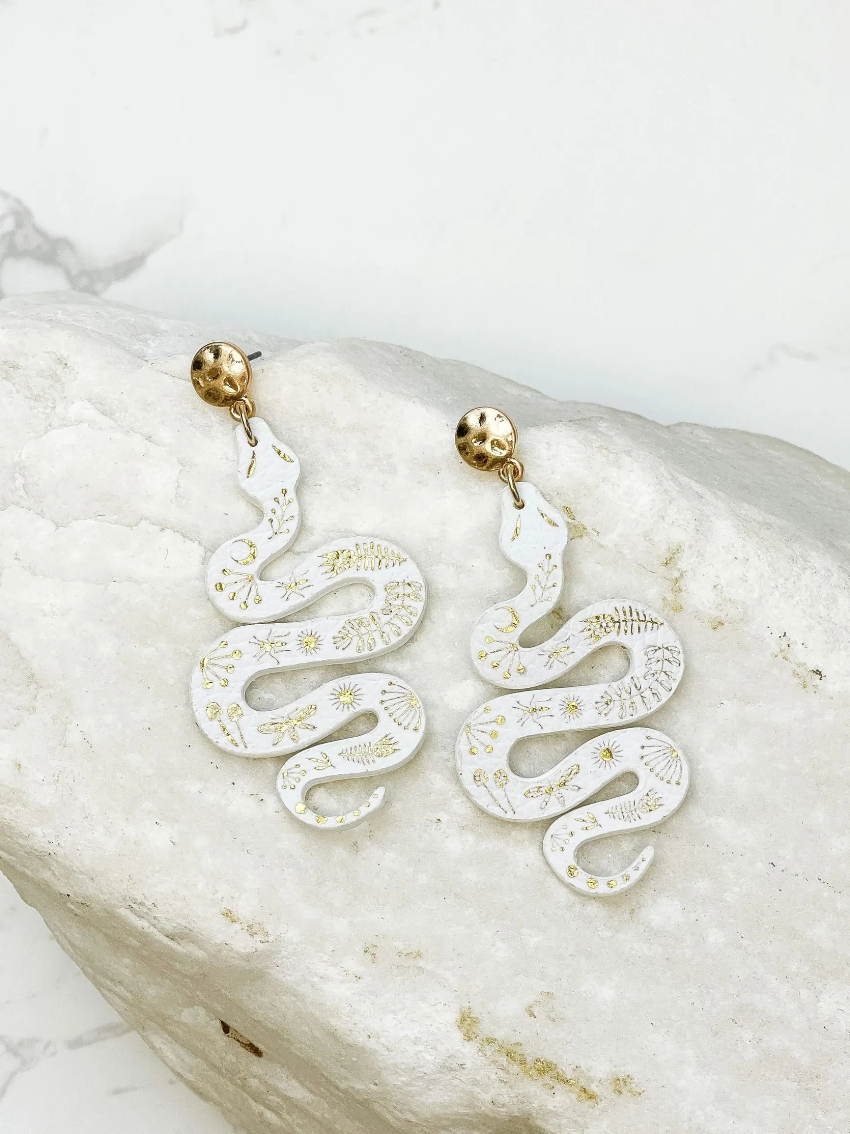 These metallic leather snake earrings boast a lightweight design, making them comfortable to wear.