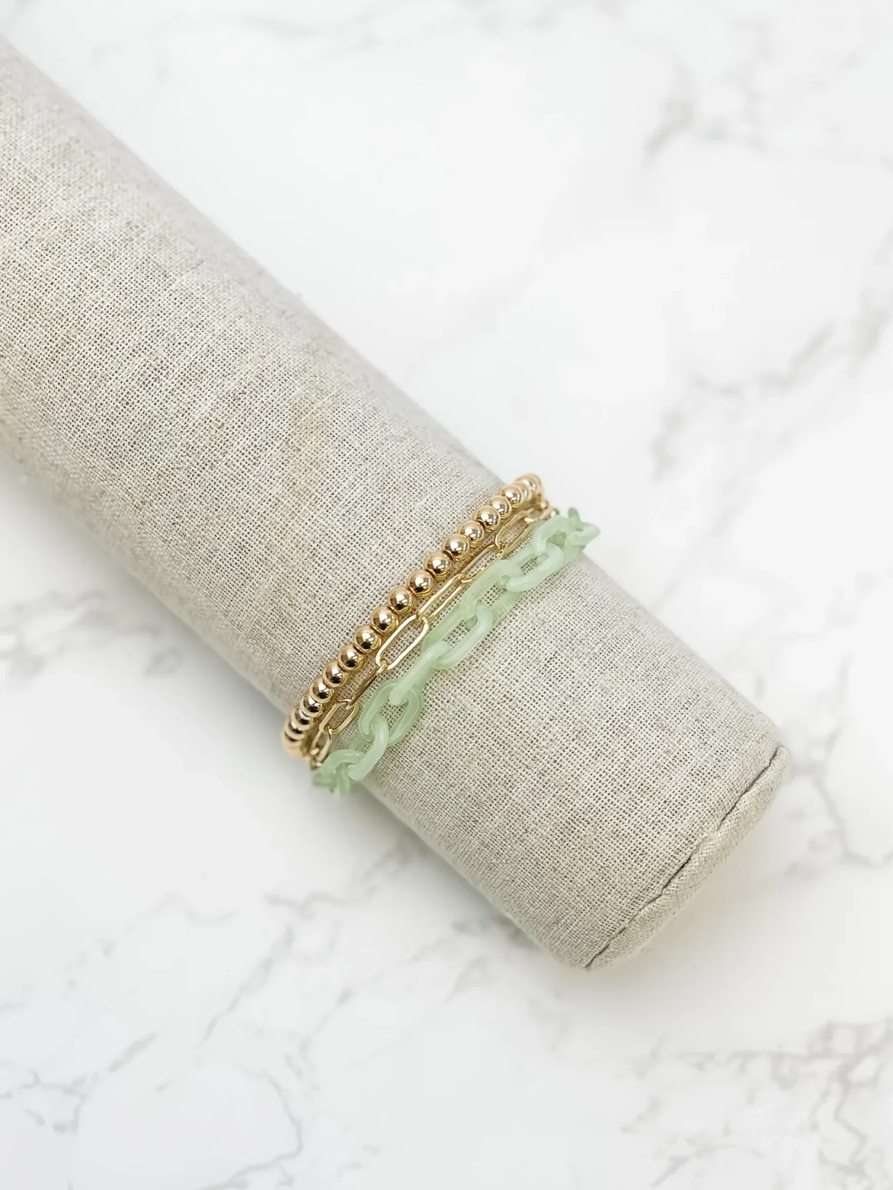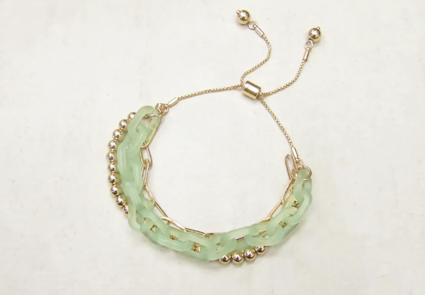 Gold Link & Chunky Chain Layer Bracelet – Green