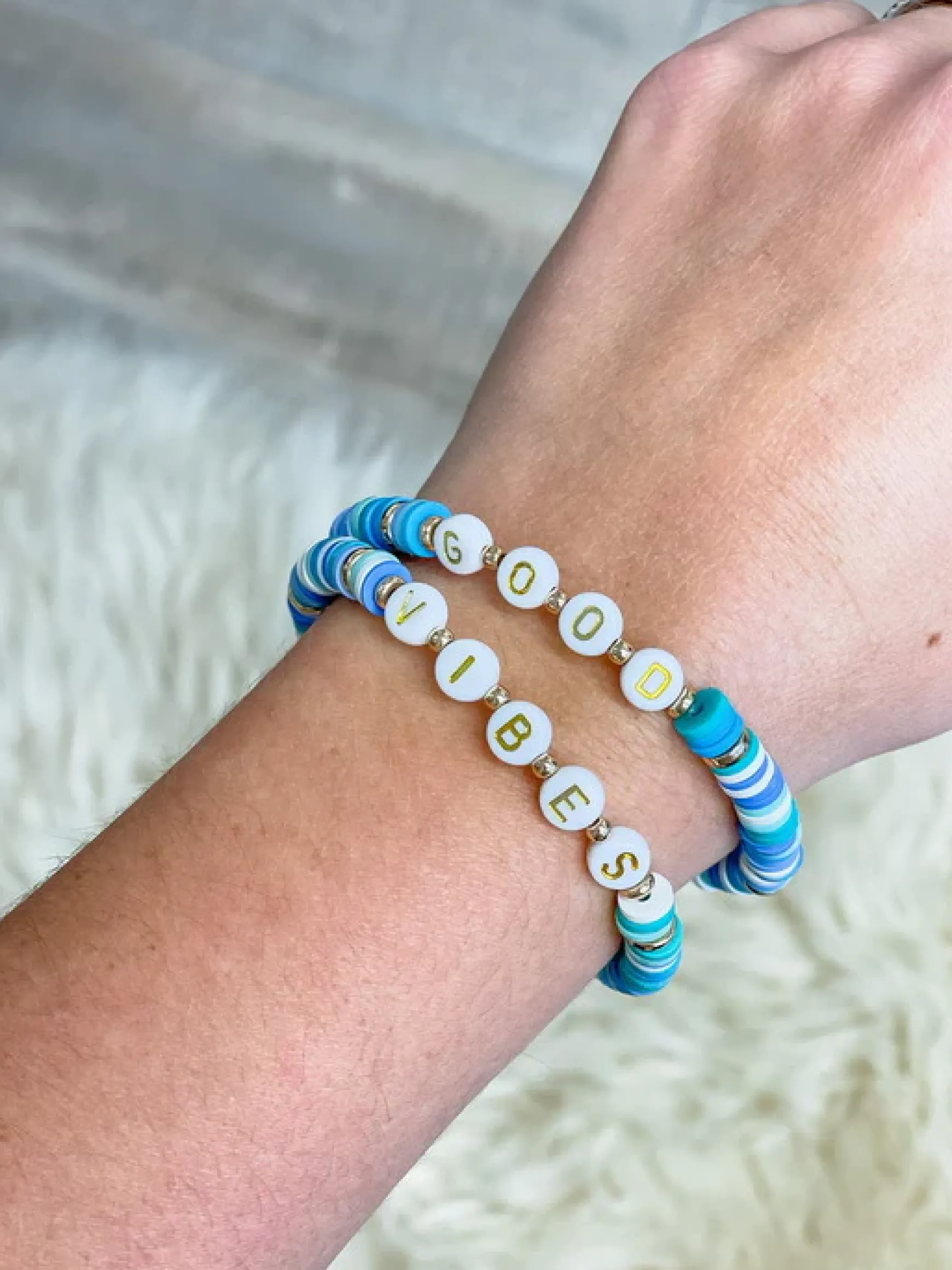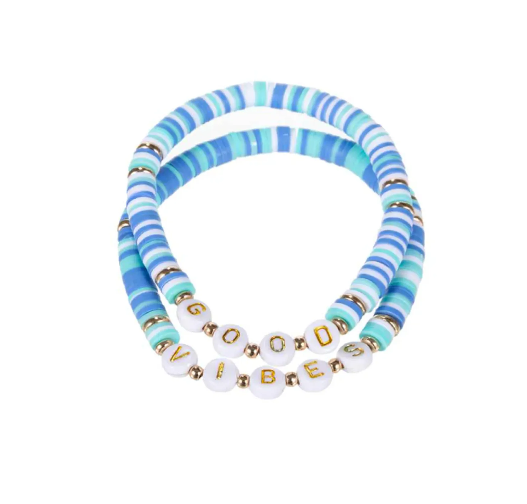 ‘Good Vibes’ Stretch Bracelet Set – Blue Multi