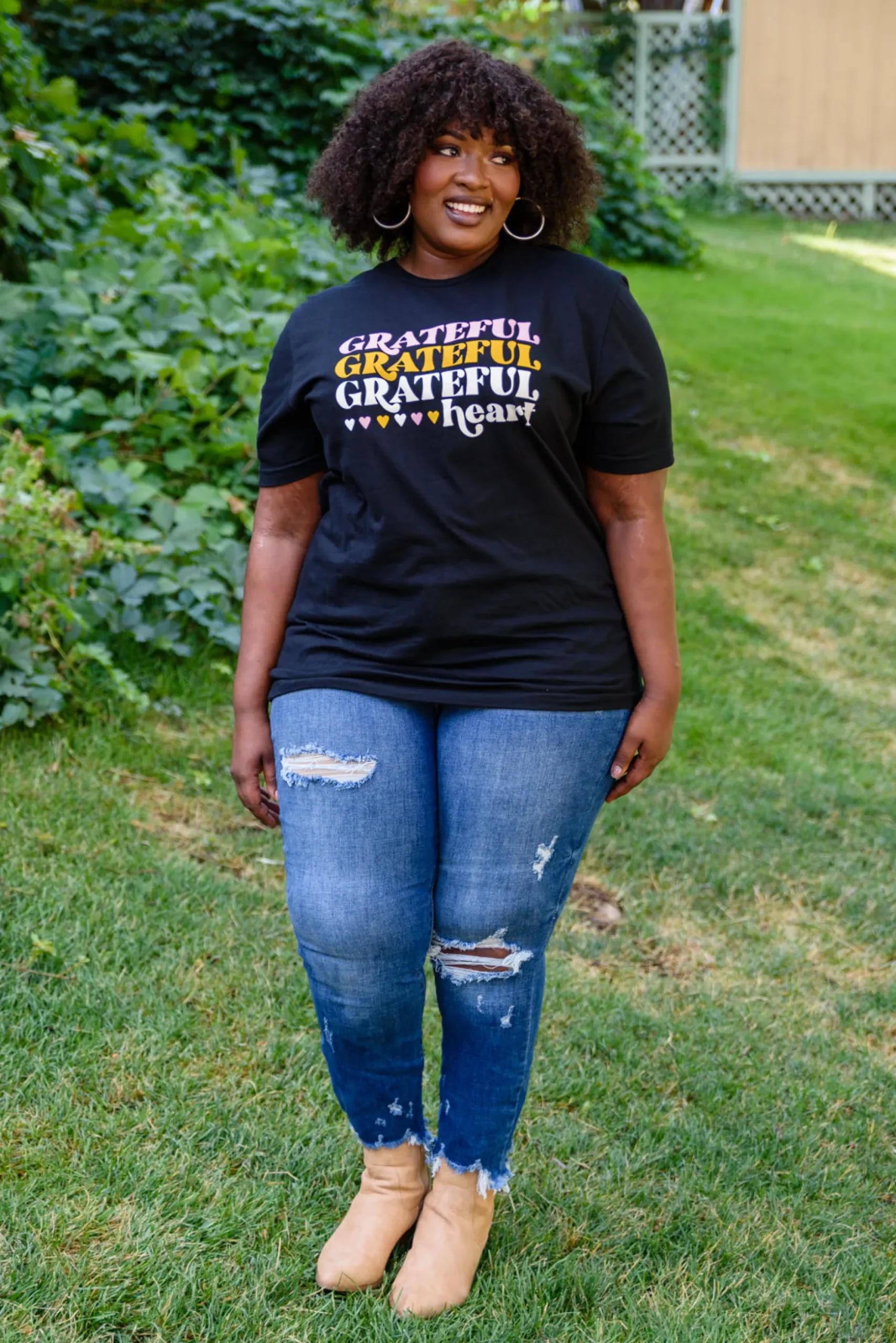 We’re grateful that cute tees like the Grateful Heart Graphic T-Shirt in Black exists! This adorable tee features a crew neckline, short sleeves, and classic Tee silhouette. You can tie this tee up, tuck it in, or wear it how it is. Either way we love the message on this tee AND you’re going to love the look of this new fav.