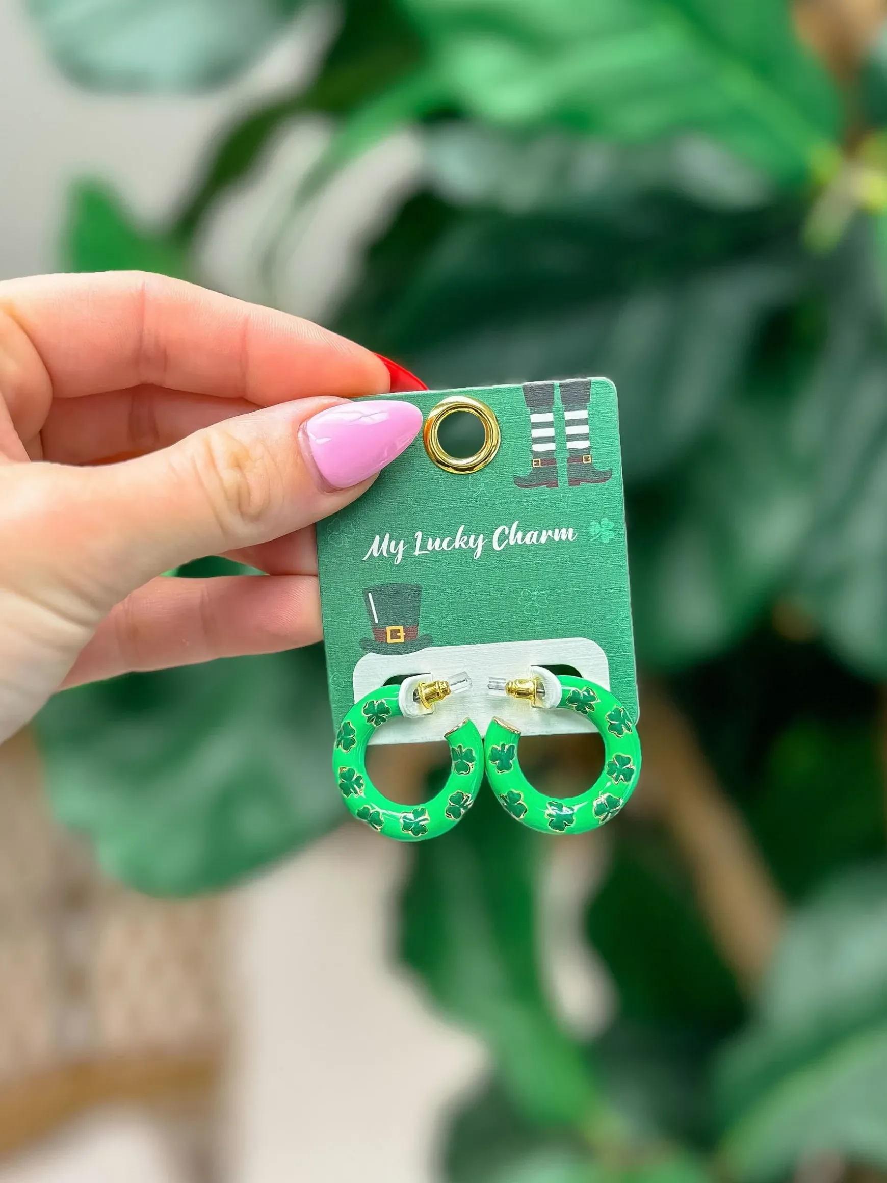 Add a touch of luck to your outfit with our Green Clover Hoop Earrings.