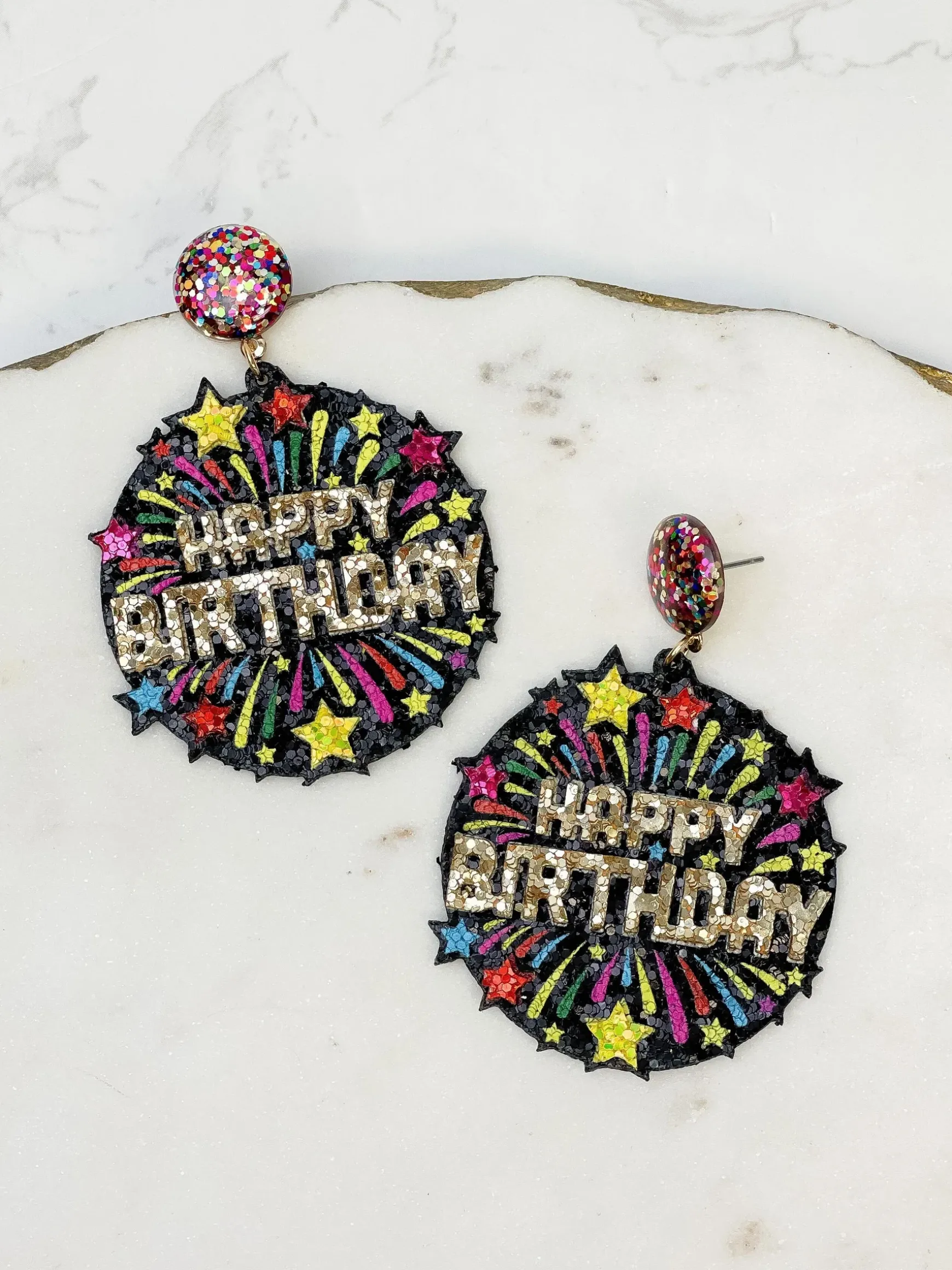 Celebrate in style with our ‘Happy Birthday’ Fireworks Glitter Dangle Earrings. These festive earrings will add a touch of sparkle to any birthday outfit. The perfect accessory for any birthday celebration, they are sure to make you shine all night long.