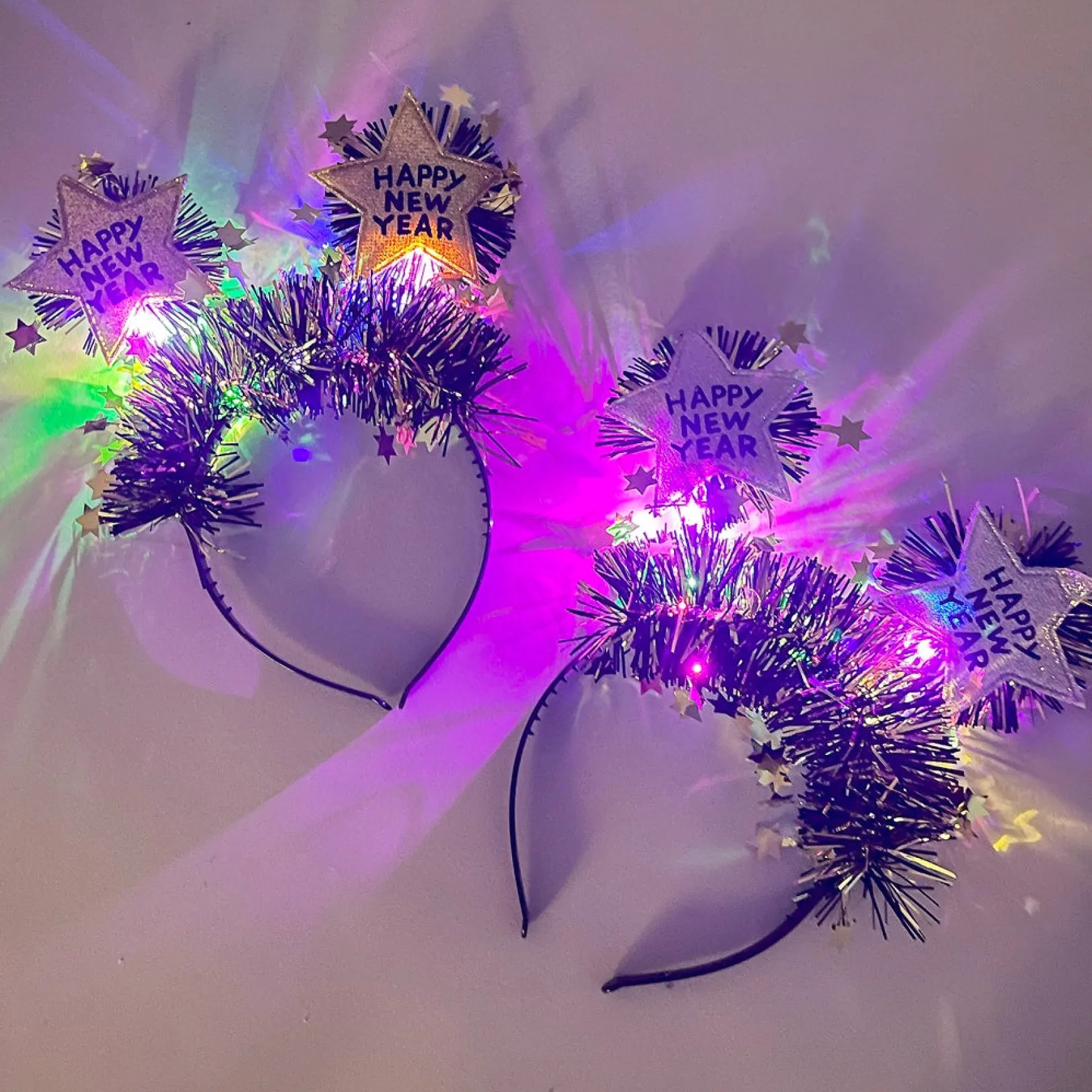 ‘Happy New Year’ Star Glitter Light-Up Gold & Black Headband