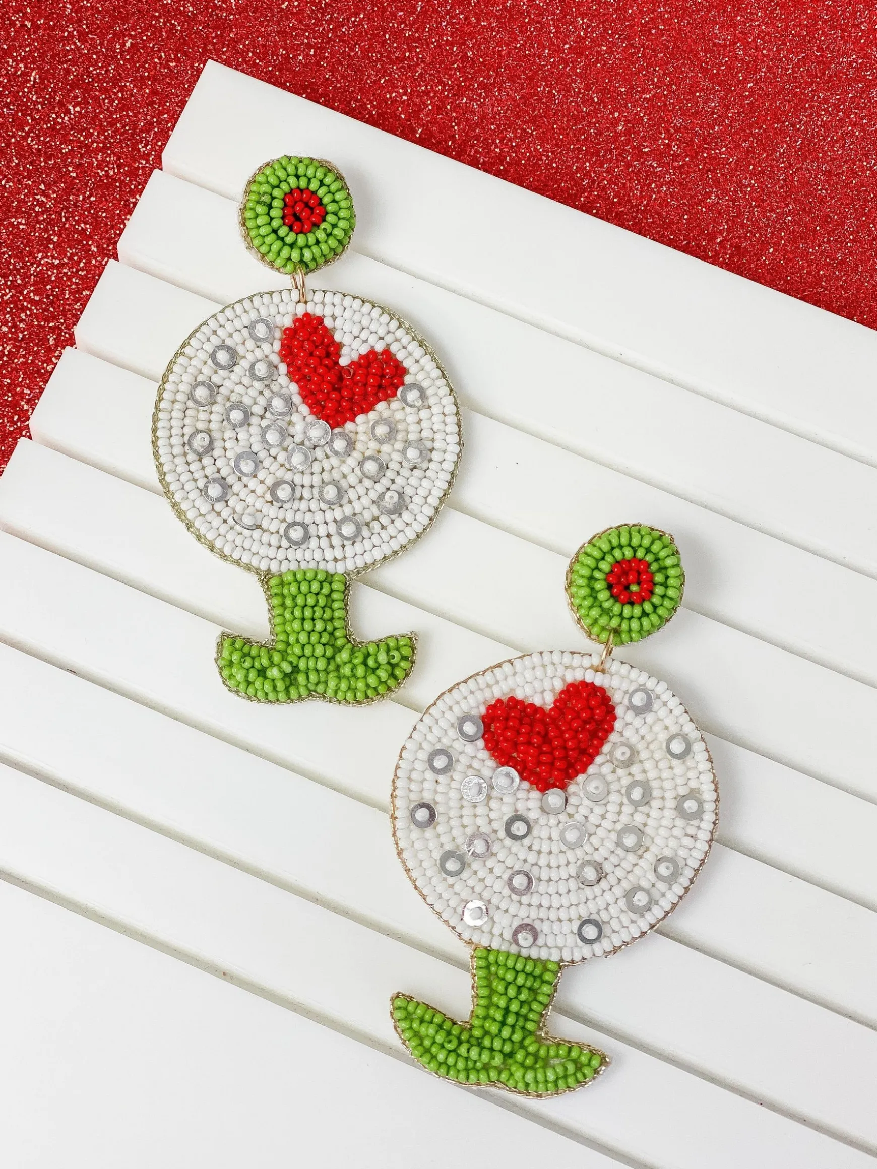 These Heart Golfball Beaded Dangle Earrings are perfect for golf lovers.