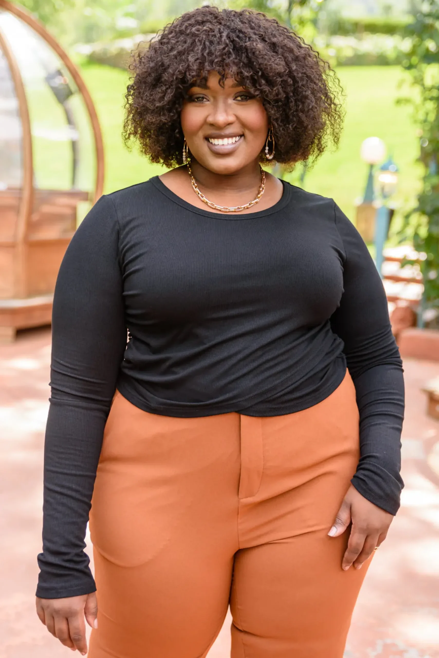 A not so basic, basic! the Here for It Long Sleeve Ribbed Crop Top is just what your closet needs. Adding a touch of fun with the slightly cropped cross over front hem and side ruched detailing. The round neckline, long sleeves, and black ribbed material add a timeless feature. This perfect basic will stay loved in your closet for years!