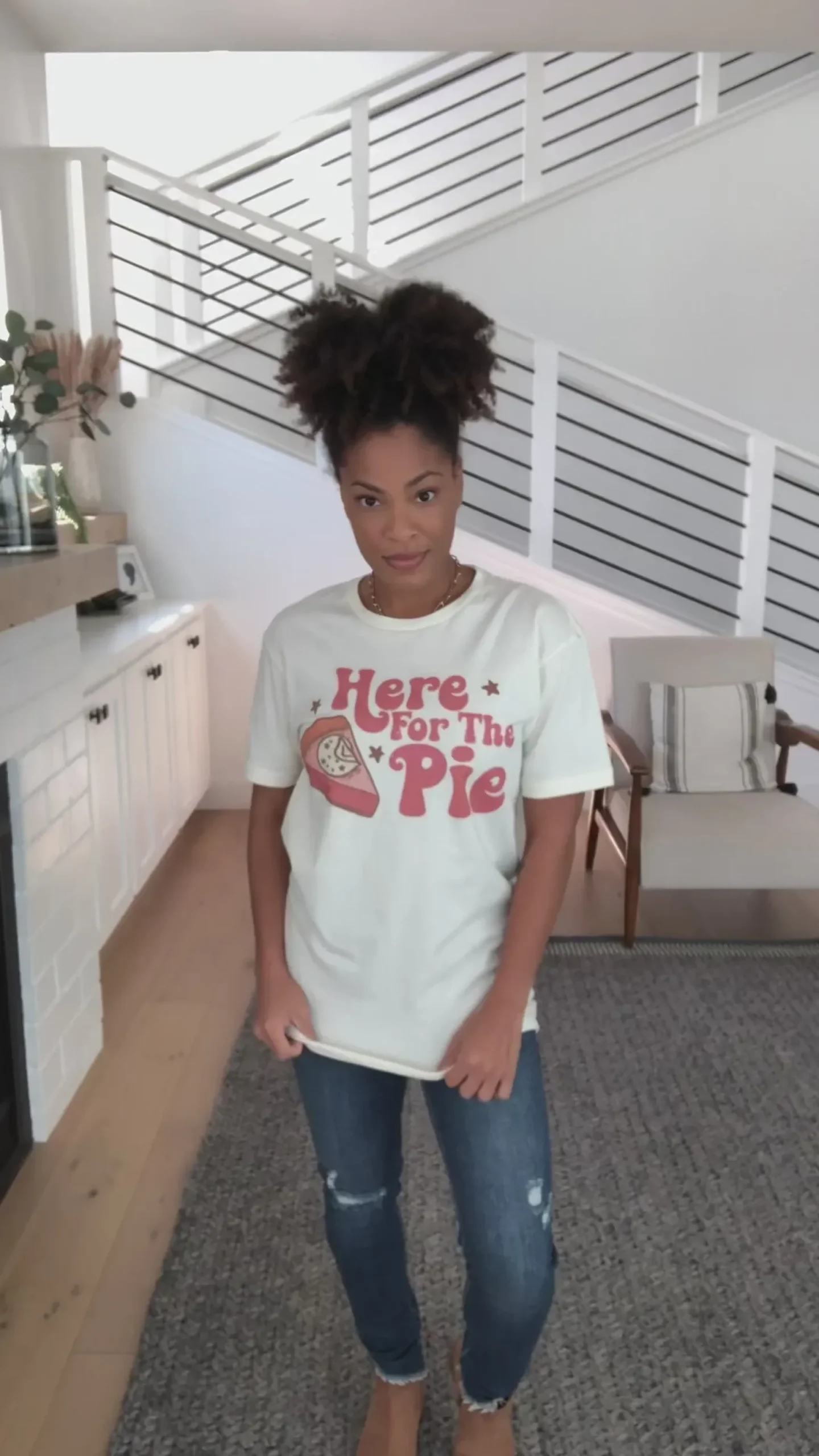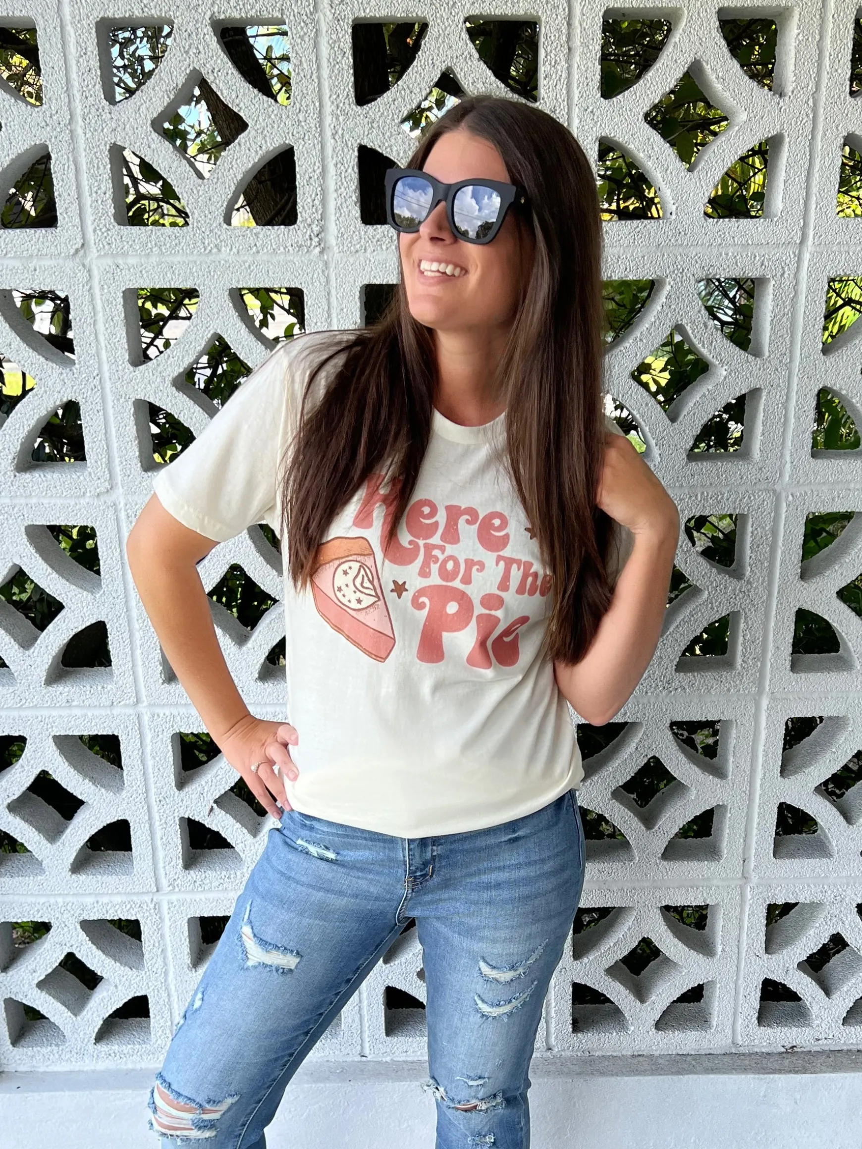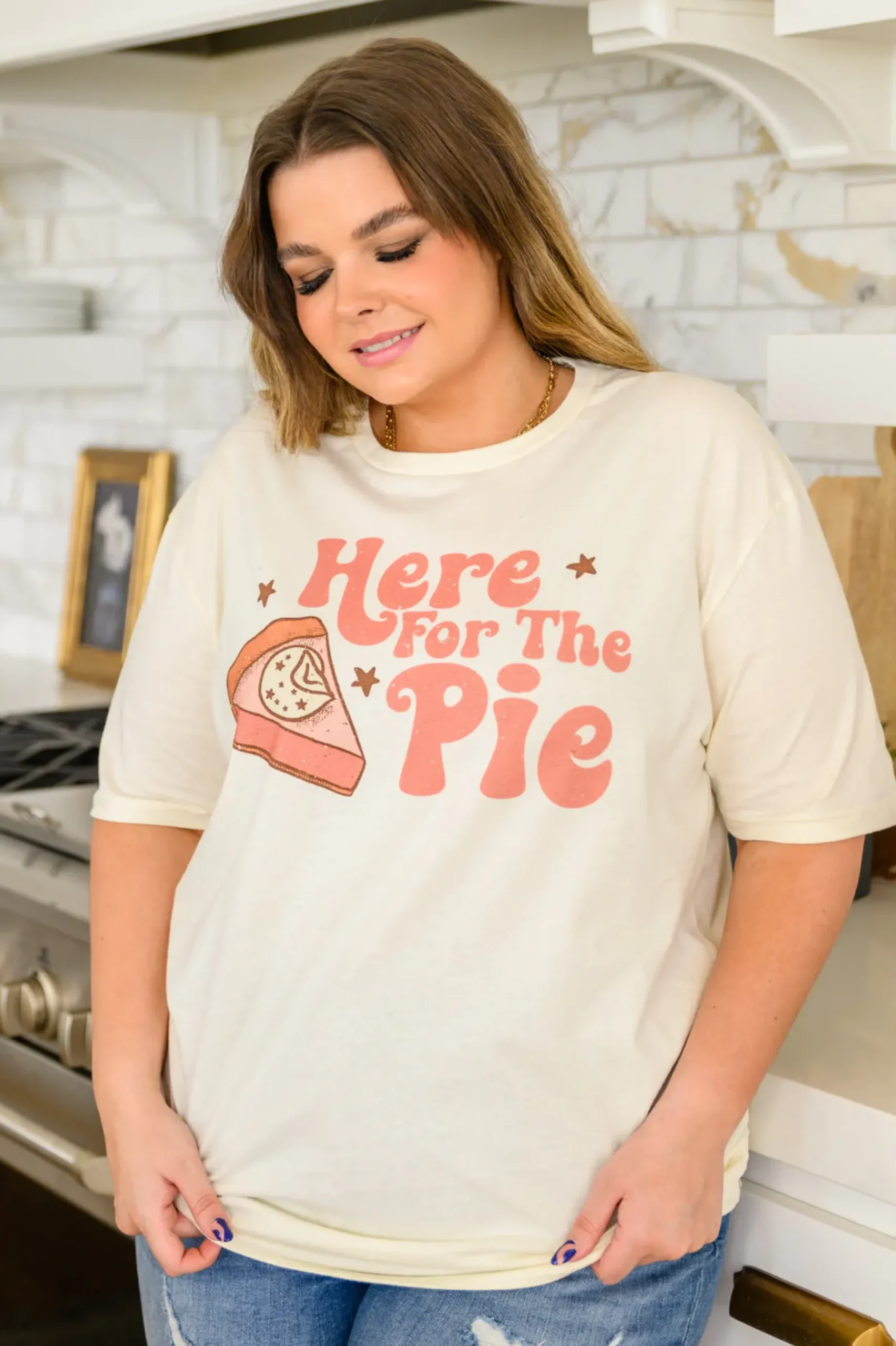 Let the Here for the Pie Graphic T-Shirt in Cream do all the talking this season! This adorable tee features a lightweight, stretchy fabric that shapes a round neckline, short sleeves and boxy fit bodice. The cutest “Here for The Pie” graphic decorates the front, creating the perfect tee for the get together!
