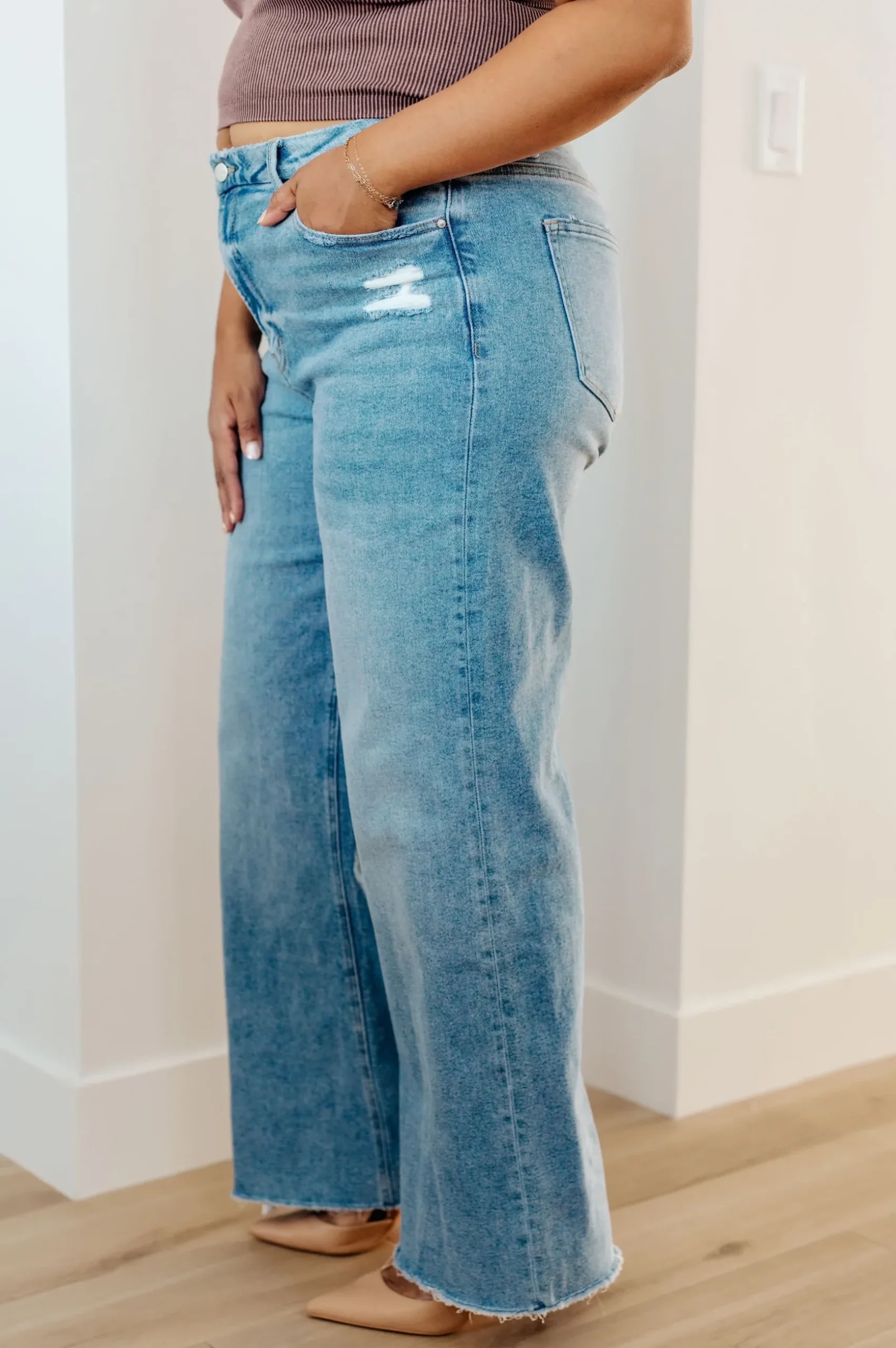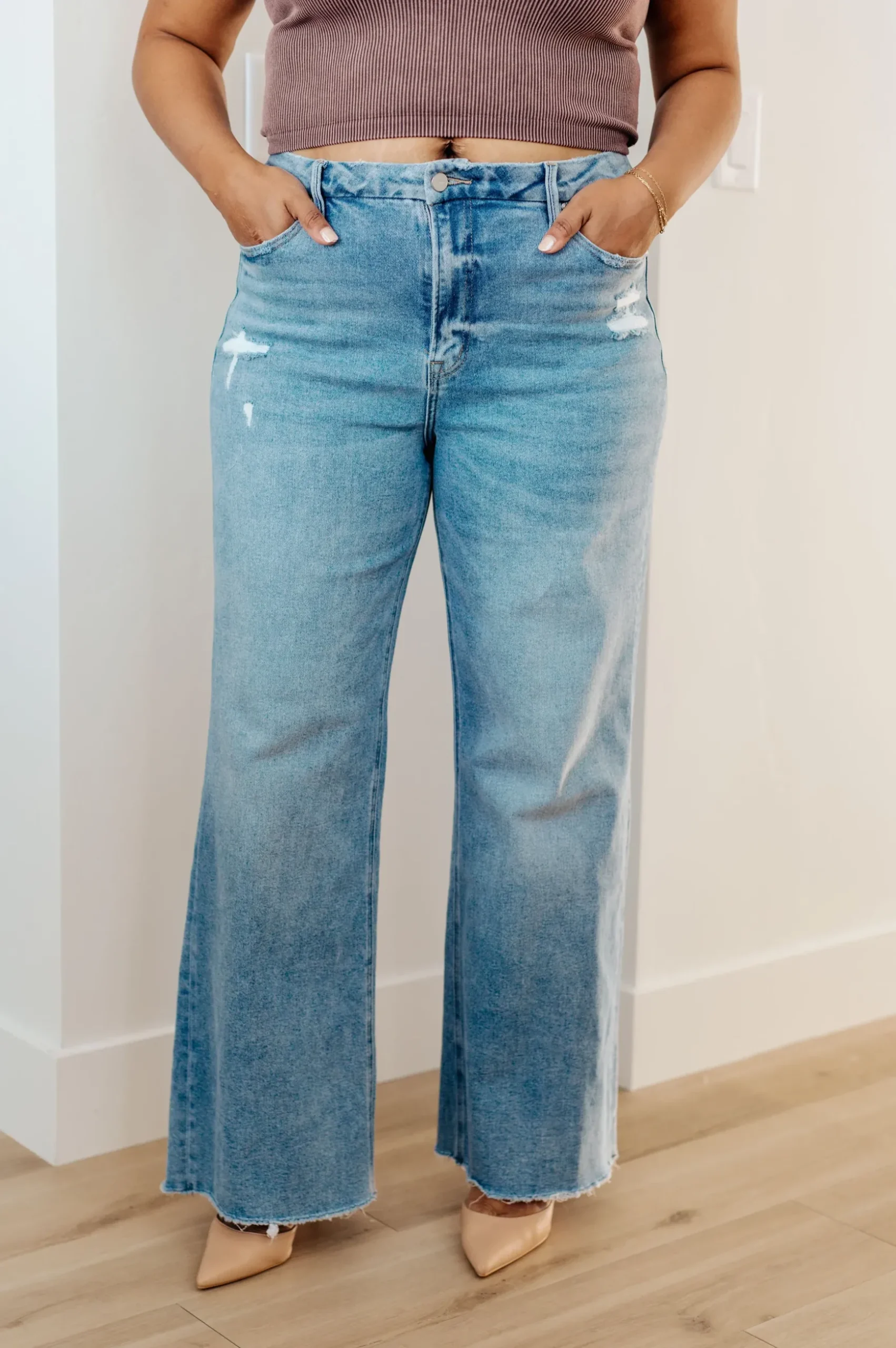 Say hello to your new favorite jeans: Hope High Rise Wide Leg Jeans. These jeans feature a high rise, zip fly and wide leg for an effortlessly stylish look, and the rigid denim and raw hem provide a timeless feel you will love.