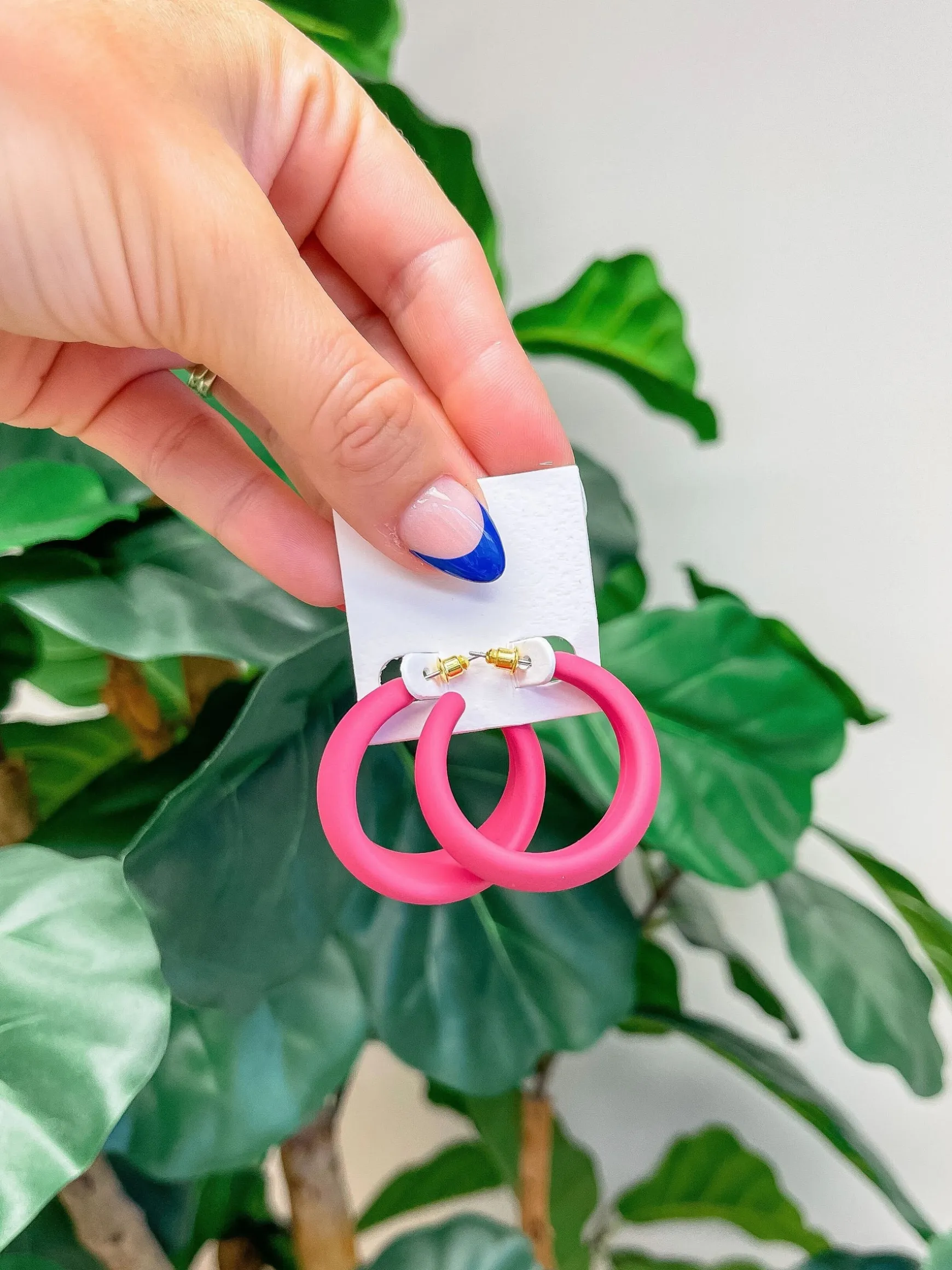 These Hot Pink Bubble Hoop Earrings are sure to add a pop of fun to any outfit. With their bright color and hoop design, they are perfect for making a statement.