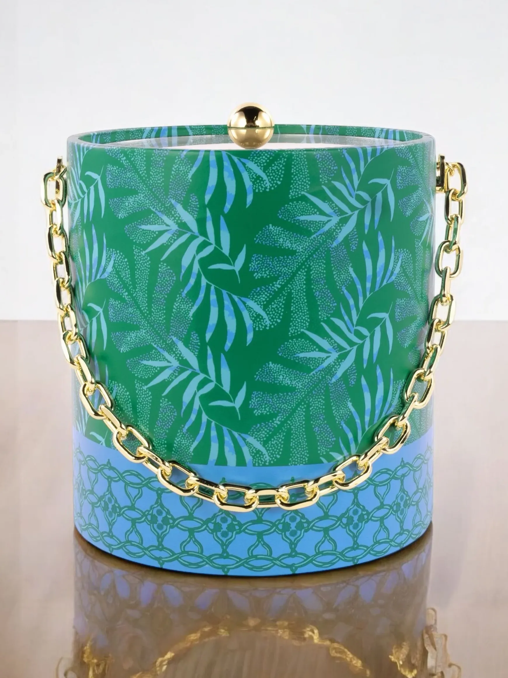 Offering both practicality and class, this insulated ice bucket with lid features Lilly’s It’s a Jungle Out There pattern and a gold chain handle. Effortlessly chic, this ice container is the perfect tabletop display for your next dinner party.
