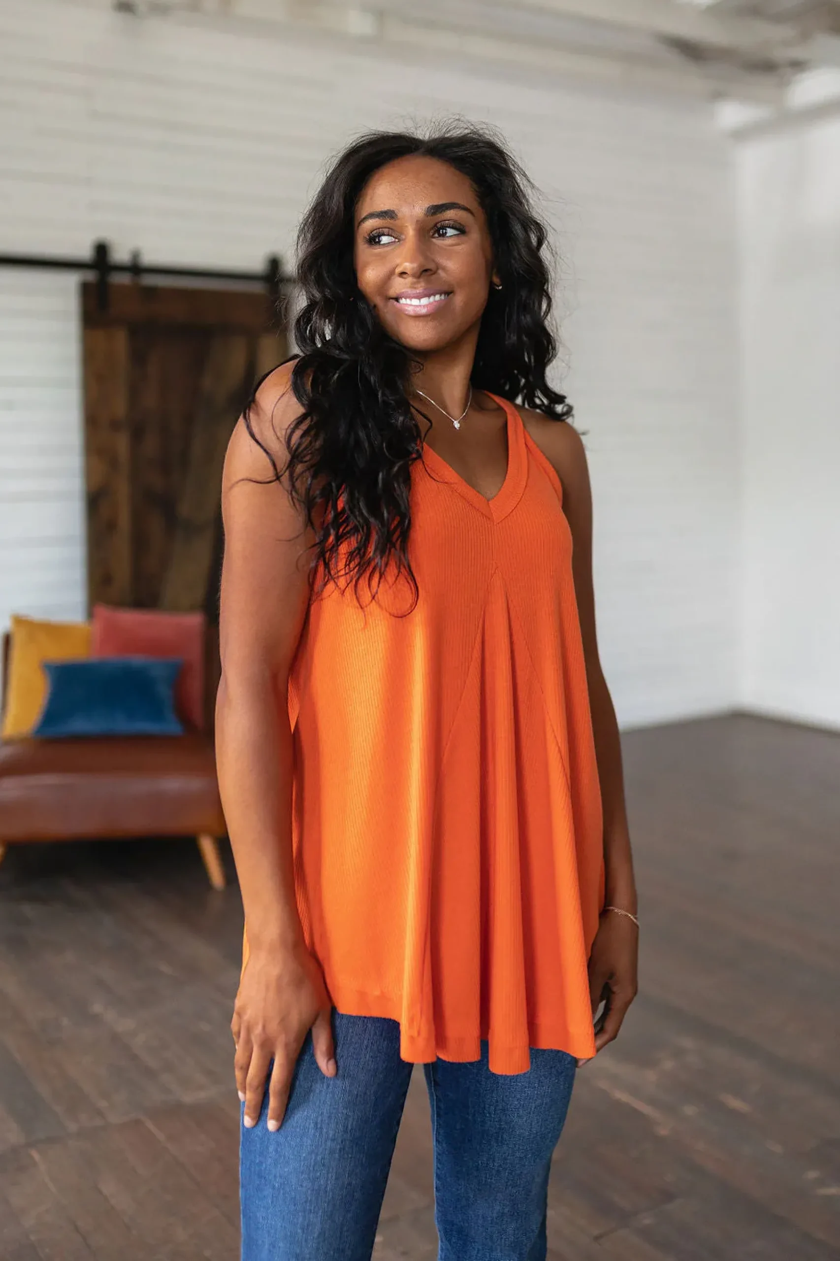 The In The Swing of Things Swing Tank is an ideal addition to your wardrobe. Its ribbed jersey fabric, halter neckline, and godet inset provide a comfortable and stylish fit while the swing silhouette flatters any body type. Enjoy effortless sophistication with this timeless piece.