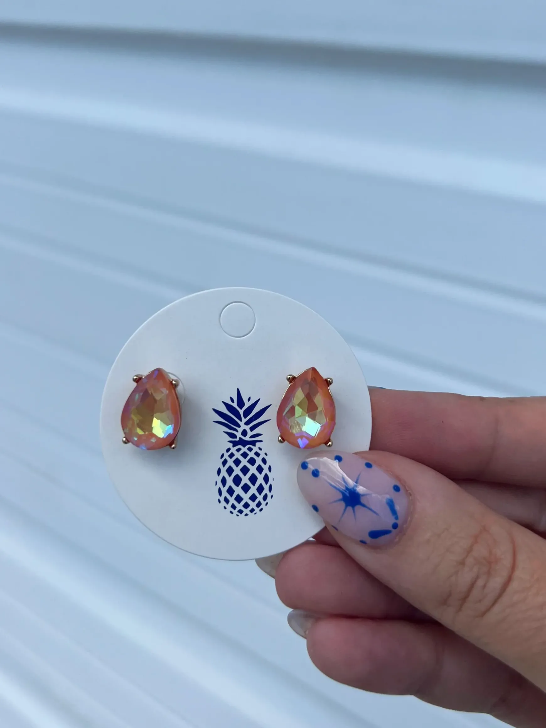 Iridescent Teardrop Glass Crystal Stud Earrings – Tangerine