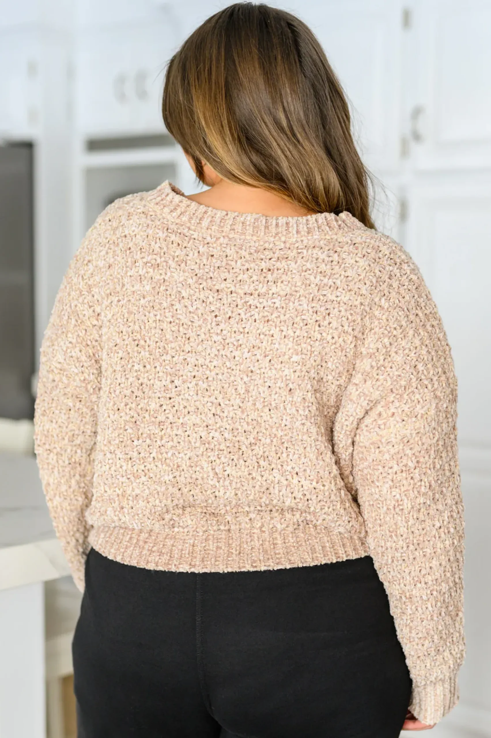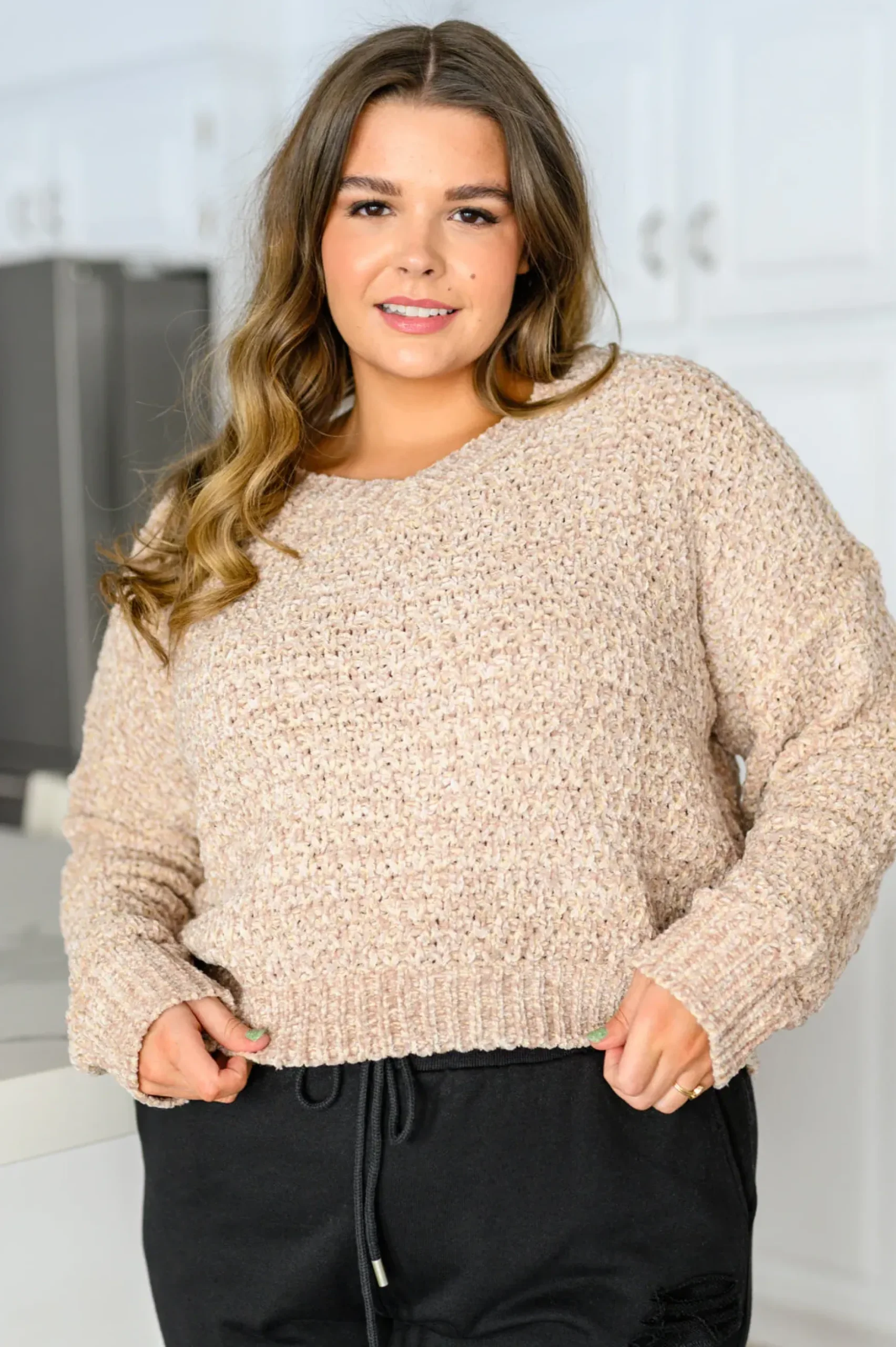 Your daily trip to the coffee shop just got better in the Irish Coffee Knitted Crop V Neck Sweater! Ultra-soft, chenille knit shapes this timeless sweater, featuring a v-neckline with drop shoulder long sleeves and a cropped, loose fit bodice. Ribbed detailing lines the cuffs, hem, and neckline.