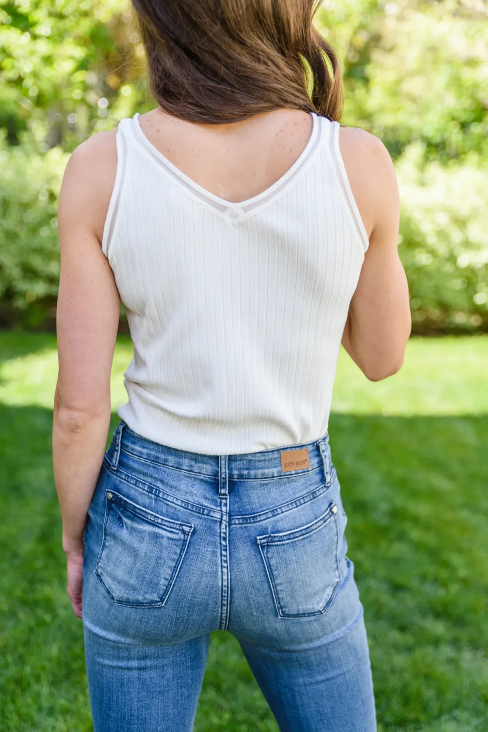 We know a perfect top when we see one and the I’ve Found Paris-dise Tank is the absolute perfect staple your closet is missing! A stretchy, ribbed knit fabric shapes a v-neckline with mesh trim, and slim fit silhouette. This top will have endless styling options and be on repeat all year round!