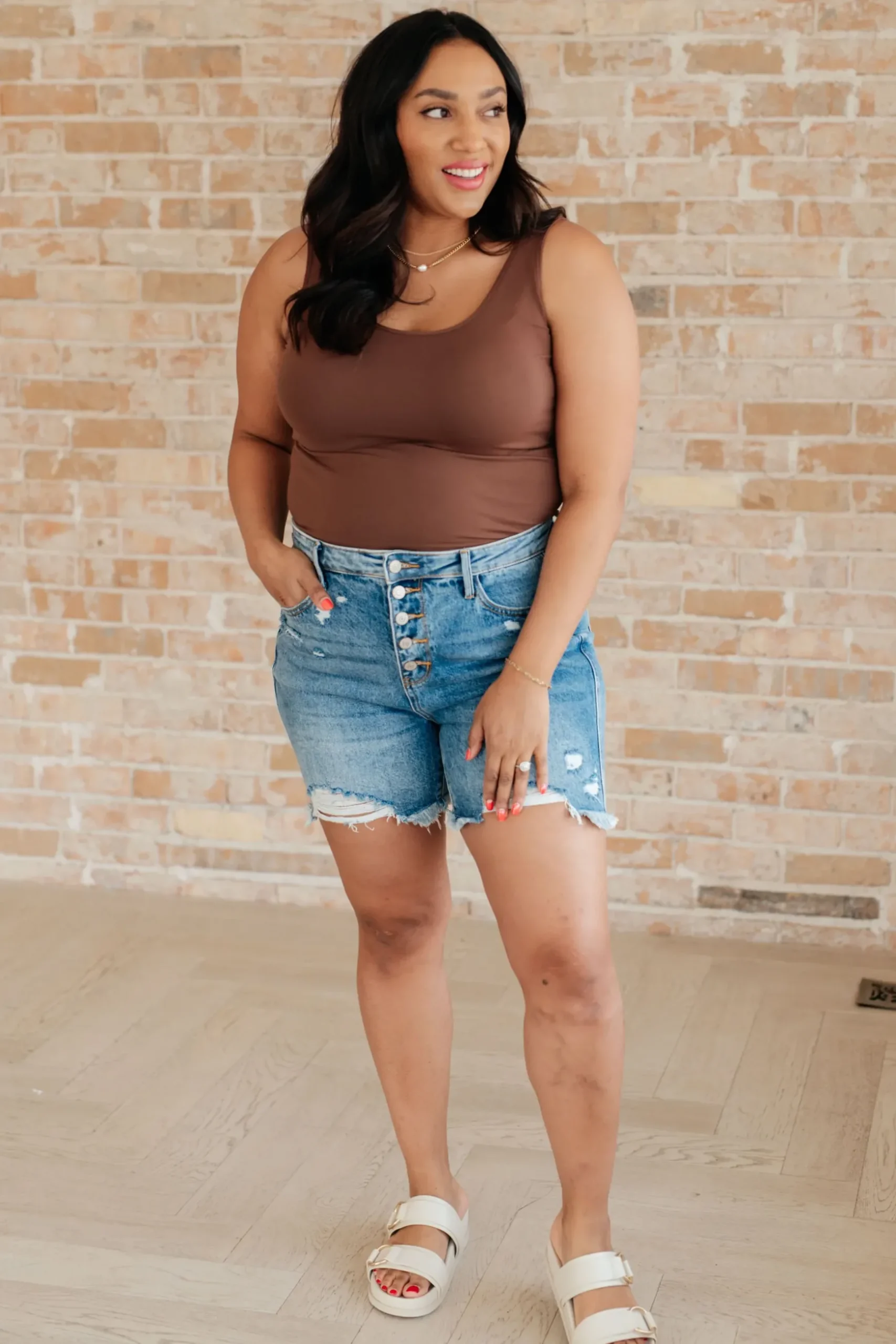 Introducing Kara High Rise Rigid Magic Button Fly Cutoff Shorts – your new go-to for comfort and style! The high rise and button fly add a vintage touch, while the magic rigid fabric combination provides a flawless fit. The raw hem gives off a cool, edgy vibe. Say hello to your new favorite shorts.