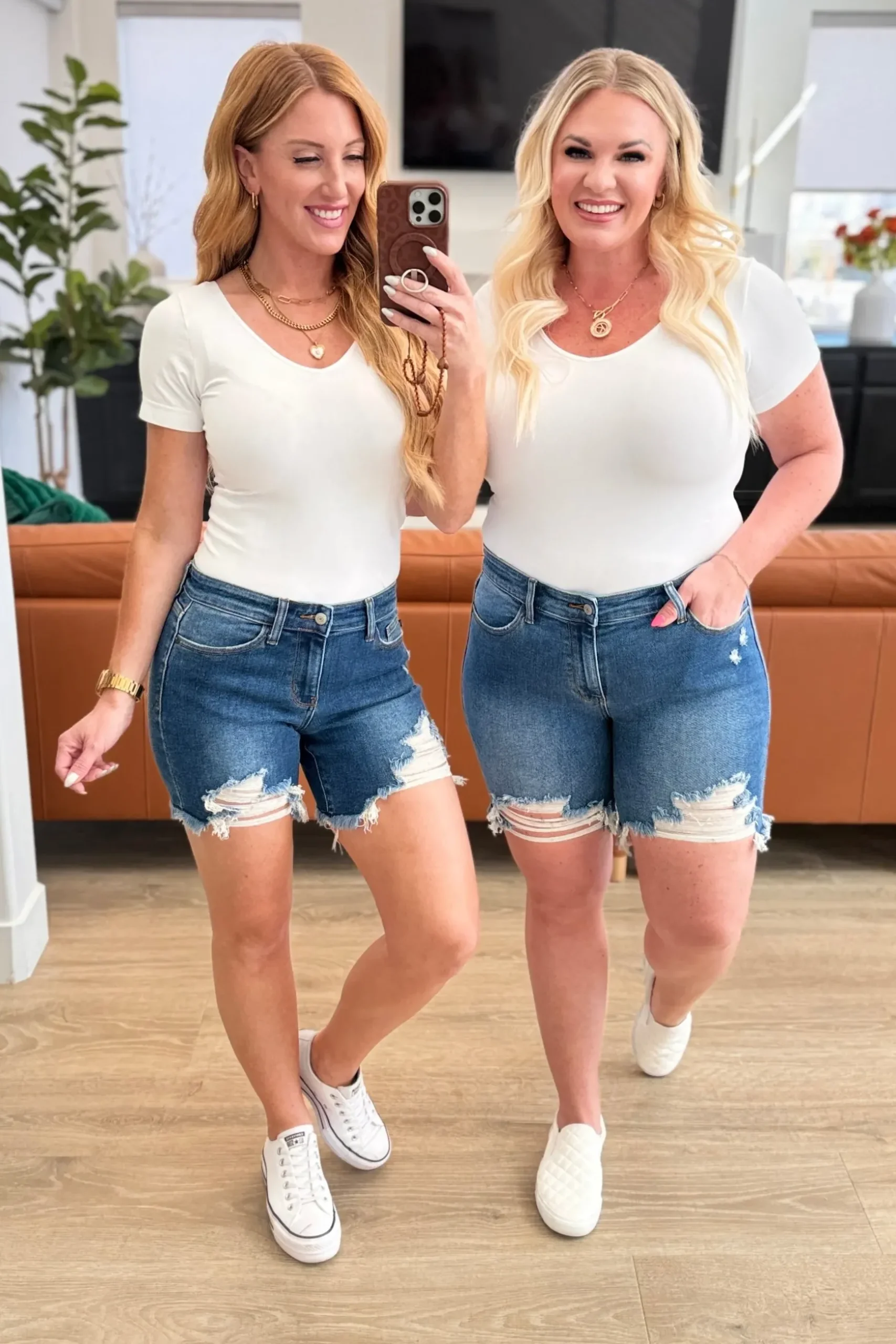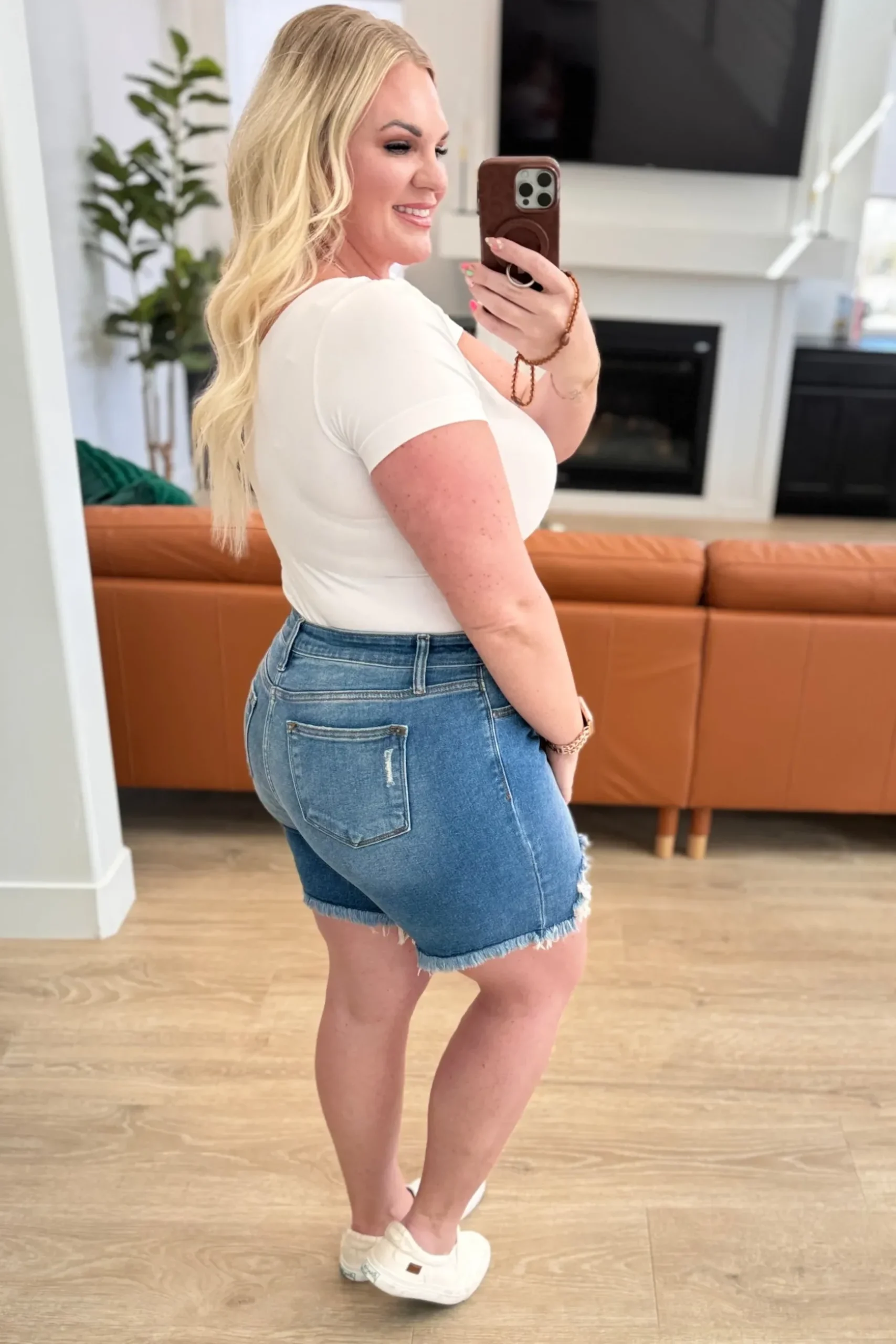 Get ready to rock the classic cutoff look with the Kelsey Mid Rise Distressed Cutoff Shorts from Judy Blue! These shorts feature a stylish mid rise fit and a heavily distressed design for a cool and edgy look. The raw cutoff hem adds a touch of uniqueness to these must-have shorts. Perfect for any casual summer outfit. Act fast, these shorts won’t last long (unlike their cutoff hem)!