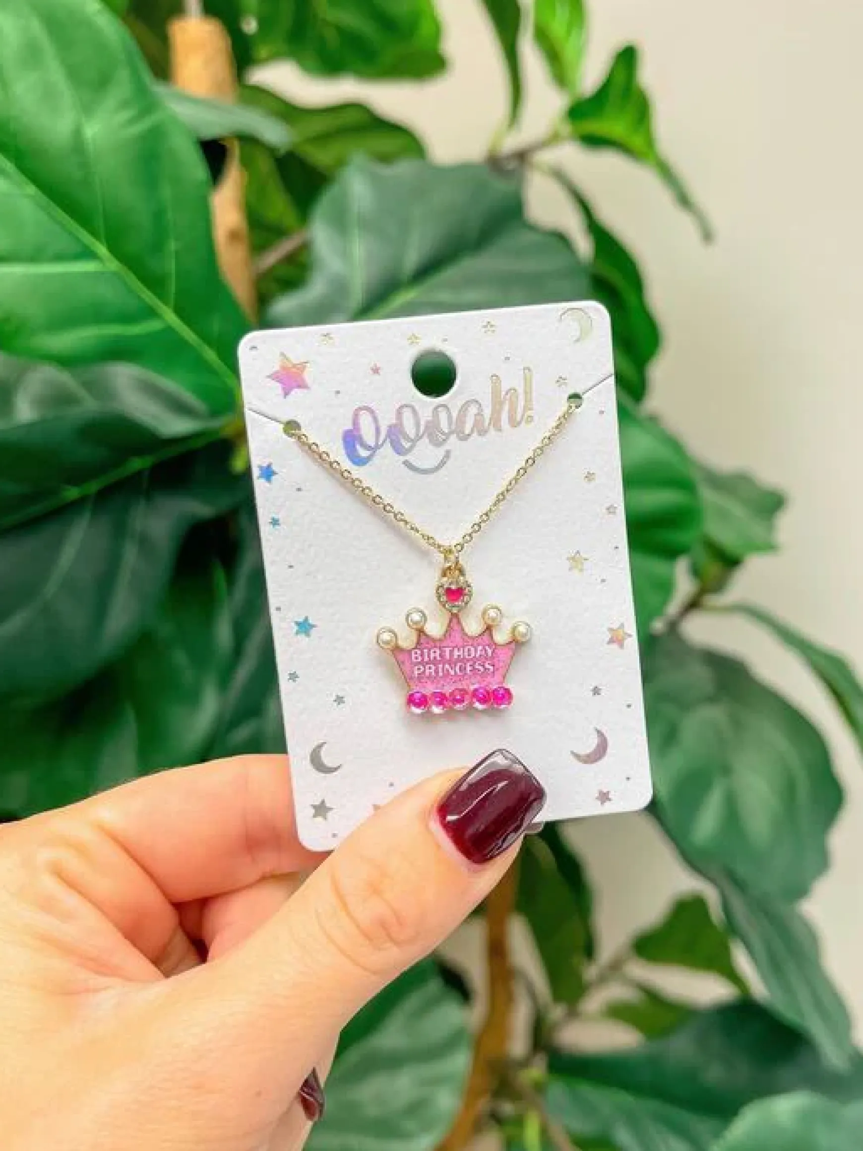 This Kids Birthday Crown Pendant Necklace is perfect for your child’s special day.