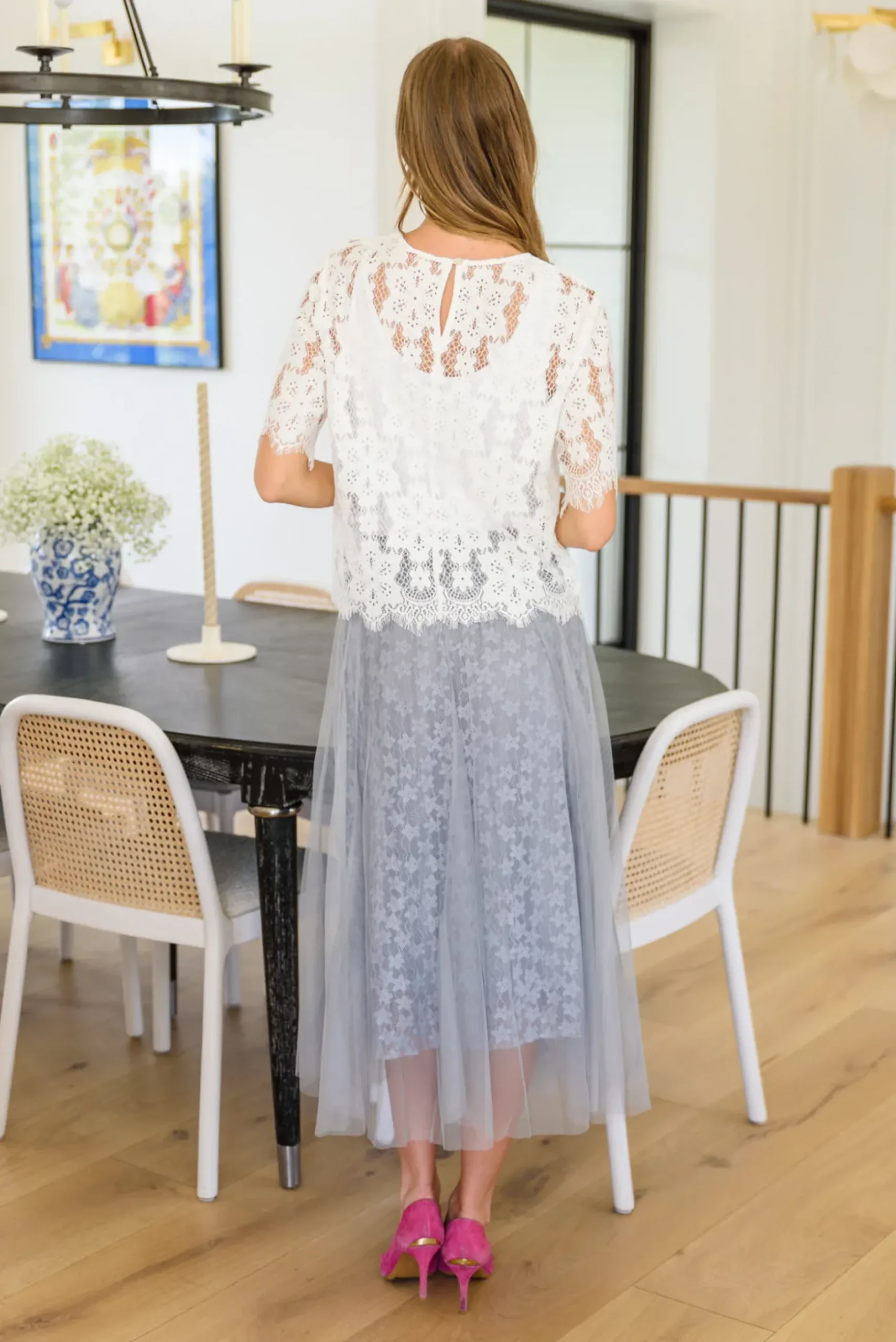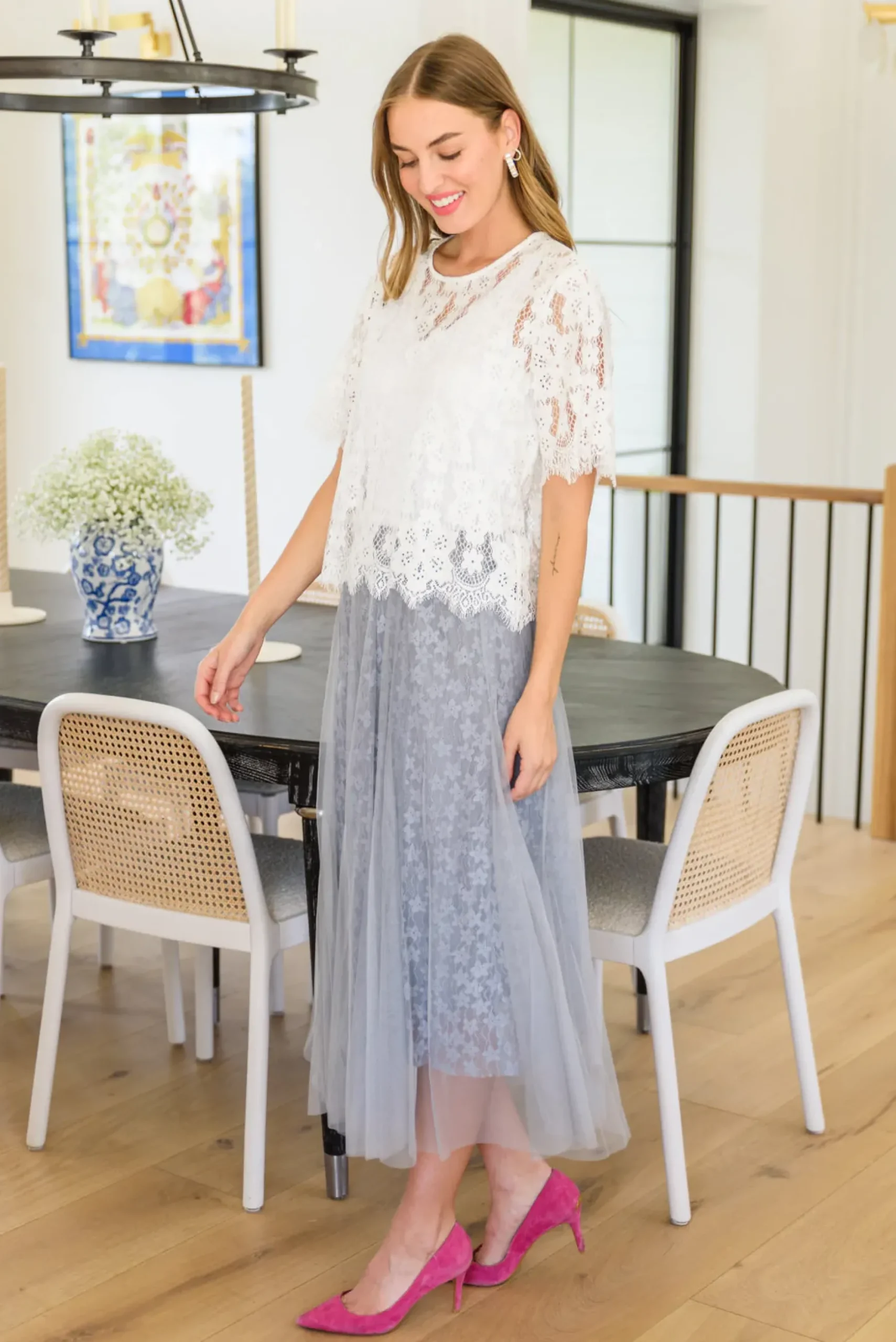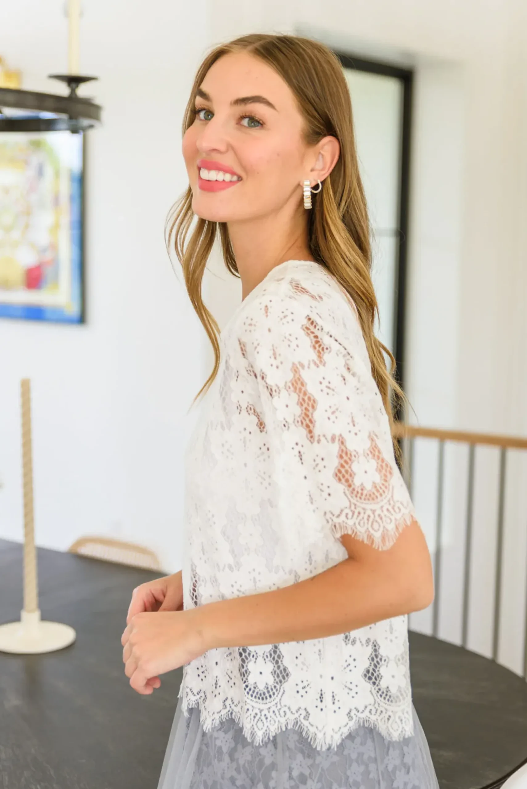 The Lace of My Heart Top is all you need to leave people speechless! Our eyes are mesmerized by the scalloped eyelash hem, slightly cropped boxy silhouette, and sheer floral lace that makes up the entire top. Pair with denim, dainty gold jewelry, and sandals for the perfect date night look!