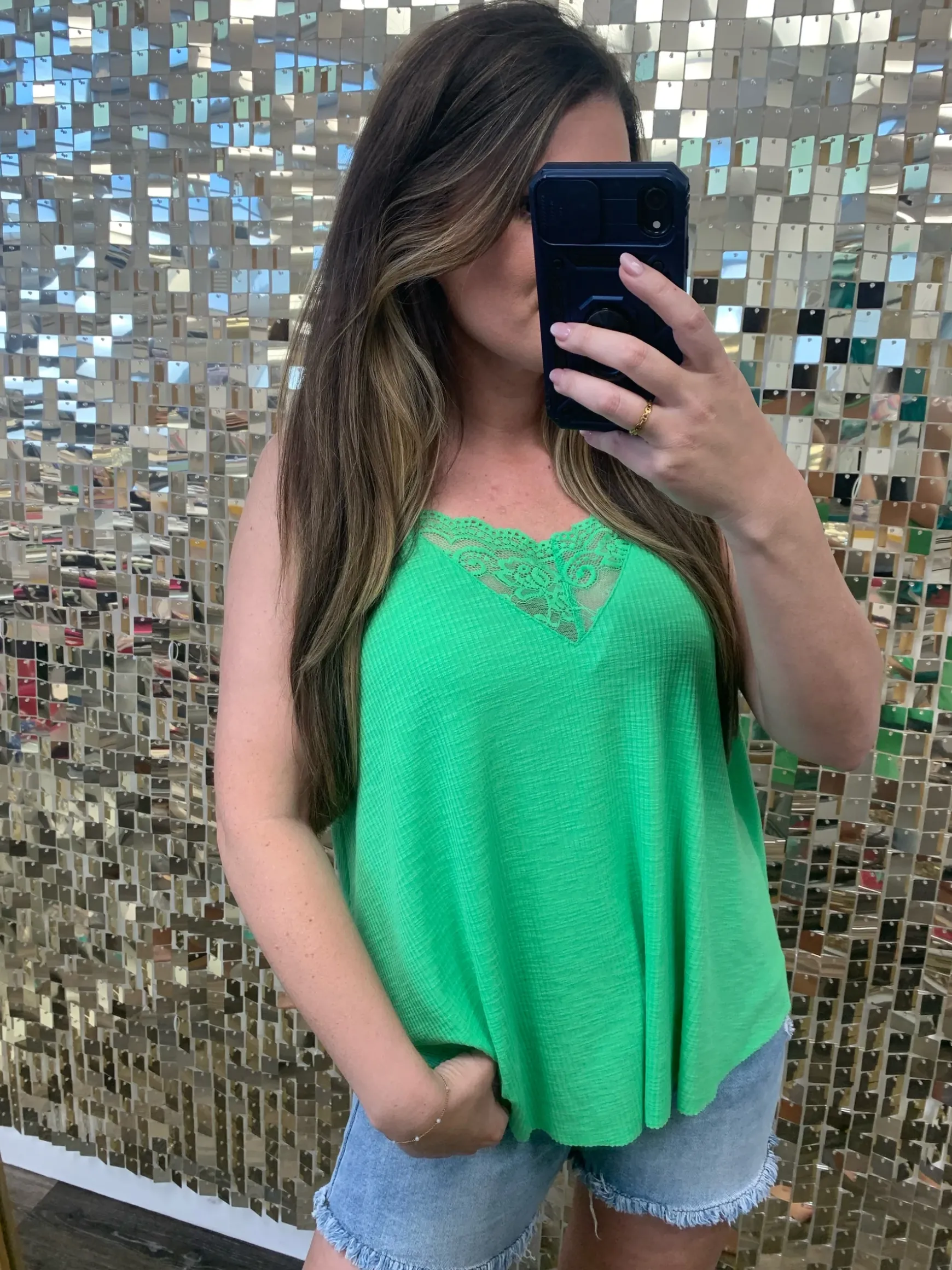Designed in sleeveless, regular fit top in rib with lace detail pointed solid pattern.