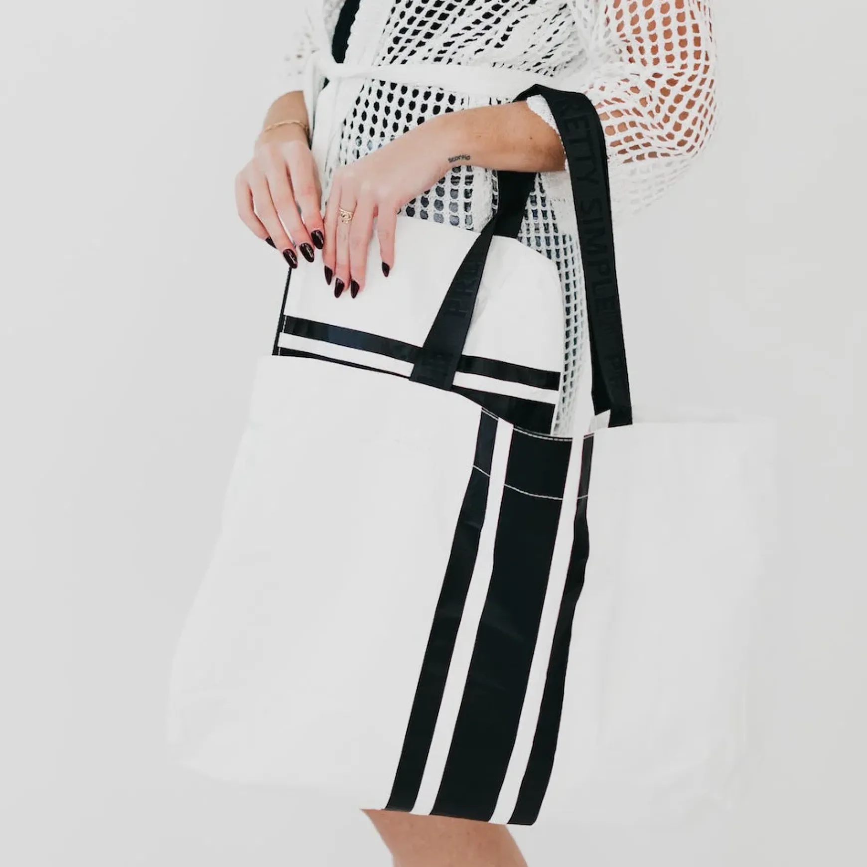 Simplify your beach trips with our Large Kona Cove Shoulder Tote Bag. Lightweight, stylish, and splash proof with “Pretty Simple” branding straps, this bag has exterior and interior zipper pockets, and the option to reverse it since it’s an open bag with no closure! Available in 3 styles, it’s the perfect bag for your summer adventures!