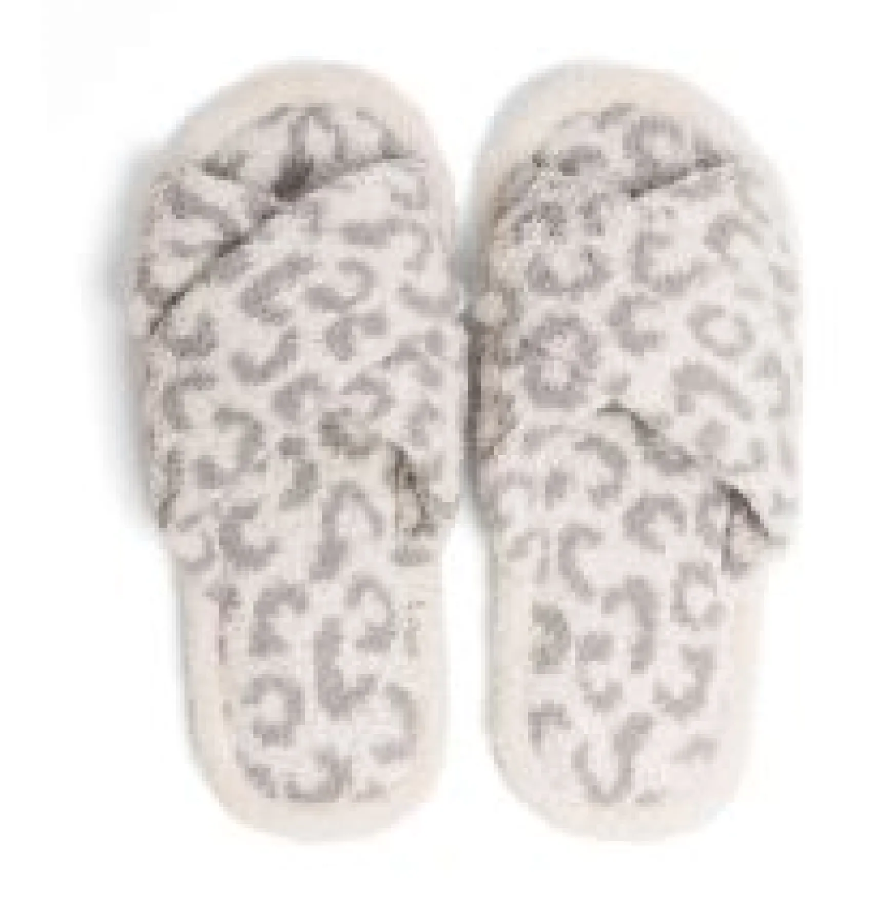 Leopard Criss Cross Fuzzy Slippers – Gray