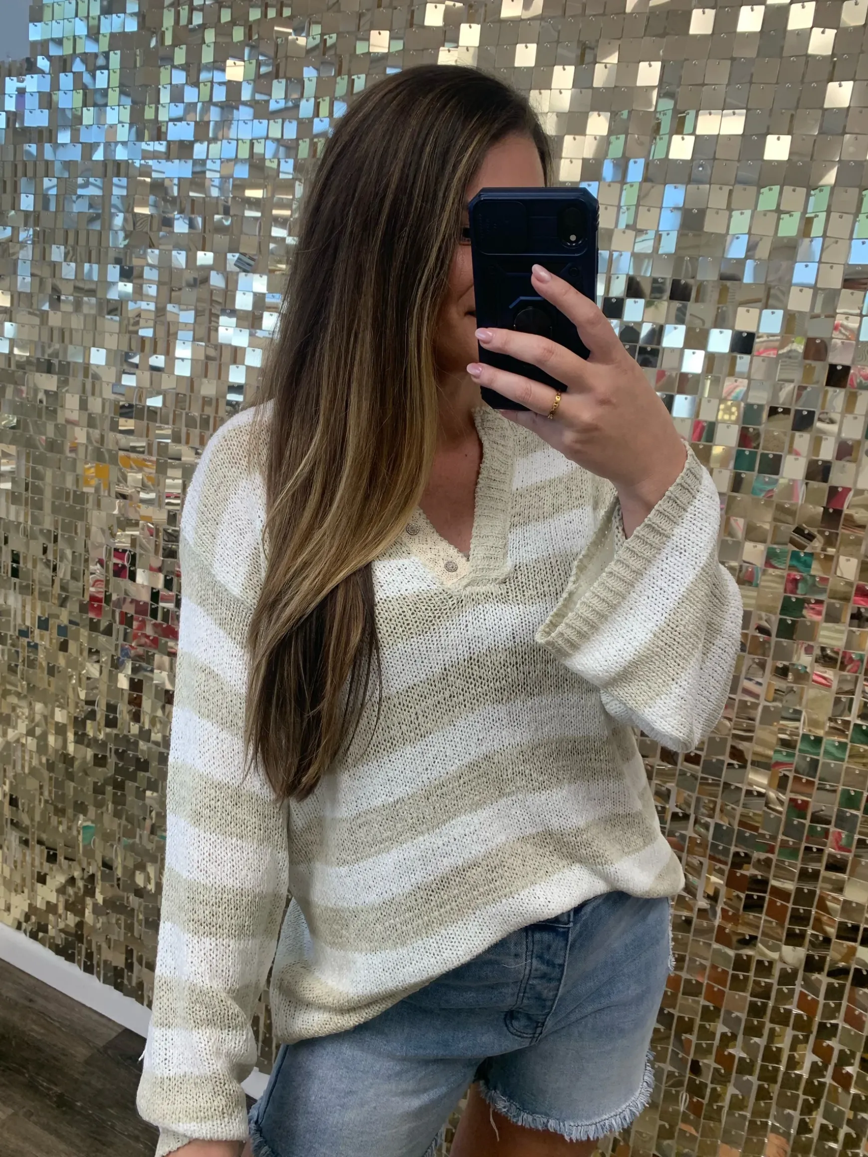 Designed in round neck, full sleeve, relaxed fit top in acrylic sweater with placket trim detail pointed striped pattern.