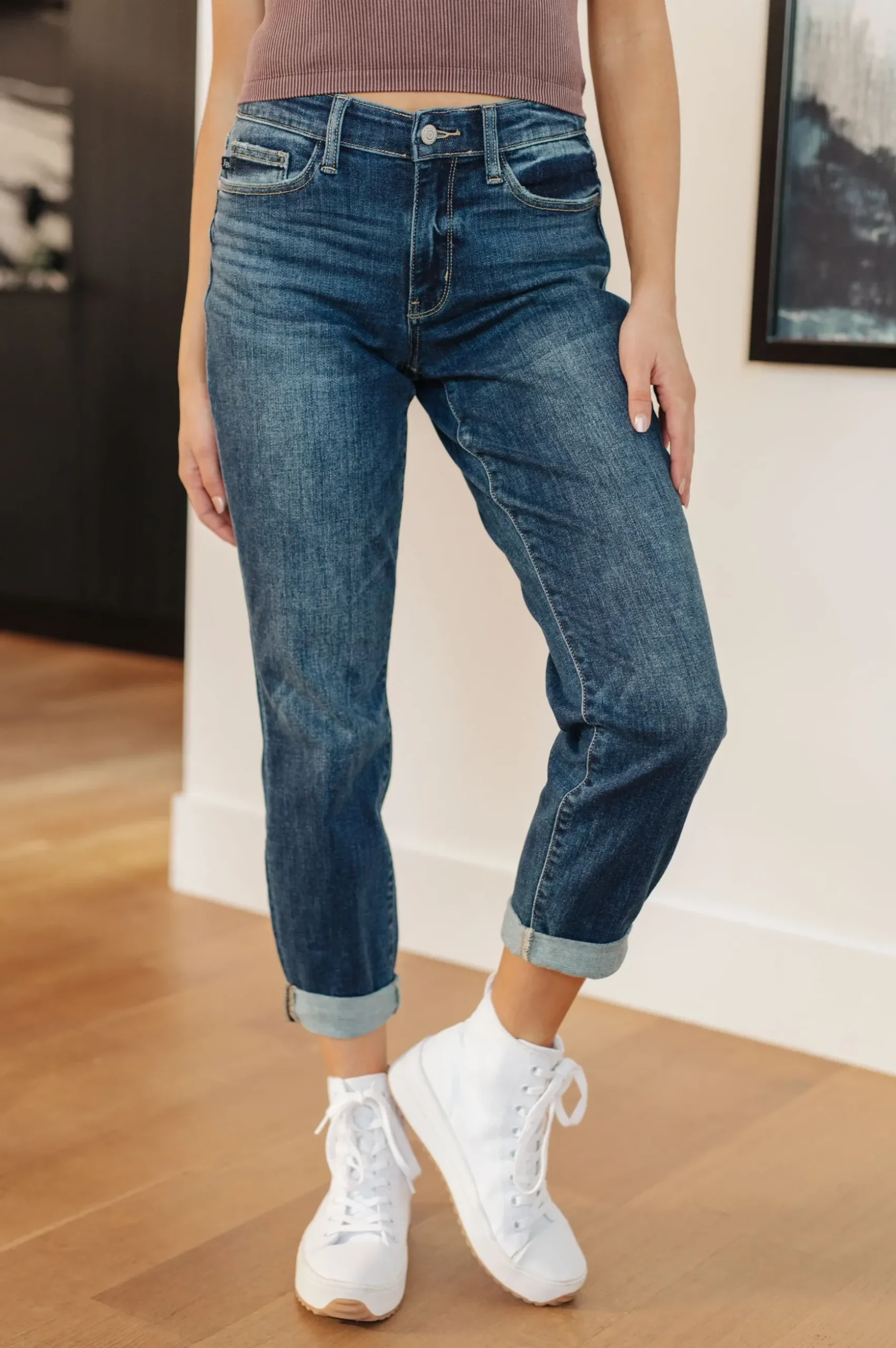 The London Boyfriend Jeans are your go to for any event life throws at ya! Made from a stretchy medium wash denim, it’s hard to go wrong. Featuring a mid-rise waist with a five pocket cut, zipper fly and a loose fit-slightly tapered leg that cuffs, these classic jeans are going to become a closet staple.
