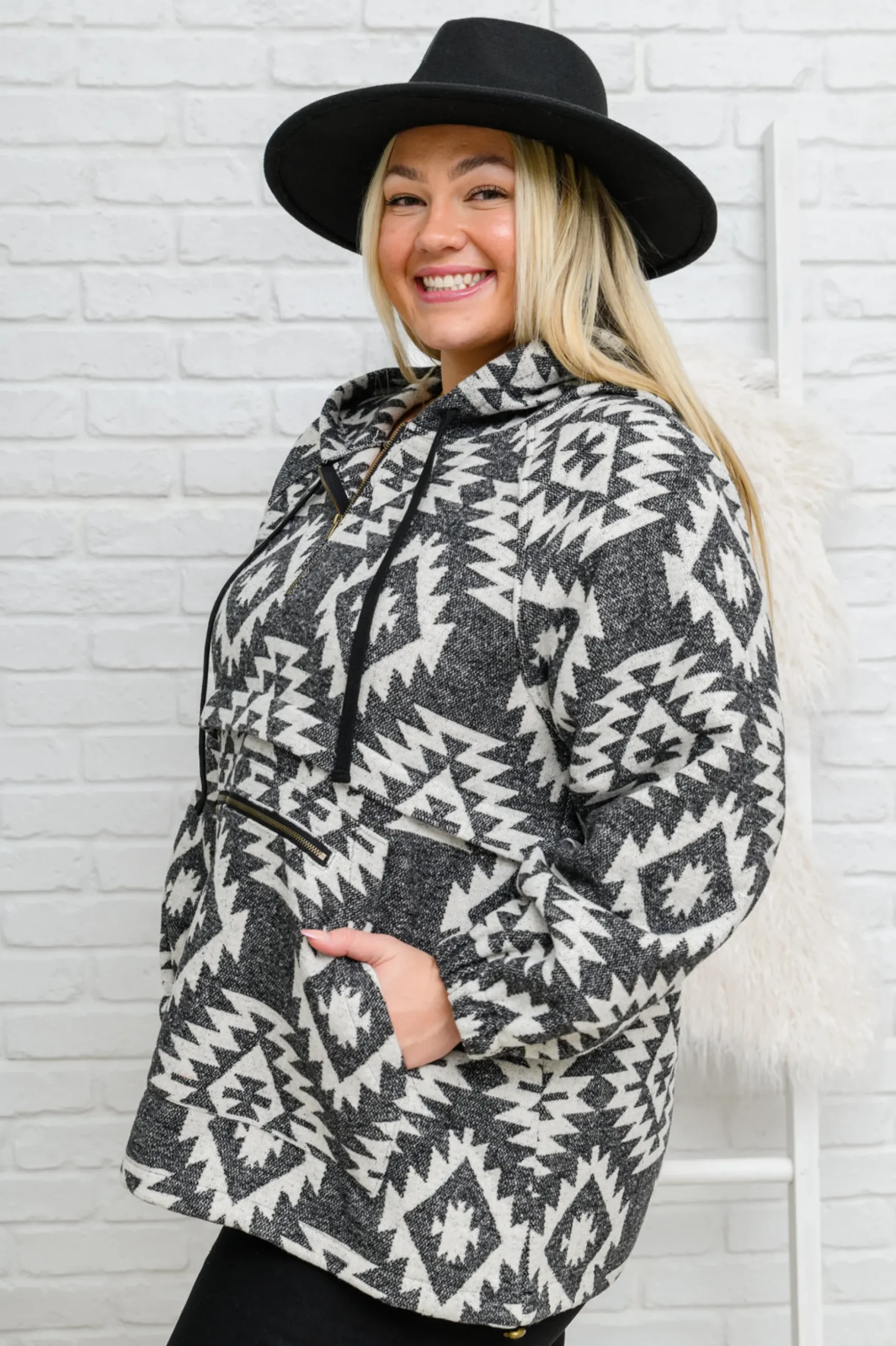 We are craving cozy days spent at the cabin in the Lounge Day Hoodie in Black & White! This ultra-warm piece features a hooded, three-quarter zip neckline with functional drawstring, falling into an oversized bodice with adjustable elastic cord at the hem. Long sleeves are finished with an elastic cuff while a functional kangaroo style pocket with added zipper pocket completes this perfect hoodie!