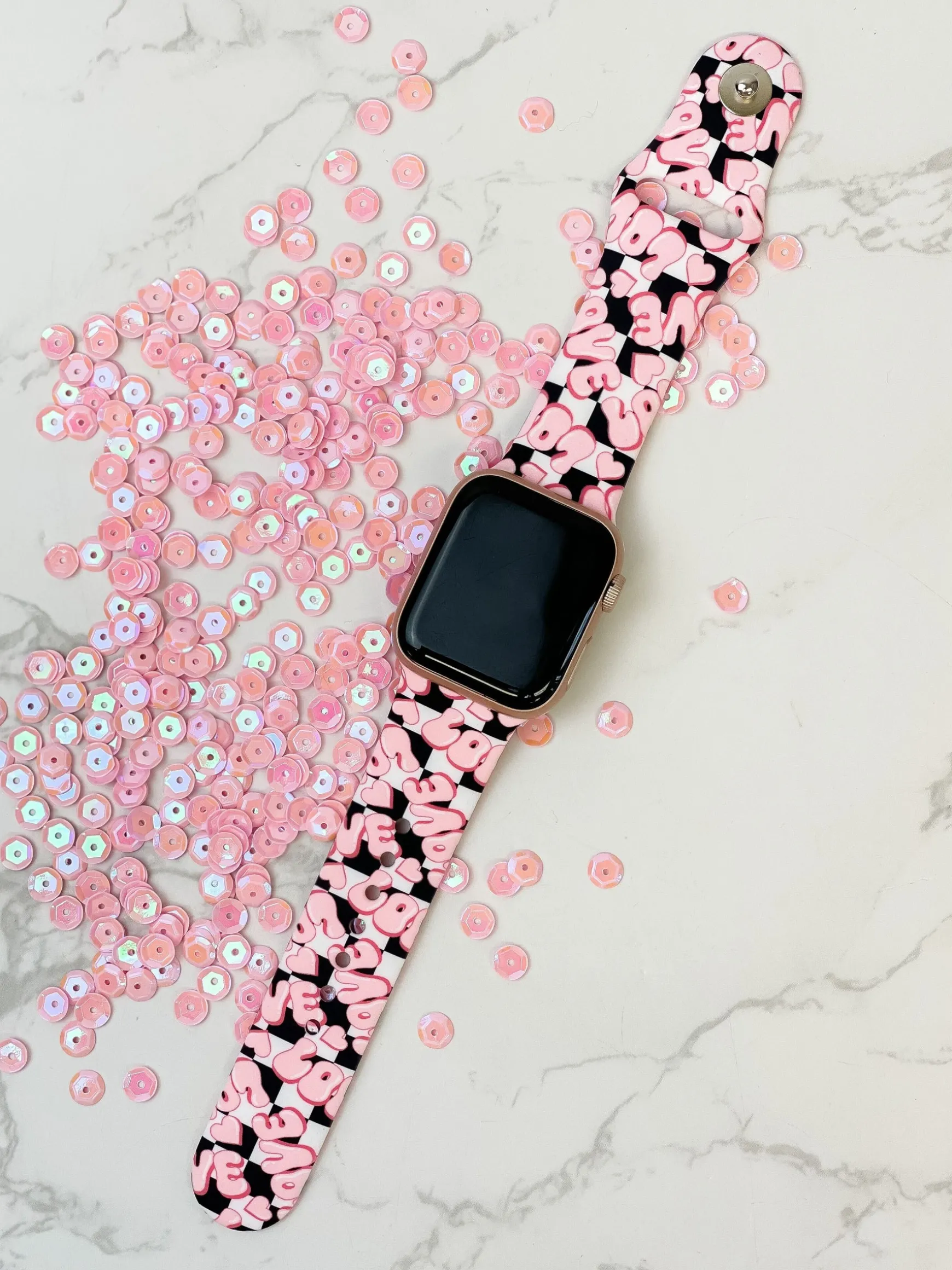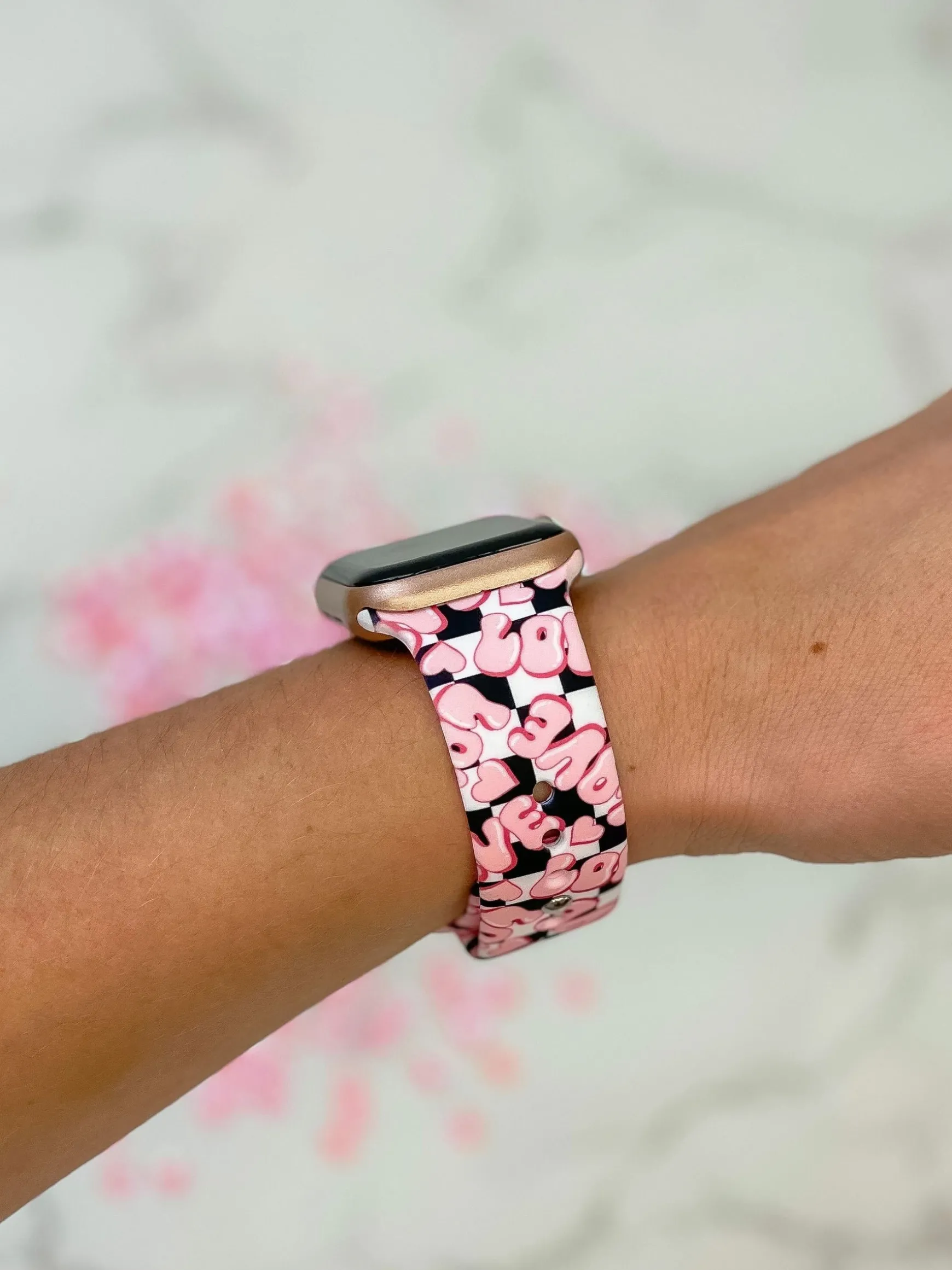 ‘LOVE’ Checkered Print Silicone Smart Watch Band