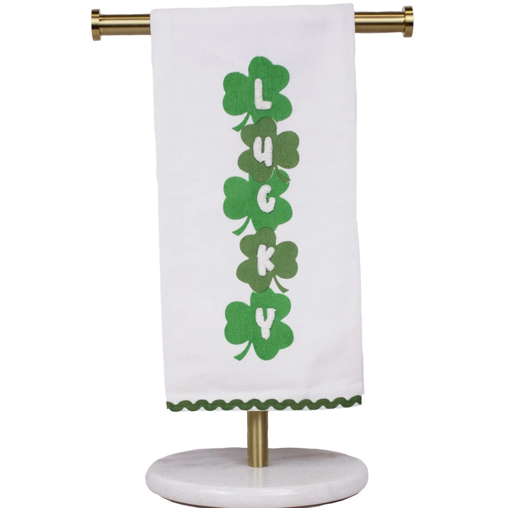 This Lucky Clover Hand Towel is the perfect addition to any bathroom or kitchen. Measuring 20×28, it features a white background with green clovers, bringing a touch of luck and style to your home.
