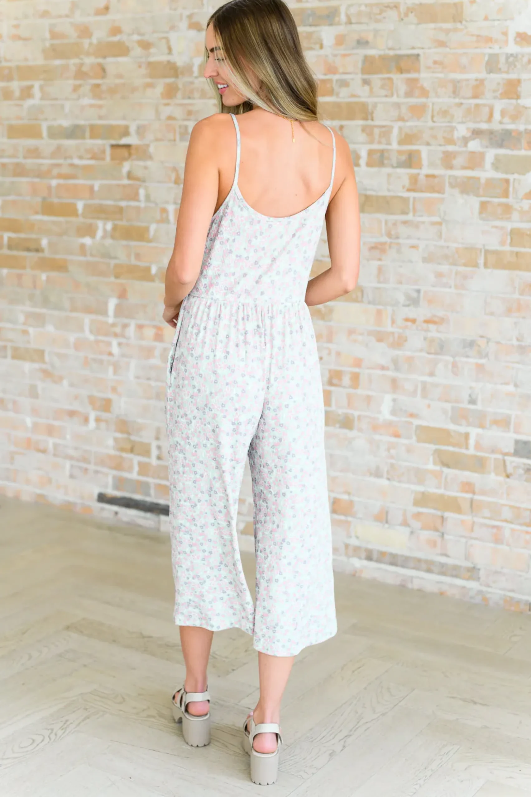 You’ll look amazing in our Lucky In Love Floral Jumpsuit! Crafted from stretchy ribbed fabric with faux buttons, it features pockets and a cropped length for a flattering fit. Perfect for your next special occasion! Get ready to look and feel your best.