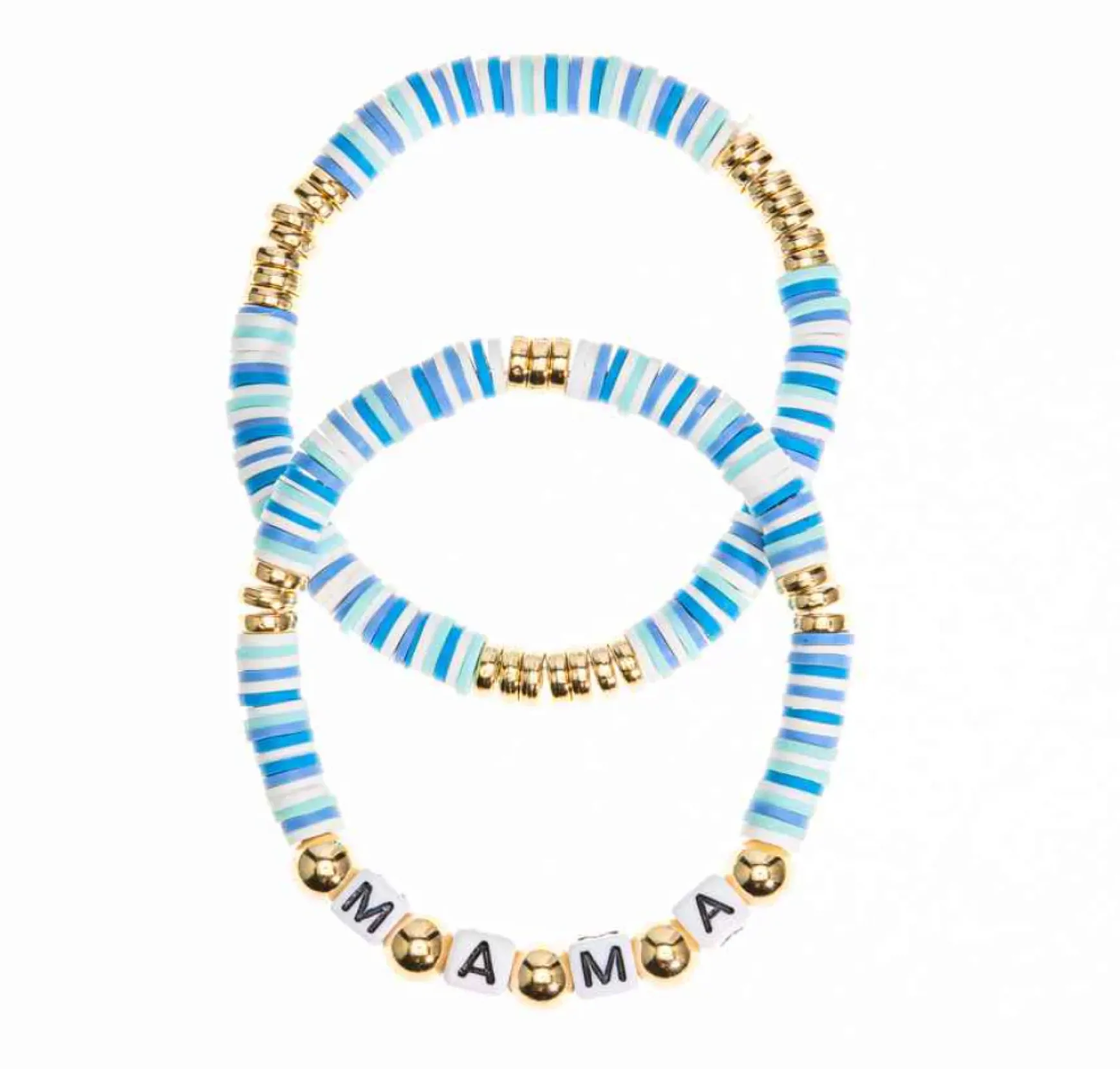 ‘Mama’ Stretch Bracelet Set – Blue & Gold