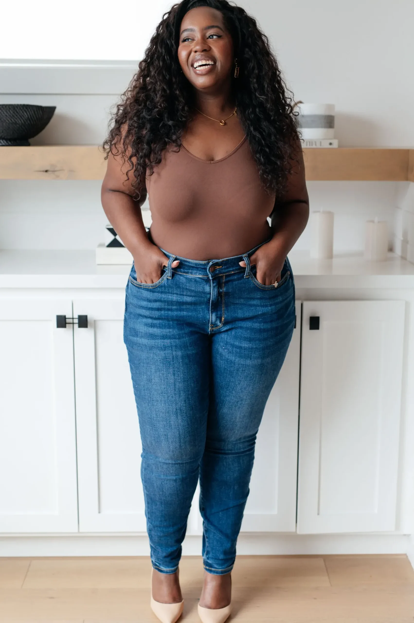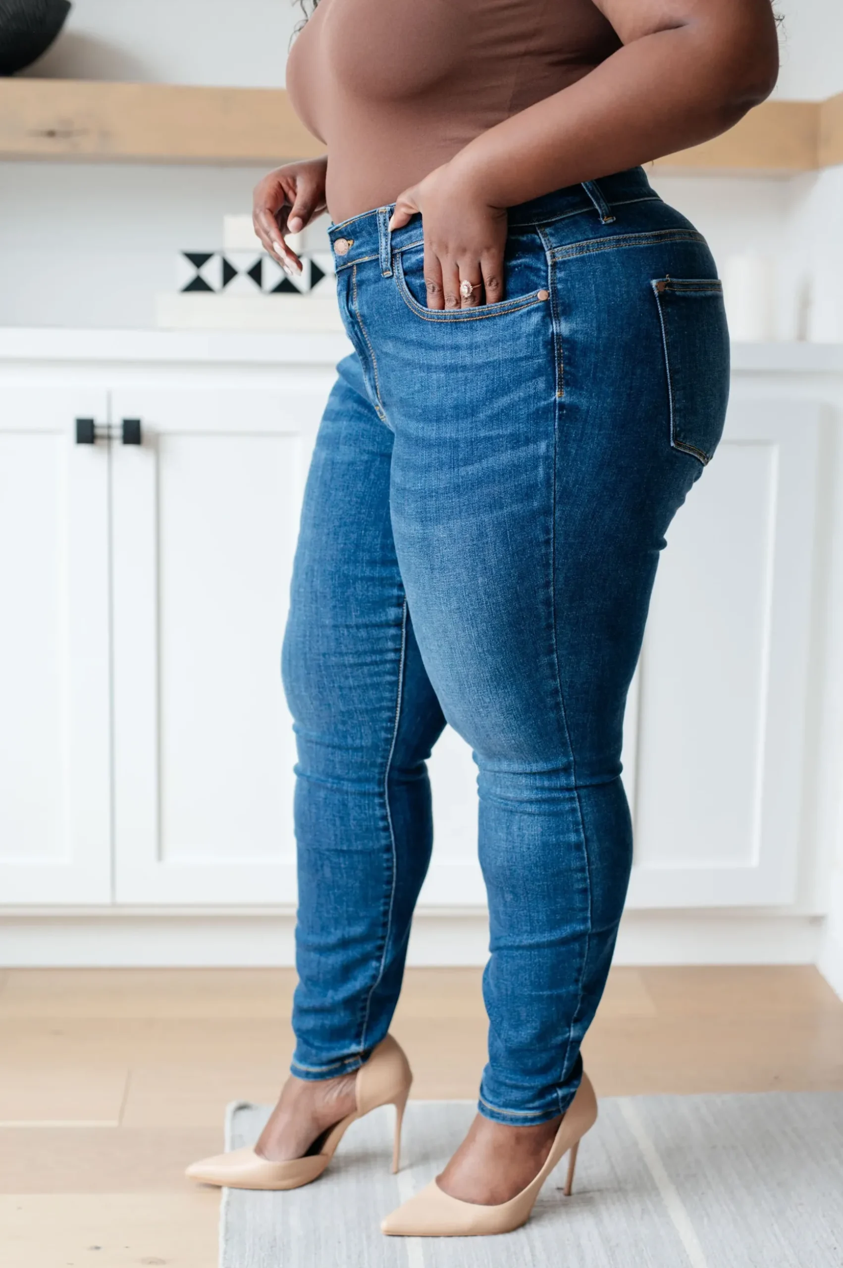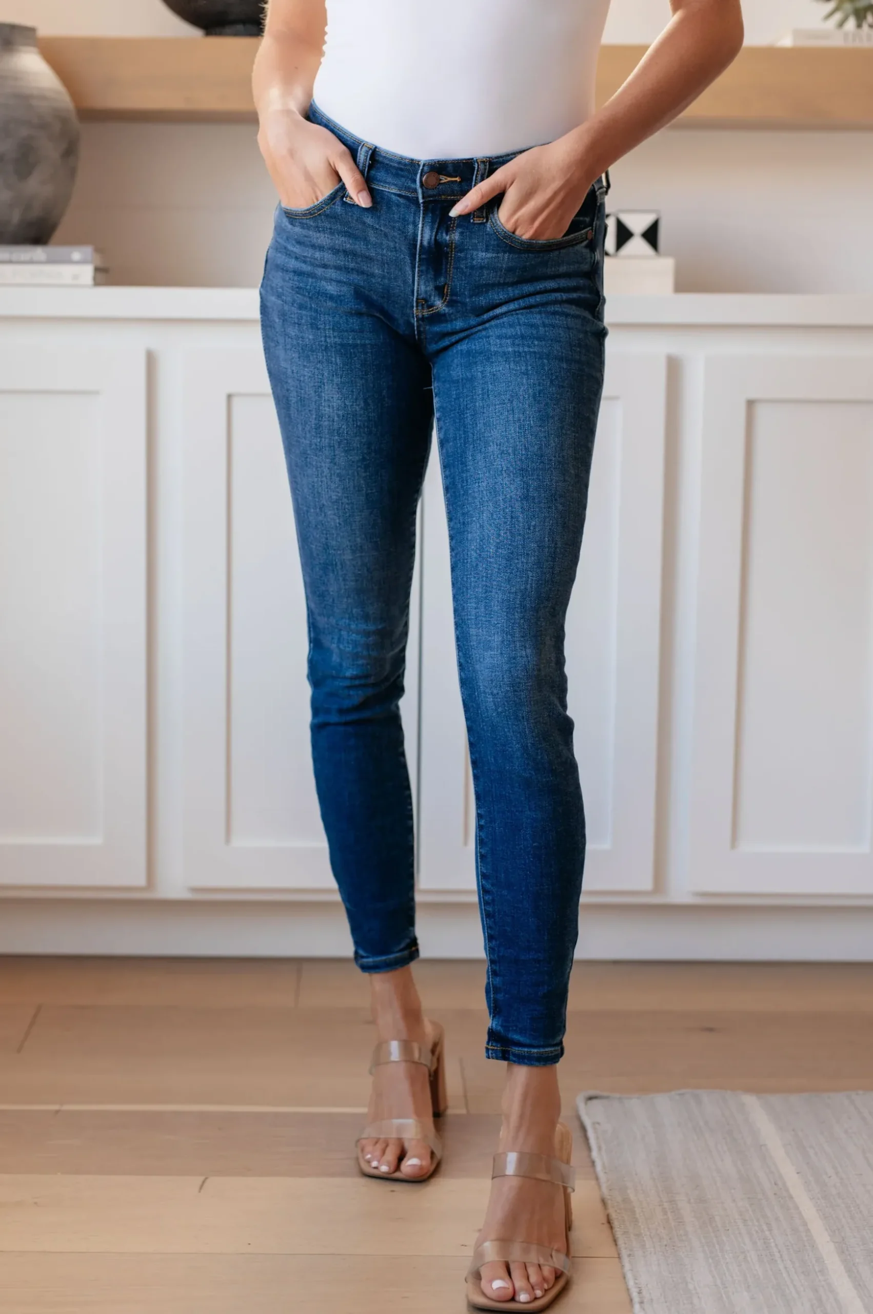 You’re bound to receive a compliment or two in the Maxine Mid-Rise Skinny Jeans! These perfect staple jeans feature a mid-rise waistline, classic five pocket cut, zipper fly, and stretchy dark wash denim. You’ll be wearing on these on repeat all year round!