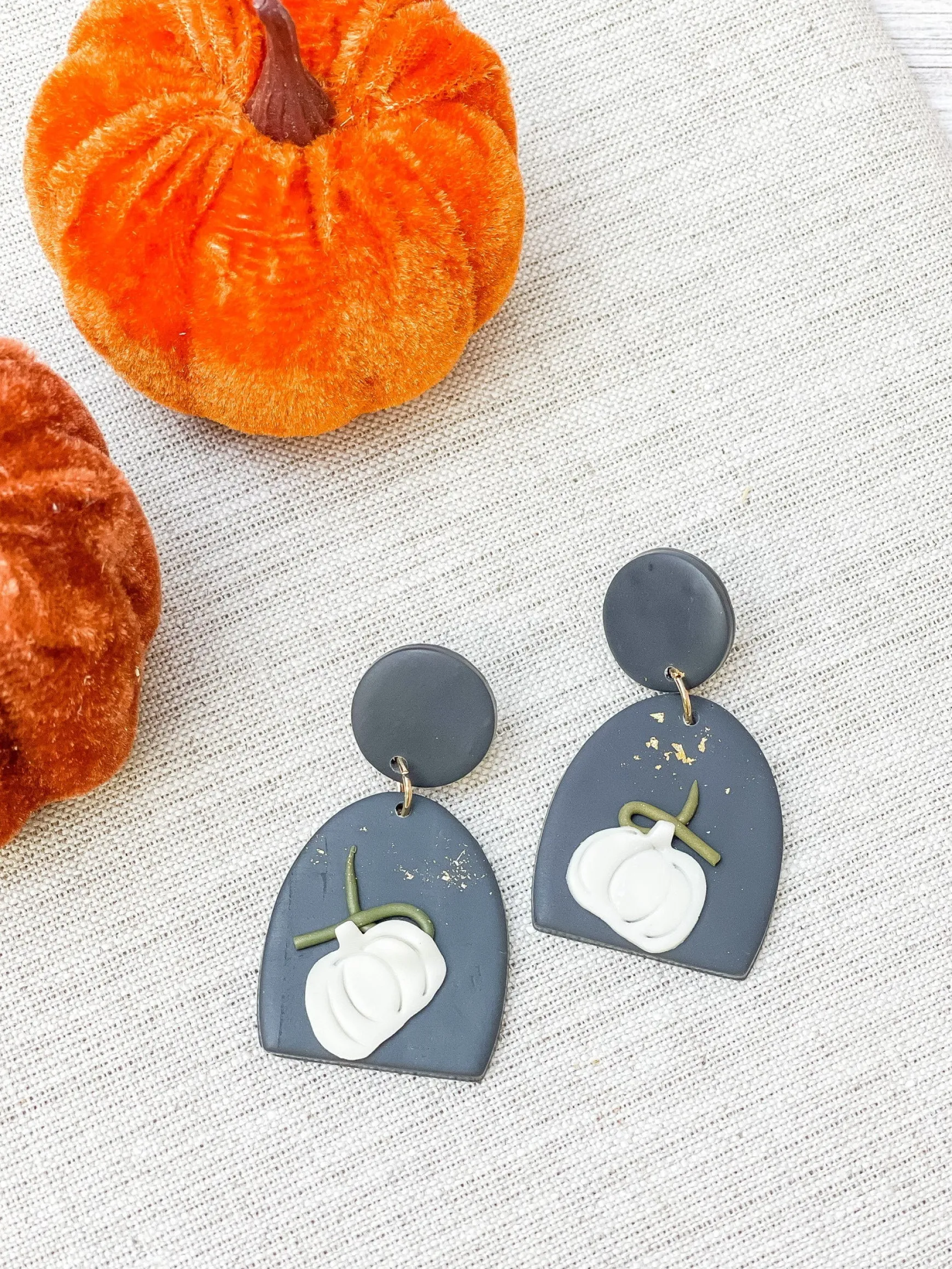Metallic Pumpkin Clay Dangle Earrings – Gray