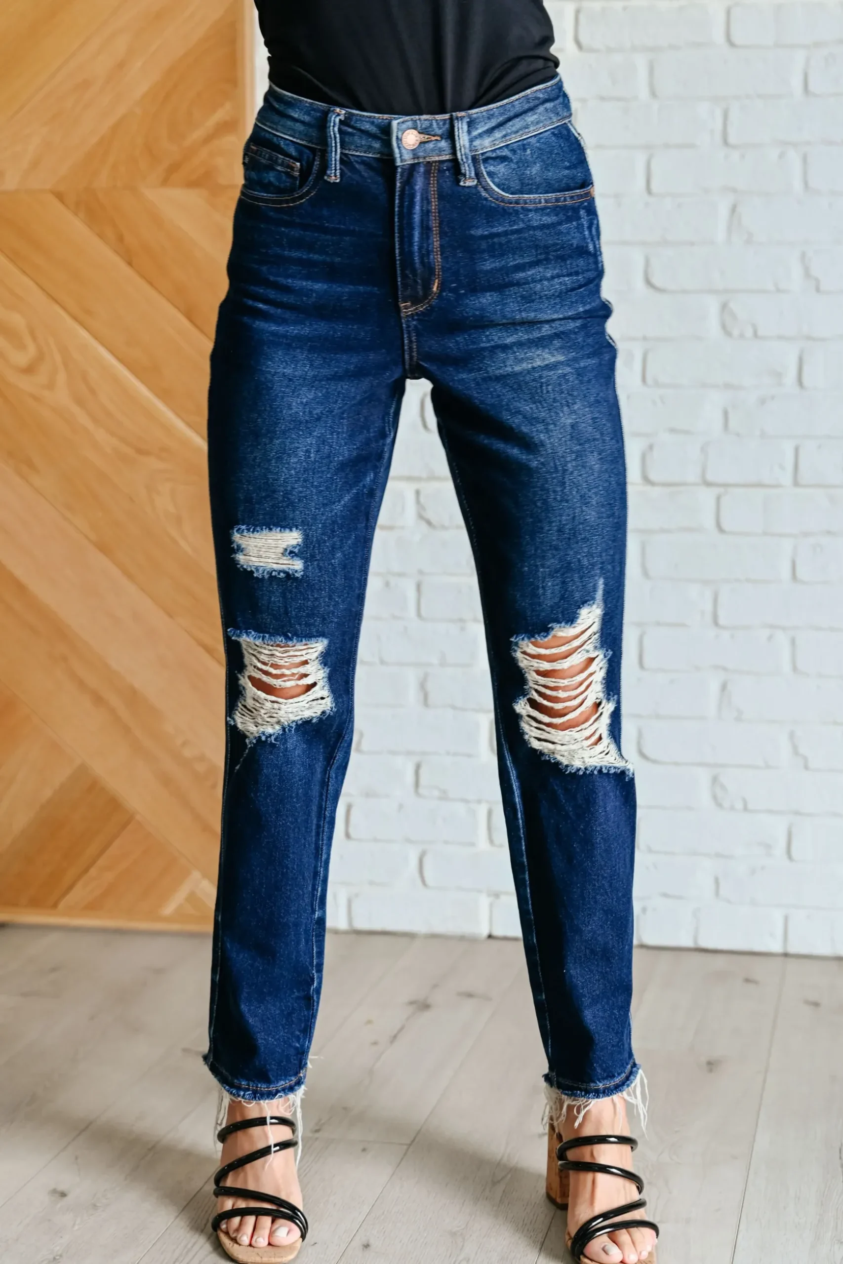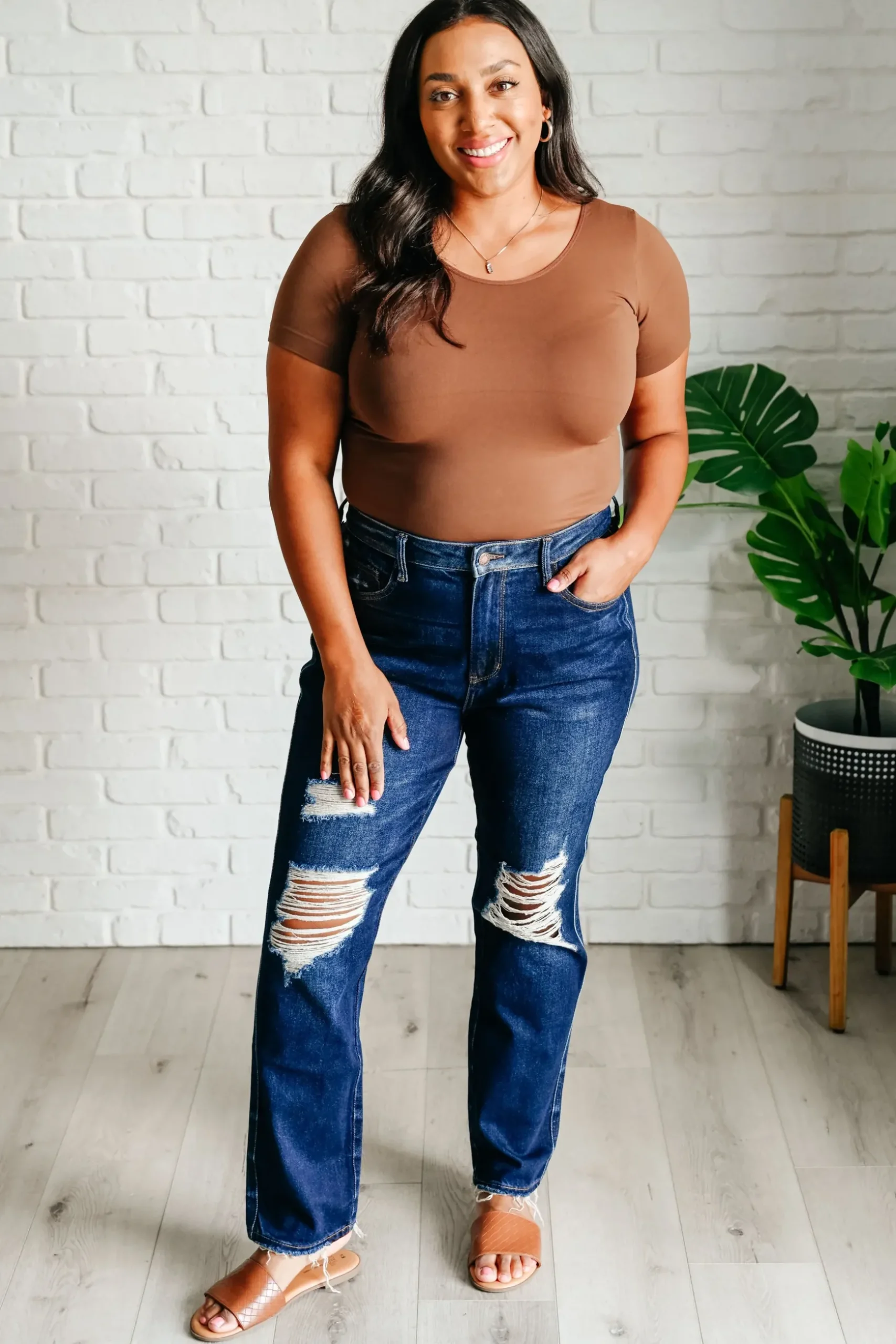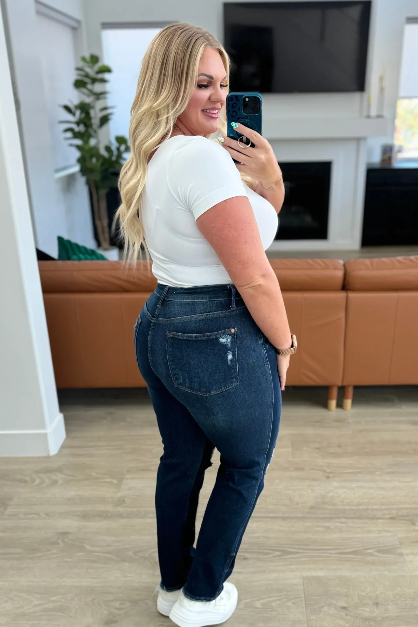 Experience the perfect blend of comfort and style with our Montana High Rise Rigid Magic Distressed Straight Jeans from Judy Blue! The high rise design and rigid magic construction provide a relaxed and flattering fit, while the dark wash and distressed details add a bit of edginess. Complete your look with these effortlessly cool jeans.