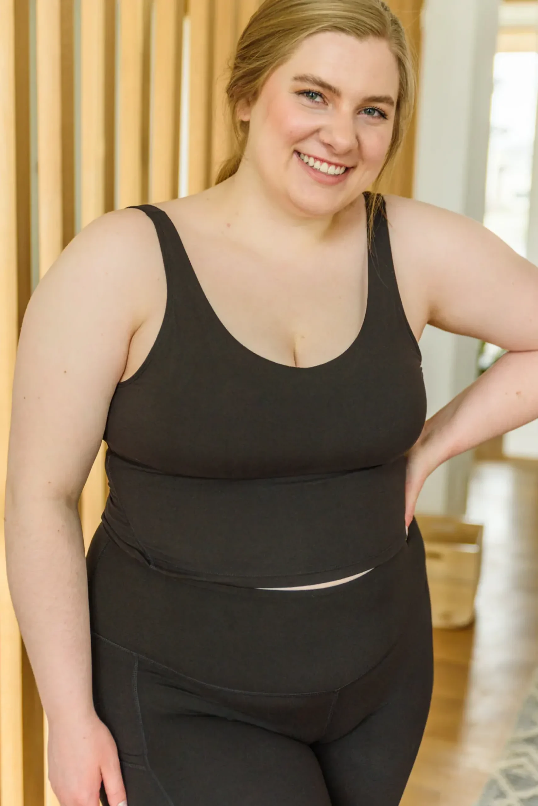 Whatever you’re doing, do it comfortably in the Move With Me Black Tank! This cute tank features a buttery soft fabric, a slight v-neckline, scooped back, and a cropped length that hits right at your waistline. Pair with leggings and sneakers for a casual and comfortable look!